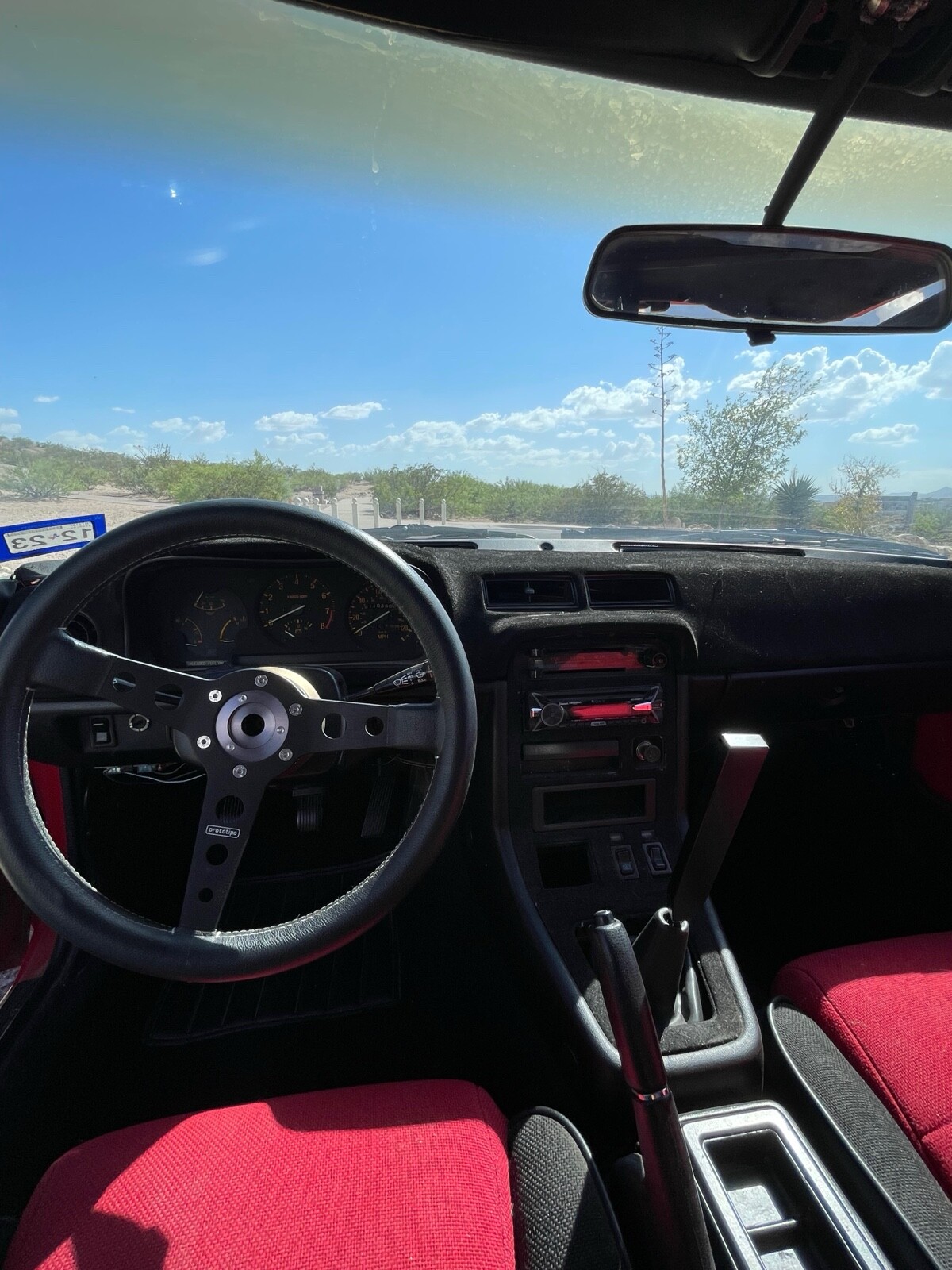 ? Flocked dash (has a crack), flocked center and shifter bezel