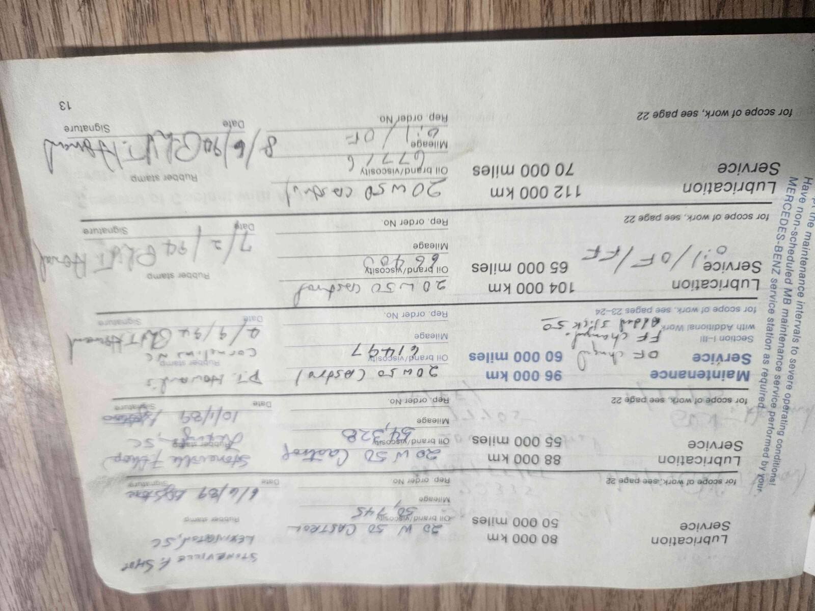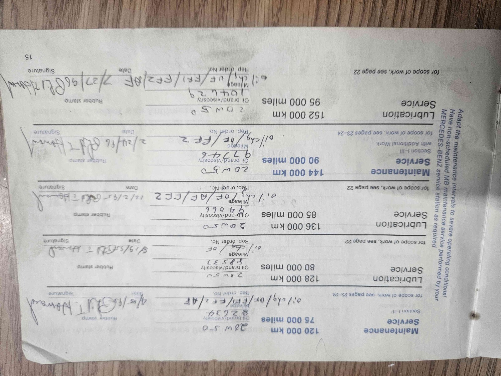 Pictures of the maintenance booklet entries and the data card of the vehicleVehicle Details