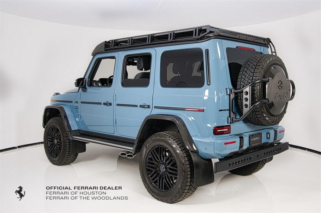 Ferrari of Houston is proud to present this stunning, one-owner 2022 Mercedes-Benz G63 AMG 4x4 Squared with just 2,065 miles. This G63 AMG was ordered in rare Manufaktur China Blue over Platinum White/Black Leather. This G63 AMG is still covered under manufacturer's warranty until October of 2027 or 50,000 miles, whichever comes first.