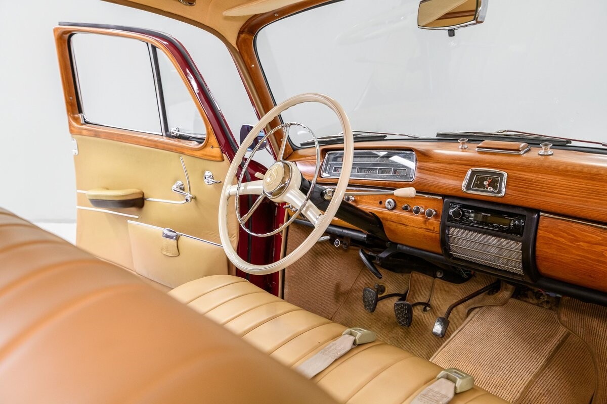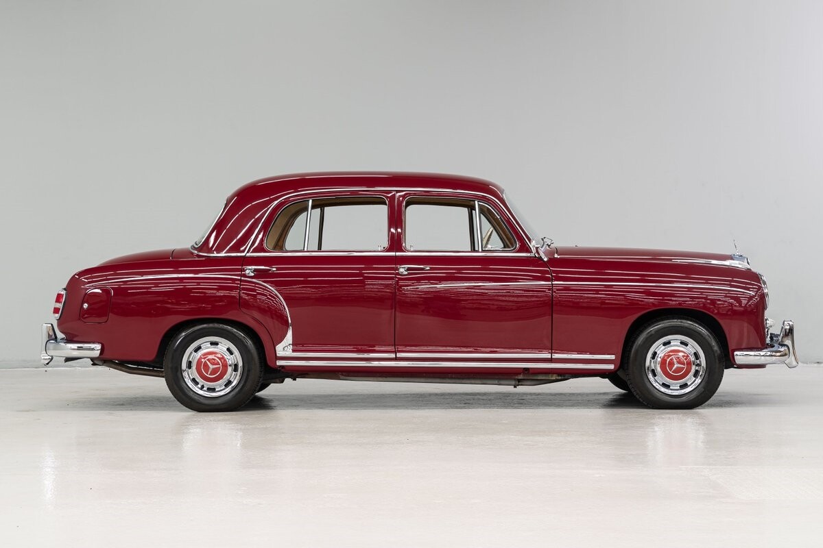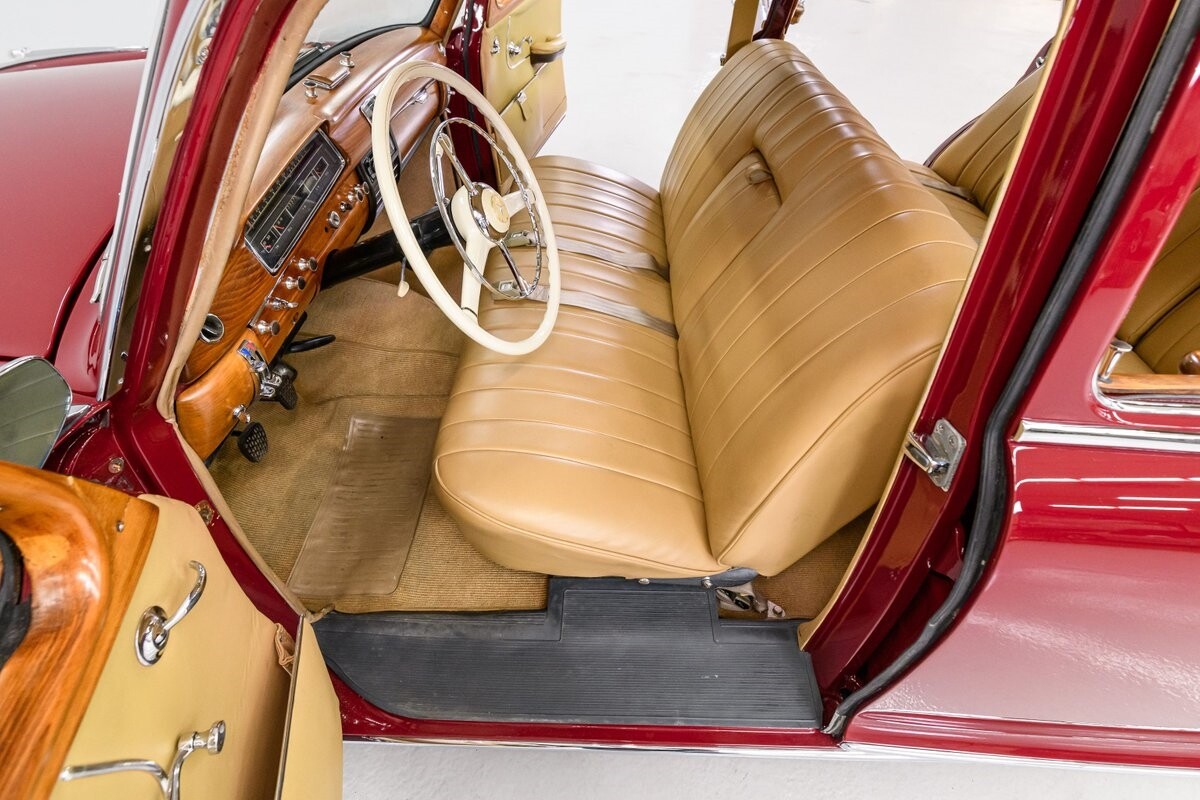 The 1959 Mercedes Benz 220-S was a comfortable, elegant touring sedan for the discerning motorist. The quality of the materials and workmanship of the 220-S was undeniable. This beautiful 1959 Mercedes 220-S has been with its current owner for over 50 years and was completely restored in 2021. The classic 4-door sedan was carefully refinished in original Burgundy Red and accents include stunning chrome on the grill, bumpers and dual mirrors. There is also a classic Mercedes hood-ornament and dual fog lights. The interior of this 220-S is stunning. It was completely restored back-to-original in 2021. The high-grade vinyl upholstery is nicer that leather. Steering wheel, carpeting, door panels and headliner are all outstanding. The beautiful refinished all-wood dash holds a full set of factory gauges. Heat controls are 'dual-zone', and there is a lighter for your cigar. Under the hood, the Mercedes is powered by a 2.2L SOHC in-line 6-cylinder that outputs 112hp and is said to have been completely rebuilt in 2021. It is fitted with dual downdraught 2-barrel carburetors w/progressive linkage. The transmission is a Daimler-Benz 4-speed fully-synchronized manual gearbox with column shift that is backed by a factory differential. The chassis is equipped with 4-wheel coil springs, front sway bar, manual steering, drum brakes w/Mercedes 'ATE-Booster' system and 12-volt electrics. Finally, you can't overstate the visual impact of the classic 14" steel wheels with center caps and trim rings that mount BFGoodrich radial tires. Take a moment and again look at the photos. This 220-S is '50s Mercedes to perfection and is ready for a new owner who will appreciate the beautiful style and outstanding condition of this classic touring sedan classic. ALL VEHICLES SOLD "AS IS".