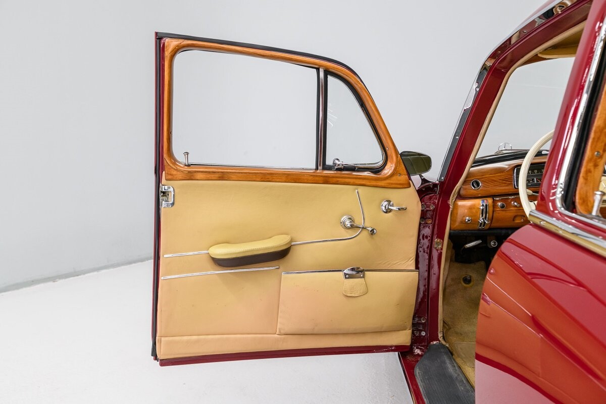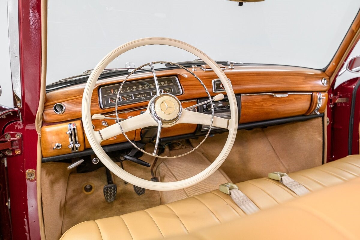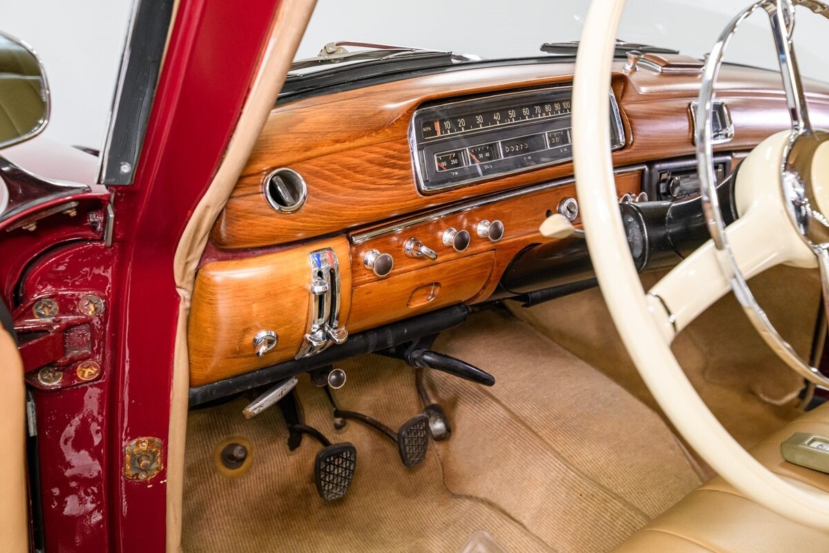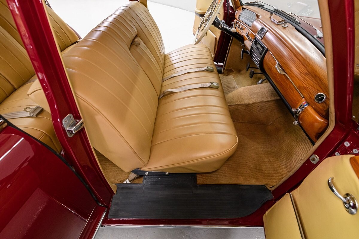 The 1959 Mercedes Benz 220-S was a comfortable, elegant touring sedan for the discerning motorist. The quality of the materials and workmanship of the 220-S was undeniable. This beautiful 1959 Mercedes 220-S has been with its current owner for over 50 years and was completely restored in 2021. The classic 4-door sedan was carefully refinished in original Burgundy Red and accents include stunning chrome on the grill, bumpers and dual mirrors. There is also a classic Mercedes hood-ornament and dual fog lights. The interior of this 220-S is stunning. It was completely restored back-to-original in 2021. The high-grade vinyl upholstery is nicer that leather. Steering wheel, carpeting, door panels and headliner are all outstanding. The beautiful refinished all-wood dash holds a full set of factory gauges. Heat controls are 'dual-zone', and there is a lighter for your cigar. Under the hood, the Mercedes is powered by a 2.2L SOHC in-line 6-cylinder that outputs 112hp and is said to have been completely rebuilt in 2021. It is fitted with dual downdraught 2-barrel carburetors w/progressive linkage. The transmission is a Daimler-Benz 4-speed fully-synchronized manual gearbox with column shift that is backed by a factory differential. The chassis is equipped with 4-wheel coil springs, front sway bar, manual steering, drum brakes w/Mercedes 'ATE-Booster' system and 12-volt electrics. Finally, you can't overstate the visual impact of the classic 14" steel wheels with center caps and trim rings that mount BFGoodrich radial tires. Take a moment and again look at the photos. This 220-S is '50s Mercedes to perfection and is ready for a new owner who will appreciate the beautiful style and outstanding condition of this classic touring sedan classic. ALL VEHICLES SOLD "AS IS".