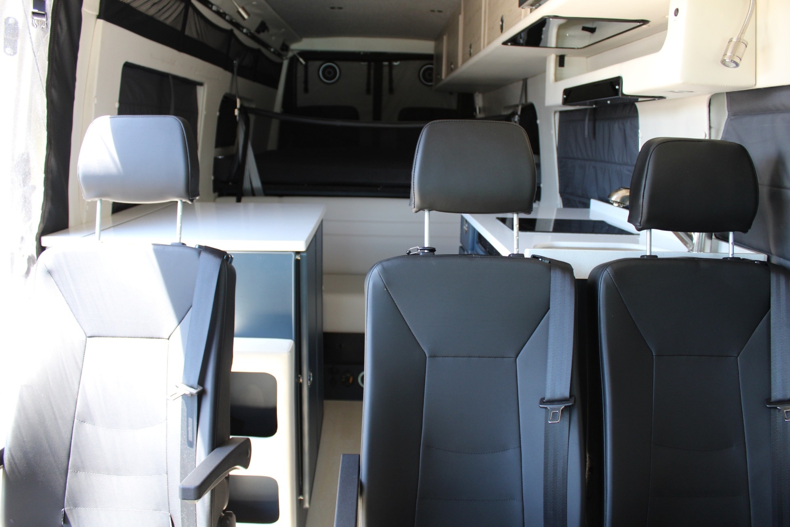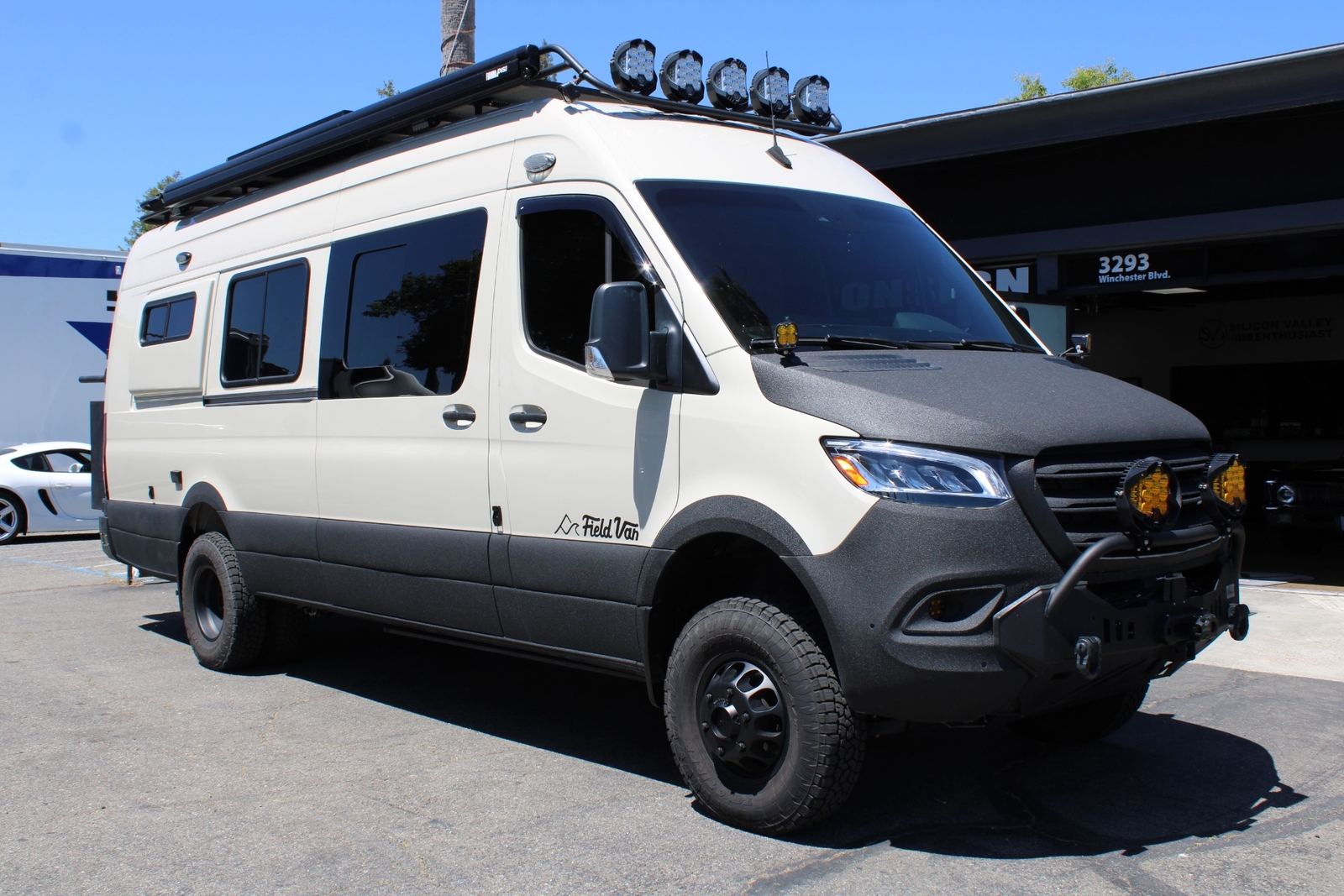 This custom 2021 Mercedes Sprinter - Field Van 170 EXT is a true standout, featuring a total of 9 seat belts for ample seating capacity. The interior has been upgraded with premium amenities, including state of the art appliances, AC, power system, fridge, and more. Additionally, the vehicle comes equipped with a half bath that can easily be converted into a shower, adding convenience to your travels.