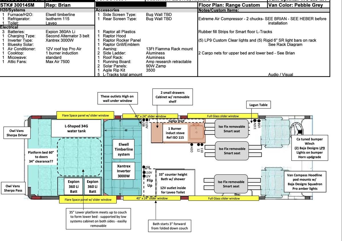 Noteworthy modifications have been made to enhance the performance and aesthetics of this Field Van. Owl Vans has added over $20,000 worth of upgrades, such as Method 901 Wheels, Toyo Open Country AT tires, a 40-gallon gas tank, and Owl Expedition rear boxes. With a Renntech Tune, Pedal Box, rear camera upgrade, and full window tint, these additions truly elevate the driving experience.