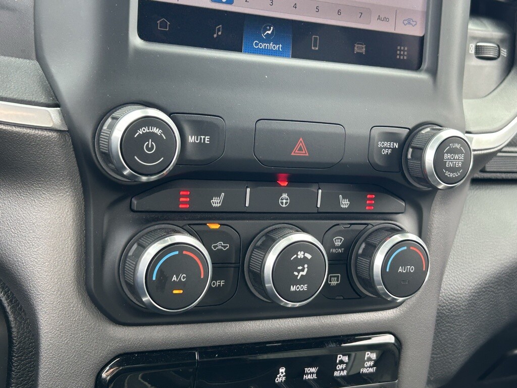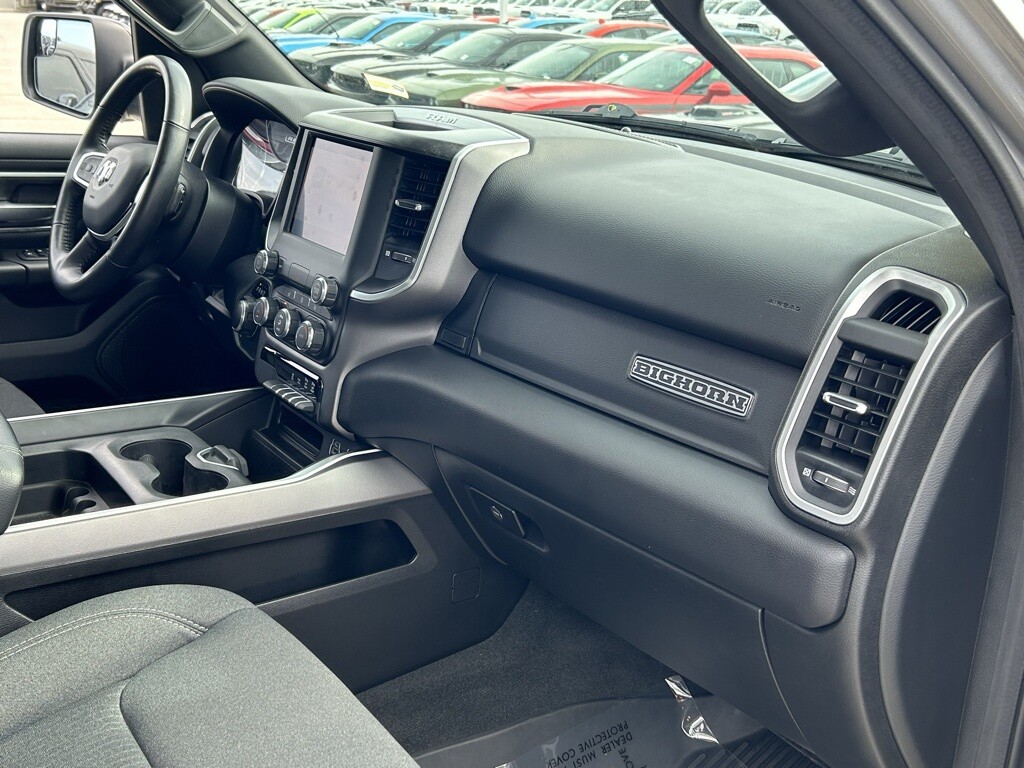 115V Auxiliary Power Outlet, 115V Auxiliary Rear Power Outlet, 4G LTE Wi-Fi Hot Spot, 8.4 Touchscreen Display, Accent Color Premium Power Mirrors, Air Conditioning ATC w/Dual Zone Control, Anti-Spin Differential Rear Axle, Apple CarPlay, Auto-Dimming Exterior Driver Mirror, Auto-Dimming Rear-View Mirror, Big Horn Badge, Big Horn Level 2 Equipment Group, Black Exterior Mirrors, Black Exterior Truck Badging, Black Headlamp Bezels, Black Interior Accents, Black Painted Exterior Mirrors Caps, Black Premium Power Mirrors, Bluetooth Handsfree Phone & Audio, Body Color Front Bumper, Body Color Rear Bumper w/Step Pads, Class IV Receiver Hitch, Cluster 7.0 TFT Color Display, Connectivity - US/Canada, Convex Wide-Angle Mirror Insert, Deluxe Cloth Bucket Seats, Dual Exhaust w/Black Tips, Exterior Mirrors Courtesy Lamps, Exterior Mirrors w/Heating Element, Exterior Mirrors w/Supplemental Signals, For Details, Visit , For More Info, Call855-206-0582, Global Telematics Box Module (TBM), Glove Box Lamp, Google Android Auto, GPS Antenna Input, Heated Front Seats, Heated Steering Wheel, Integrated Center Stack Radio, Media Hub w/2 Charge Only USBs, Night Edition, ParkSense Front/Rear Park Assist w/Stop, Power 2-Way Driver Lumbar Adjust, Power 8-Way Driver Seat, Power Adjustable Pedals, Power-Folding Mirrors, Quick Order Package 23Z Big Horn, Radio: Uconnect 3 w/5 Display, Radio: Uconnect 5 W w/8.4 Display, Rear Dome w/On/Off Switch Lamp, Rear Power Sliding Window, Rear Window Defroster, Remote Start System, Security Alarm, SiriusXM Radio Service, SiriusXM Satellite Radio, Sun Visors w/Illuminated Vanity Mirrors, Universal Garage Door Opener, USB Host Flip, Wheels: 20 x 9.0 Premium Paint/Polished.