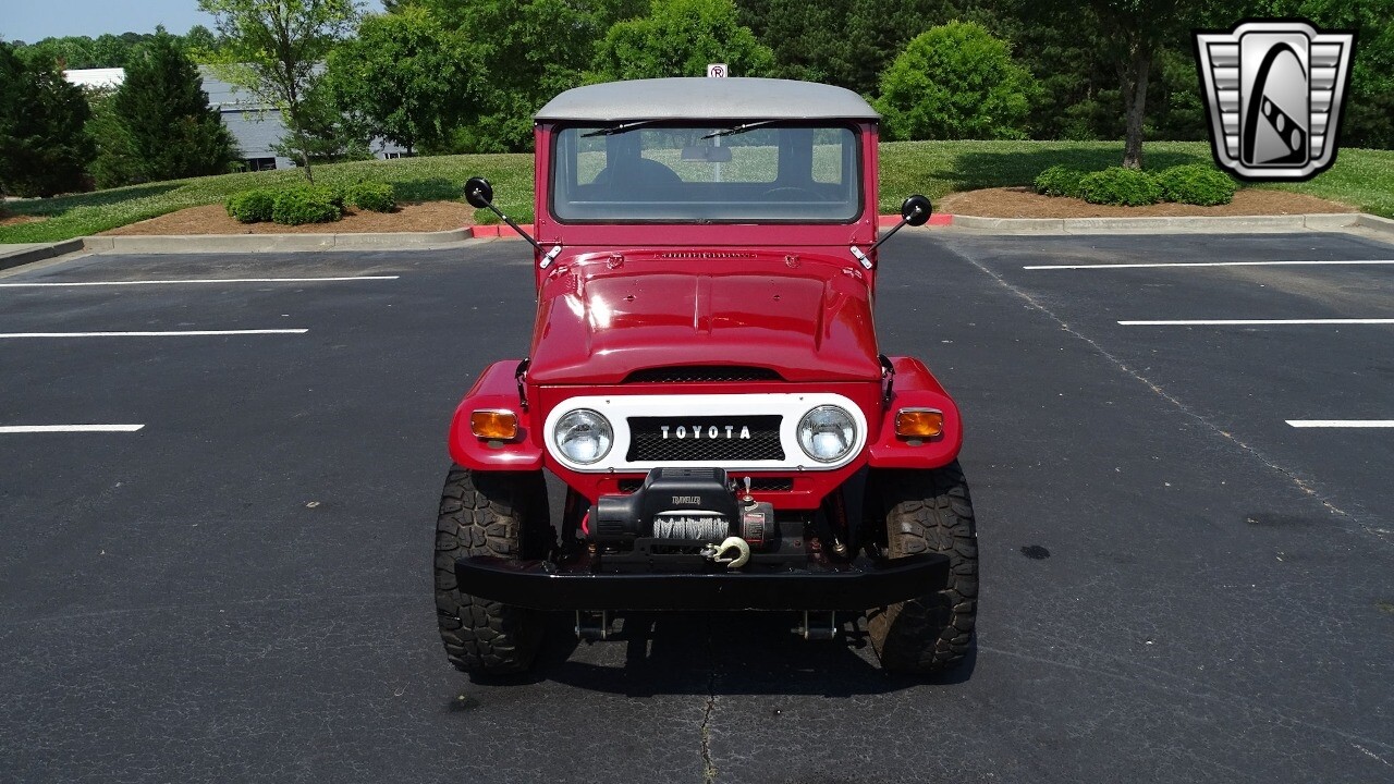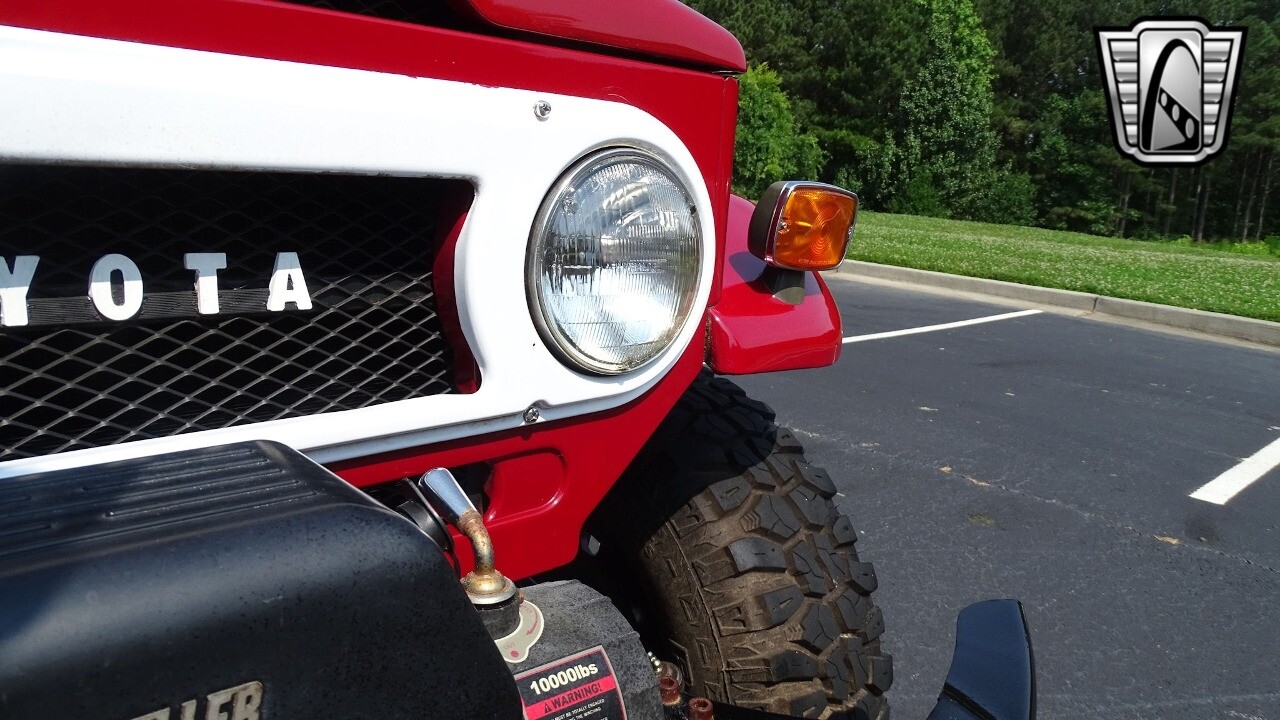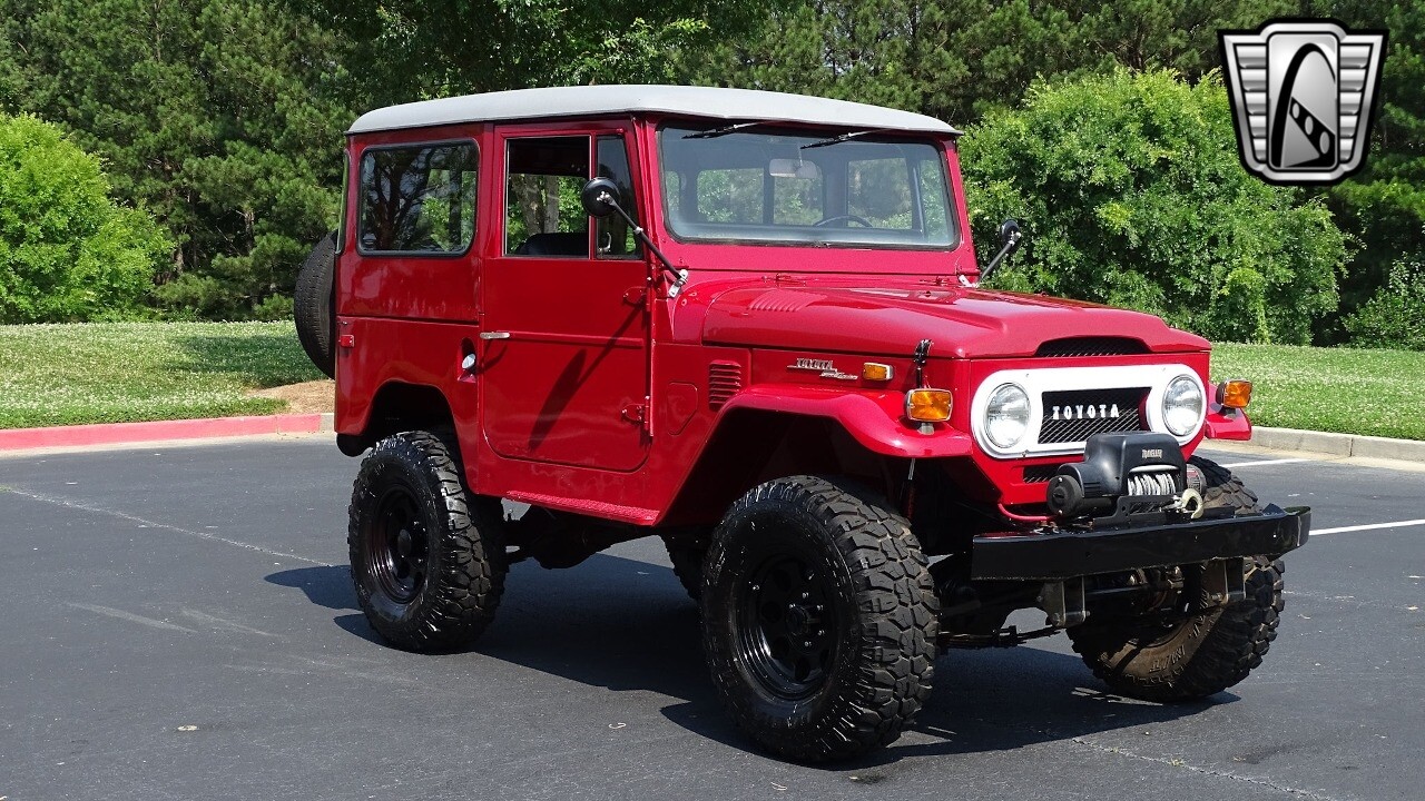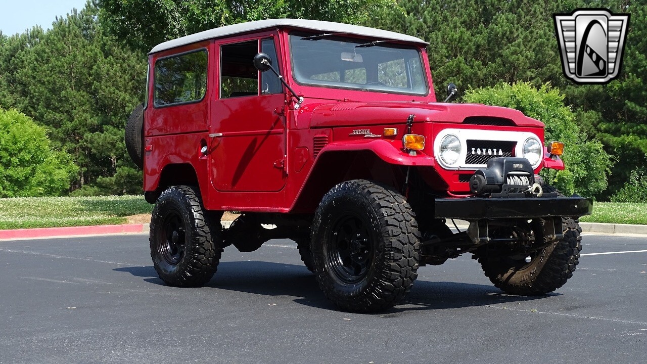 Gateway Classic Cars of Atlanta is proud to present this 1972 Toyota FJ40. Land Cruisers have remained one of Toyotas longest running production vehicles for good reasons. A classic 4-wheel drive vehicle that is fun both on and off the road. And this FJ40 in particular is no doubt a beauty. This FJ40 comes coated in red with a white fiberglass top that is sure to show well to FJ enthusiasts anywhere with a black interior making it a good match. The off-road appearance of this FJ is capped off with a set of capable looking all terrain tires.This off-road beast is powered by an inline 6. Power is sent to the wheels through a 3-speed manual transmission which offers the full feel of what it means to drive one bad to the bone off road machine while capturing the nostalgia of the era. [ omitted ]. [ omitted ].