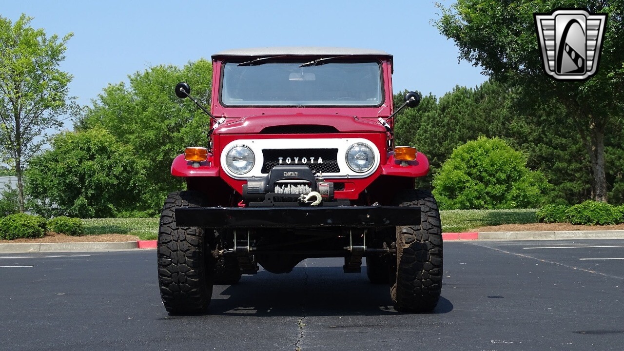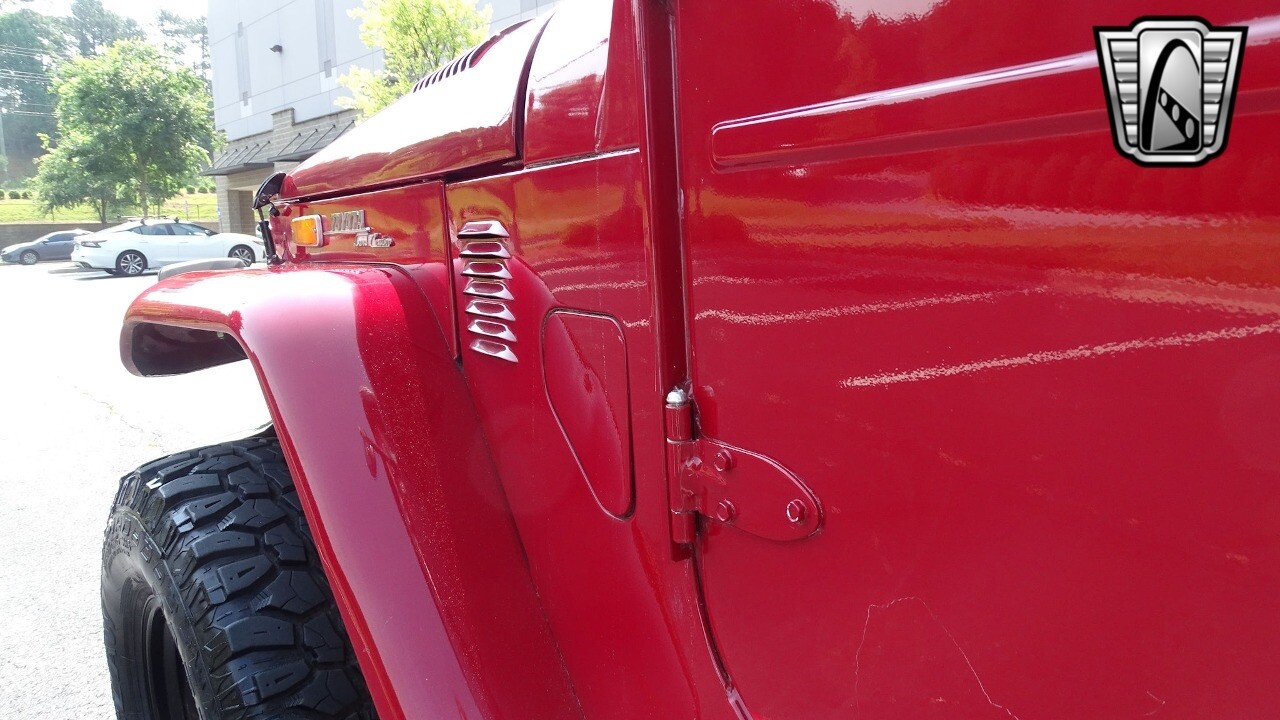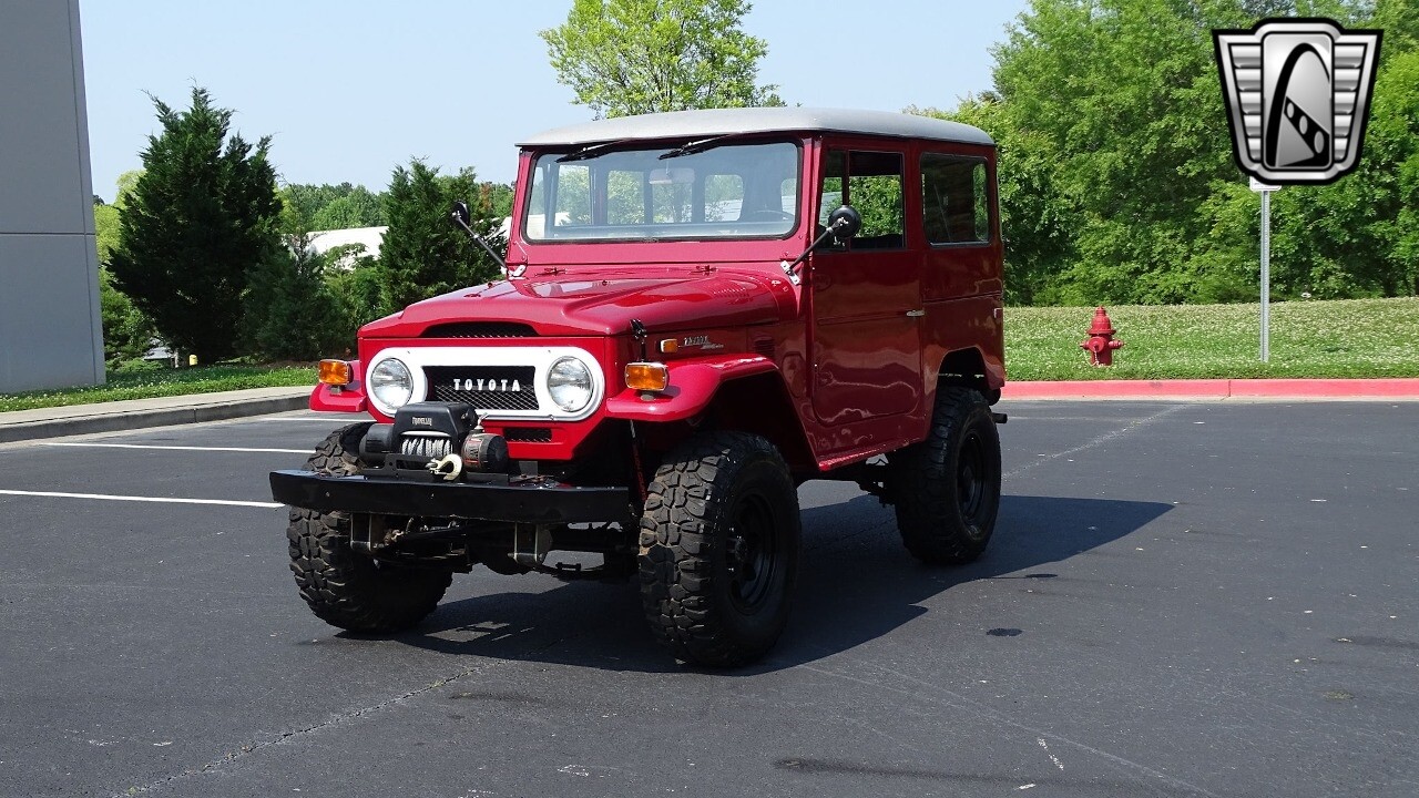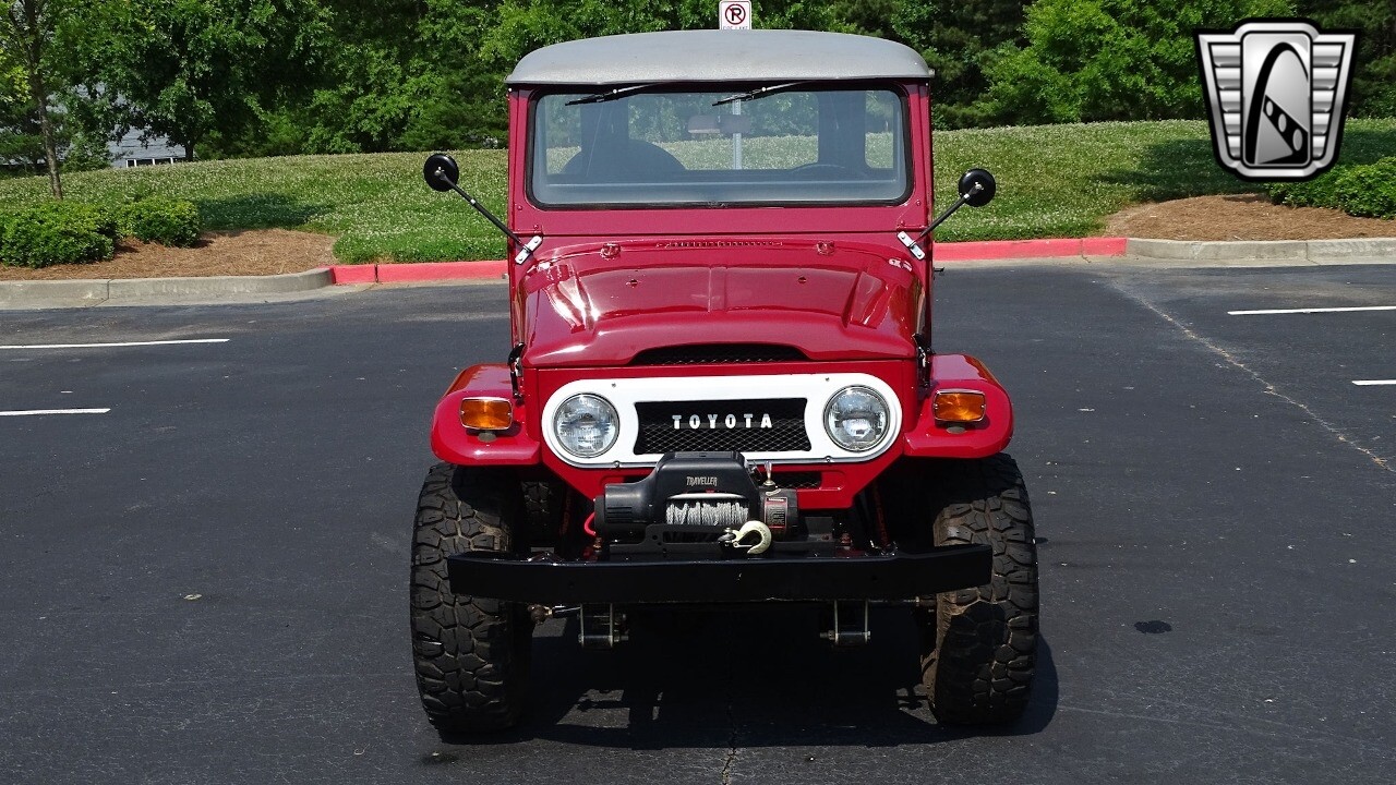 Gateway Classic Cars of Atlanta is proud to present this 1972 Toyota FJ40. Land Cruisers have remained one of Toyotas longest running production vehicles for good reasons. A classic 4-wheel drive vehicle that is fun both on and off the road. And this FJ40 in particular is no doubt a beauty. This FJ40 comes coated in red with a white fiberglass top that is sure to show well to FJ enthusiasts anywhere with a black interior making it a good match. The off-road appearance of this FJ is capped off with a set of capable looking all terrain tires.This off-road beast is powered by an inline 6. Power is sent to the wheels through a 3-speed manual transmission which offers the full feel of what it means to drive one bad to the bone off road machine while capturing the nostalgia of the era. [ omitted ]. [ omitted ].