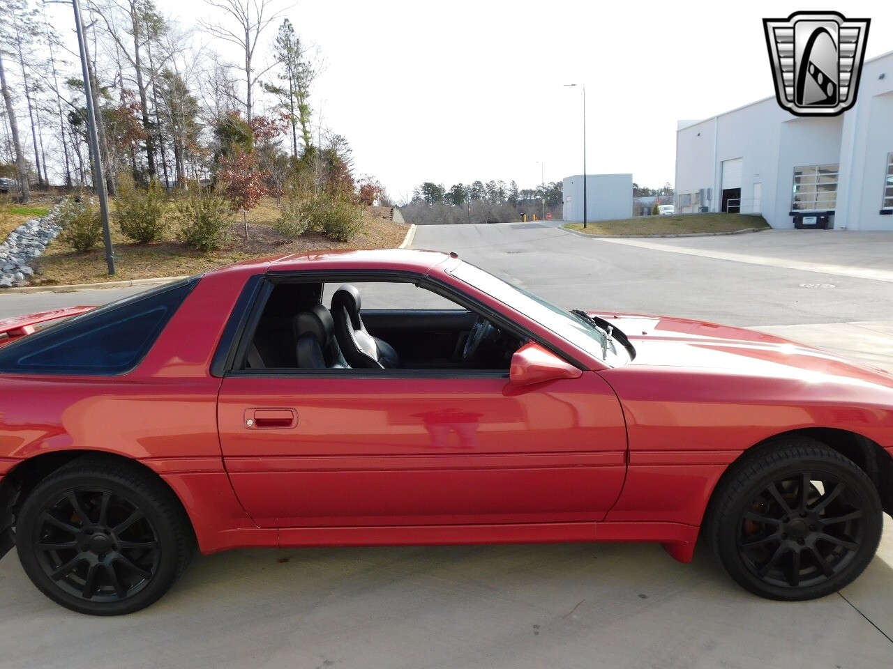 Introducing the classic 1988 Toyota Supra Turbo Targa, a stunning blend of style, performance, and comfort. This beauty is dressed in a vibrant red exterior that totally complements its sleek black/grey leather interior, creating a striking visual contrast that is sure to turn heads wherever you go.
