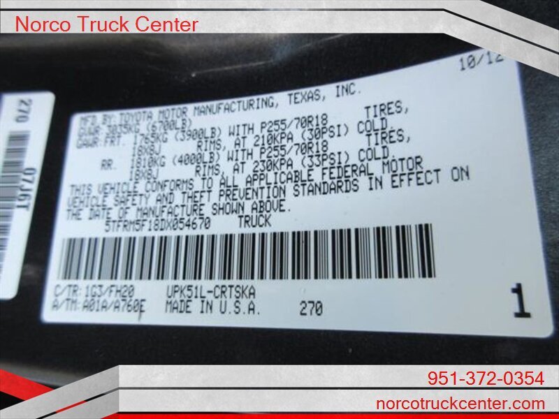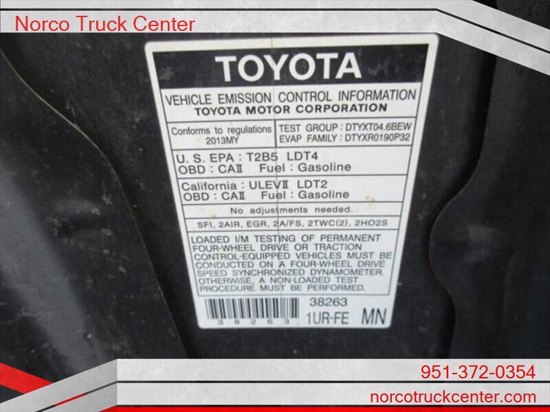 YOU ARE LOOKING AT A 2013 TOYOTA TUNDRA WITH A QUAD CAB BODY. THIS VEHICLE HAS AN AT TRANSMISSION, V8, 4.6L ENGINE WITH 99708 MILES. THE DRIVETRAIN IS: RWD. PLEASE CALL NORCO TRUCK CENTER INC FOR MORE INFORMATION AT 951-643-0477 OR COME SEE US AT ~ 2075 HAMNER AVE. NORCO, CA. 92860 ~