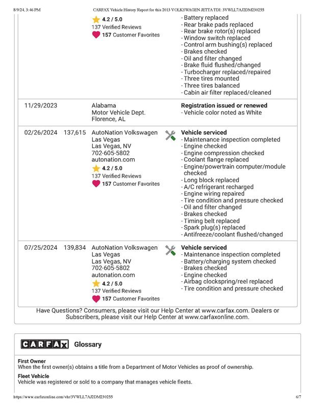 - Current Major Service & Engine Replacement by VW Dealer 2,382 Miles Ago