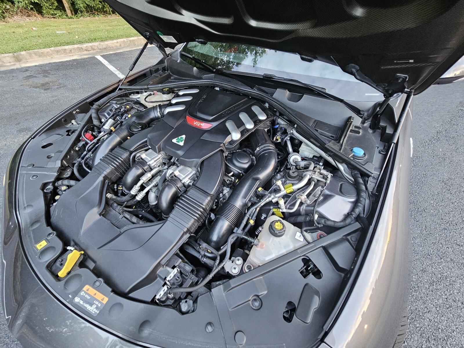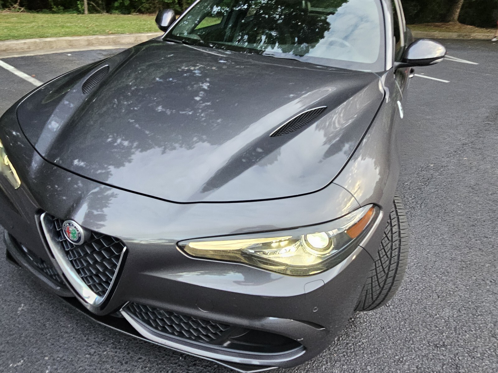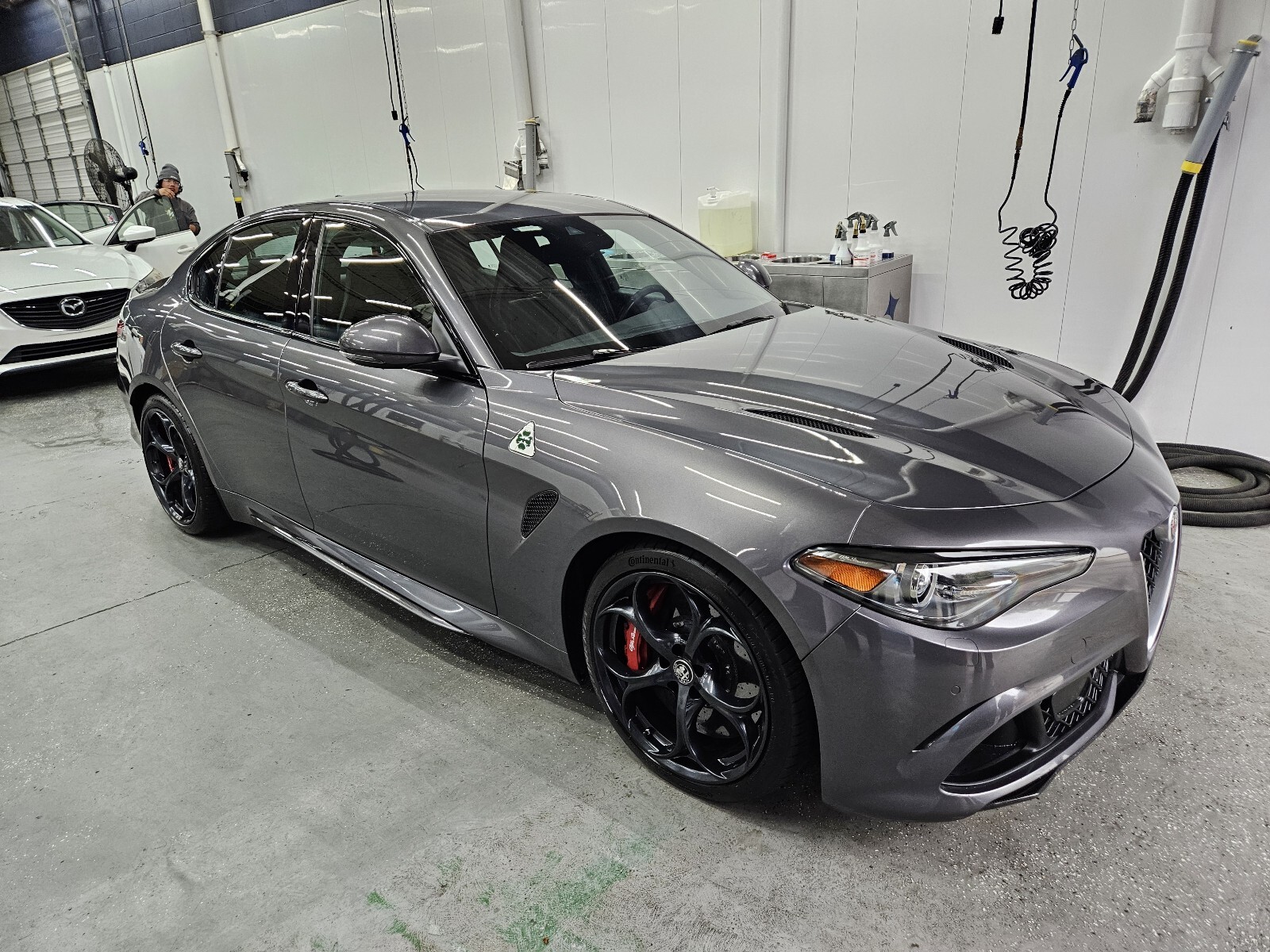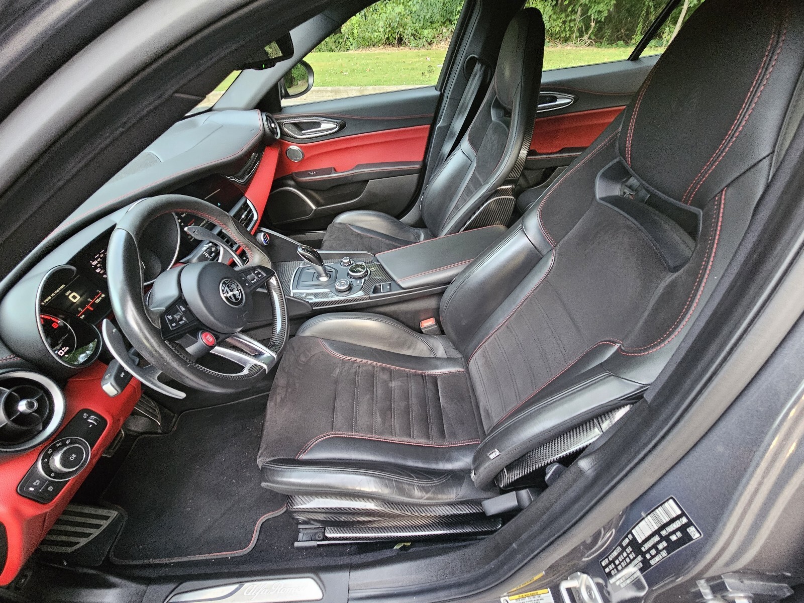 This 2017 Alfa Romeo Giulia Quadrifoglio is equipped with selected options including a Brembo carbon-ceramic brake system, Sparco frontracing seats, a carbon-fiber-trimmed steering wheel, a Harman Kardon premium sound system, and the Driver Assist Dynamic Package. It is finished in Vesuvio Gray Metallic over black leather and Alcantara and is powered by a twin-turbocharged 2.9-liter V6 paired with an eight-speed automatic transmission. Other equipment includes a dual-mode exhaust system, 19? alloy wheels, active suspension, an active front splitter, and a carbon-fiber roof, hood, and trim elements along with a rearview camera, navigation, and aluminum paddle shifters. Vehicle now has a little over 50k miles. see window window sticker with options. Carfax reported there was a accident but was a mere scrape when parked and another vehicle while driving gently scraped rear bumper that was professionally fixed at dealership with the rear bumper cover being replaced, Vehicle has a clean Georgia title in the original owner’s name. The car is finished in Vesuvio Gray Metallic and features a carbon-fiber active aero front splitter, carbon-fiber hood, roof, rear spoiler, and rocker panel accents. Additional exterior details include bi-xenon headlights with washers, rain-sensing wipers, parking sensors, Quadrifoglio badging, a rear view camera, LED brake lights, quadruple exhaust outlets, and a rear diffuser.Close-up photos of the paint condition are provided in the gallery below. Dark-finished 19? five-hole wheels are mounted with 245/35 front and 285/30 rear Continental ExtremeContact DWS 06 Plus tires. The car rides on an active suspension with three selectable modes, and stopping power is provided by Brembo carbon-ceramic brakes with red calipers. Manually adjustable Sparco front racing seats with carbon-fiber backs are trimmed in black leather and Alcantara and feature contrasting red stitching as well as embossed Alfa Romeo crests on the headrests. Carbon-fiber and red leather trim accent the cabin, and additional appointments include dual-zone automatic climate control, remote start,aluminum paddle shifters and pedals, a Harman Kardon premium sound system, navigation, and an 8.8? infotainment display. The steering wheel is trimmed in leather, Alcantara, and carbon fiber, and it fronts a 200-mph speedometer, a tachometer, and supplementary gauges as well as a central information display. The Driver Assist Dynamic Package added adaptive cruise control, lane departure warning, and automatic high-beam headlamp control.The twin-turbocharged 2.9-liter V6 produced a factory-rated 505 horsepower and 443 lb-ft of torque Power is sent to the rear wheels through a carbon-fiber drive shaft, an eight-speed automatic transmission, and a torque-vectoring differential. An oil change was performed in April 2024.The window sticker lists initial delivery to Jim Ellis Alfa Romeo of Atlanta, Georgia, along with factory equipment, colors, options, sticker price of $85,745
