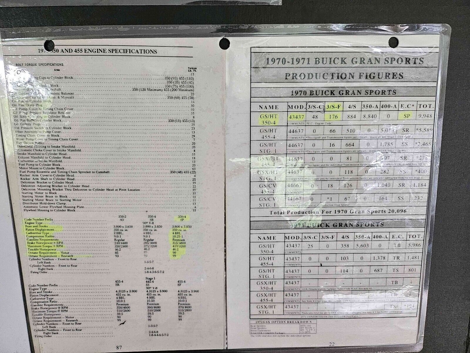 Excellent condition could be used as daily driver. Low mileage and resorted to factory only thing not original is transmission, exhaust system and rims, they are factory machted though. I have Original window sticker all the microfilm from buick, proving it's legality. 1 of 176 ever produced! Car also comes with factory floor mats original 1970 license plate.I have a lot of paper work proving that is is a real GS. For more info about it please contact me. Would prefer serious buyer's only thanks. If you are looking for a Buick this is the one!