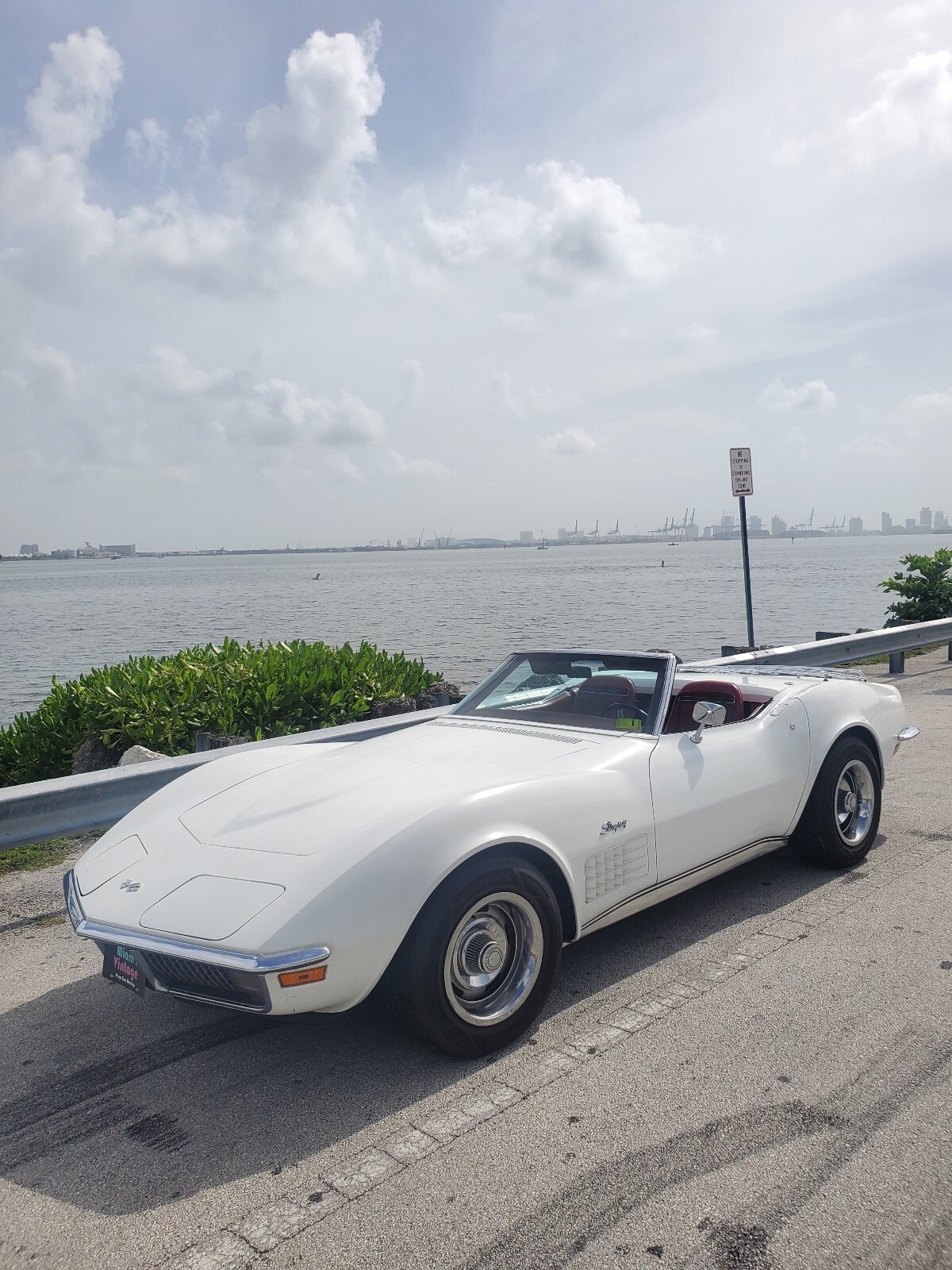 Has received refresh with new carburetor,electric ignition,brakes and tires. Car runs like a new 1970 vette. Original exterior paint is white with typical fading and marks