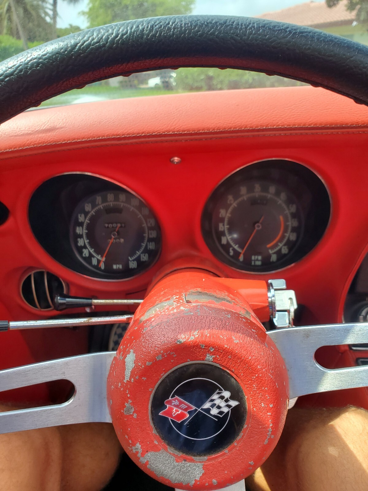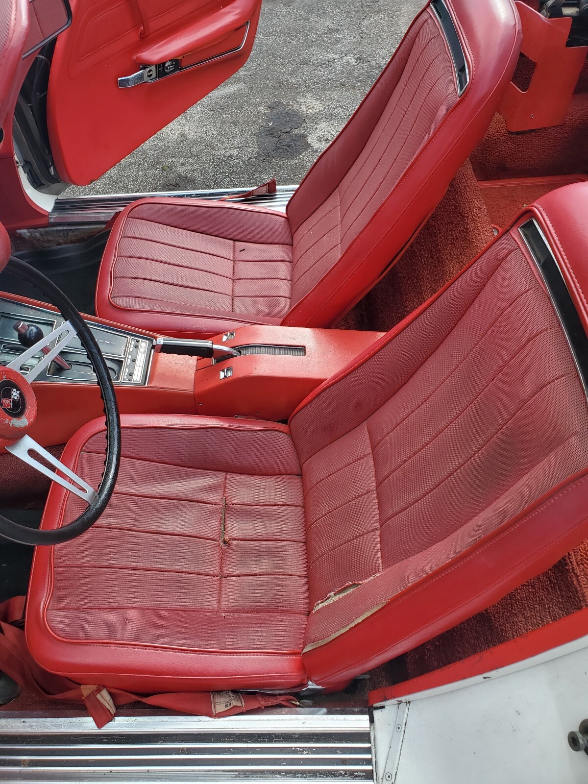This 1970 Corvette Convertible which only 1 of 6,698 Convertibles sold in 1970. This car is extremely rare in that it is a "Survivor" class candidate. It has original drivetrain (#s match)original interior,original paint and original chrome . 350/300hp Car stored in a garage since early 90s. Has received refresh with new carburetor,electric ignition,brakes and tires. Car runs like a new 1970 vette. Original exterior paint is white with typical fading and marks Has original red interior that some minor wear Car is loaded with two tops,ps ,pb automatic windows, telescopic steering wheel,am fm radio and original working AC. Have built sheet for car on original gas tank showing all the above options. They are only original once and that makes this car an investment grade 1970 corvette. Car was purchased from who I believe was the second owner who had the car from the early 1980s $37,500Seller's Notes