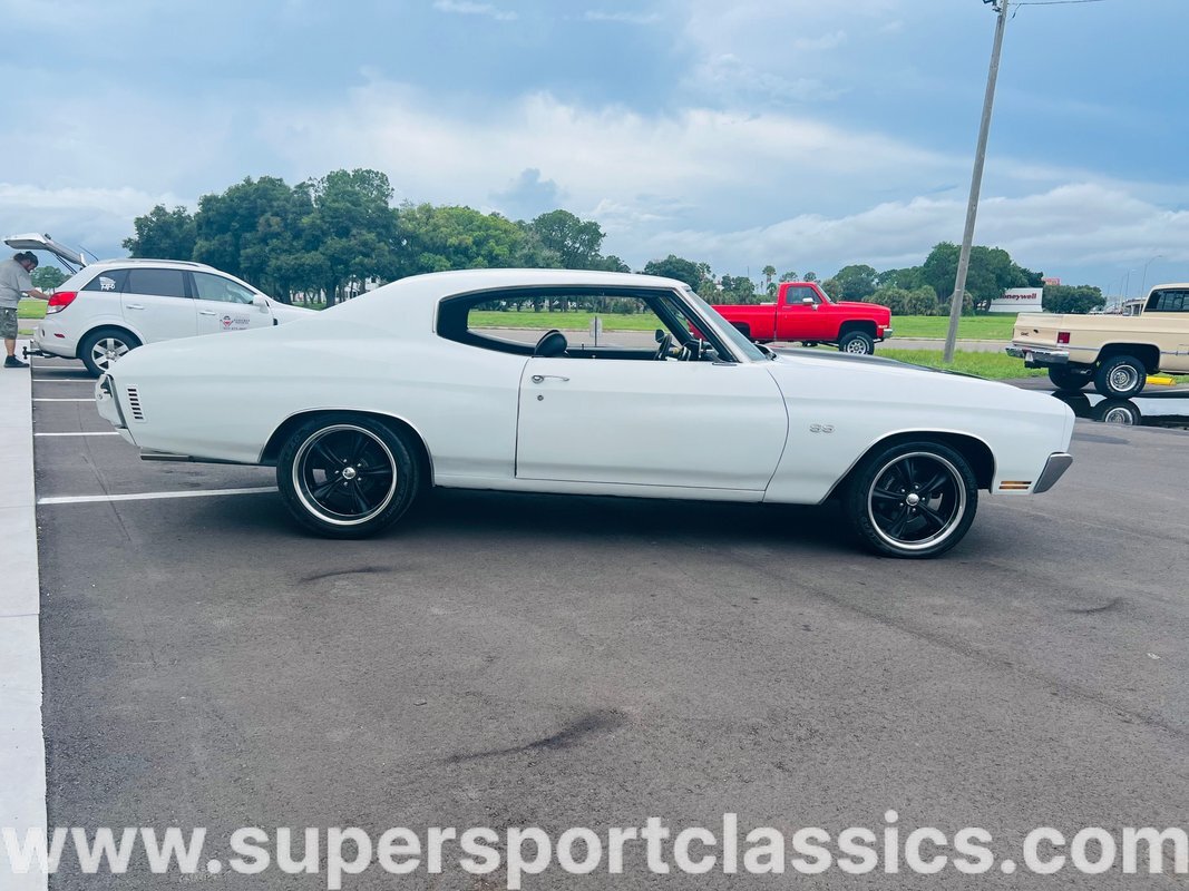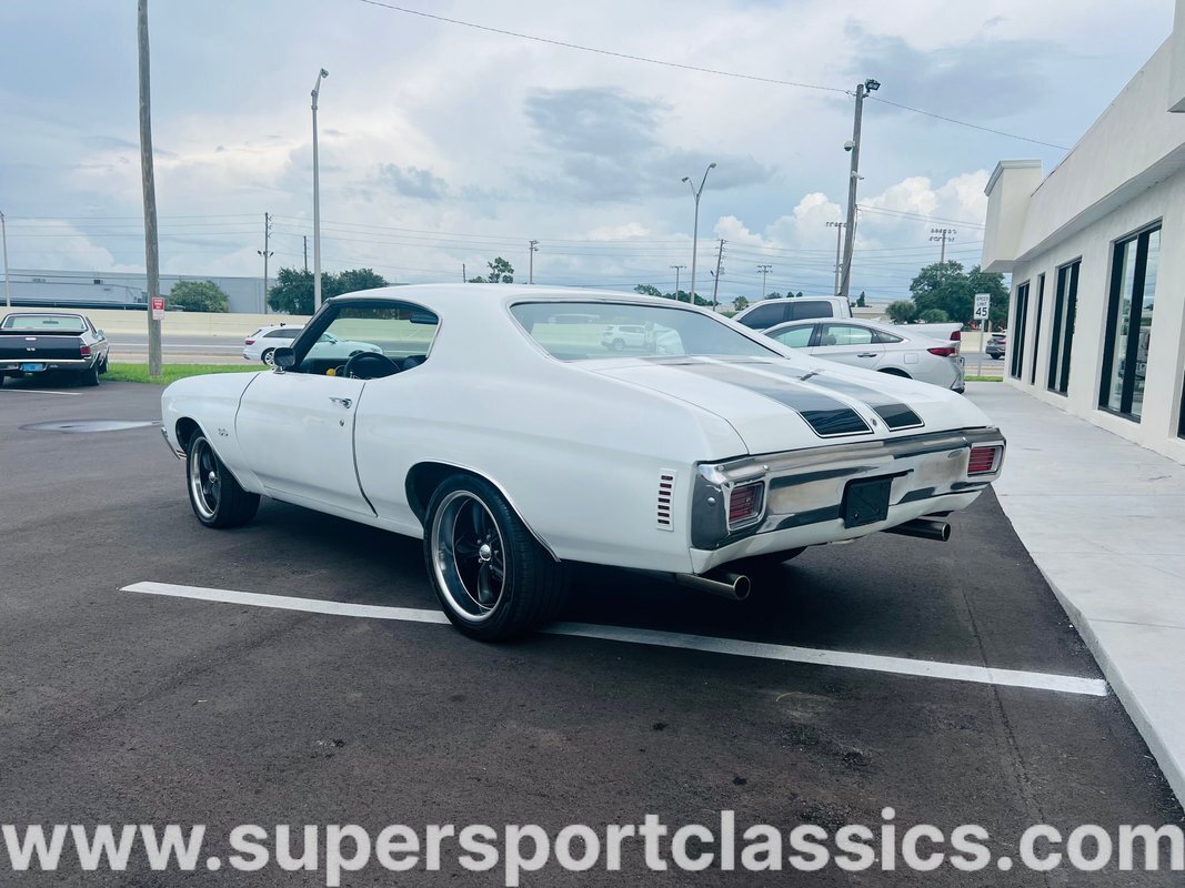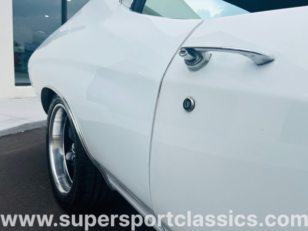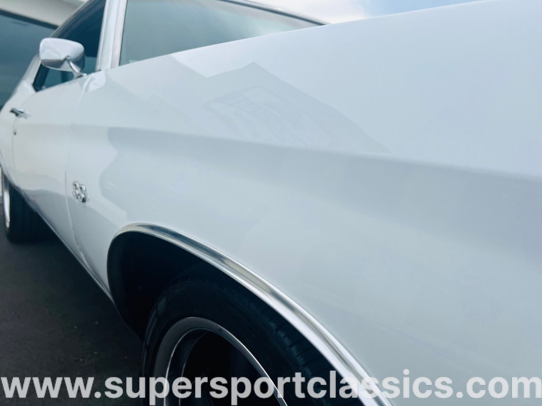 This beautiful Chevelle is finished in Gorgeous White with Tuxedo Black SS stripes! The Beast will Pin you in the seat and keep you there!! This Chevelle is sure to turn heads everywhere and be the envy of the neighborhood!