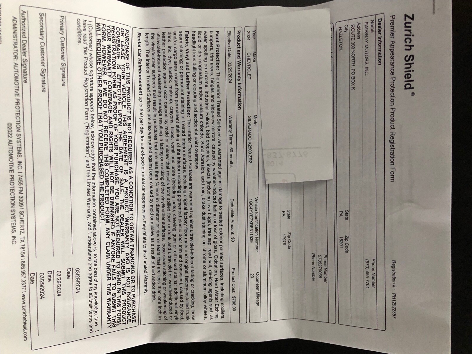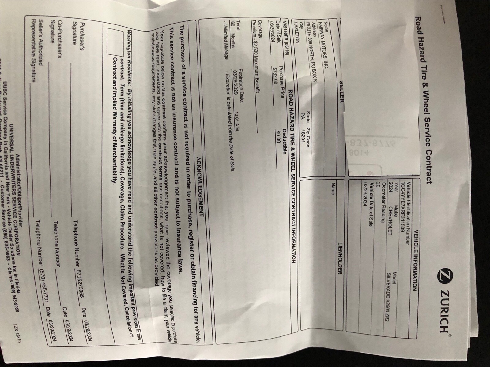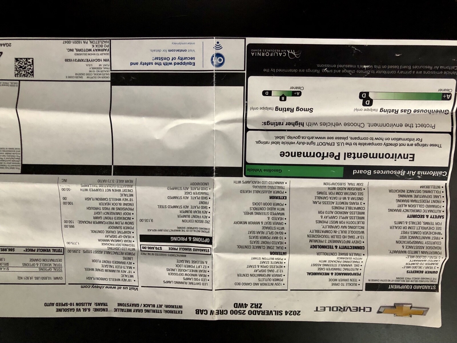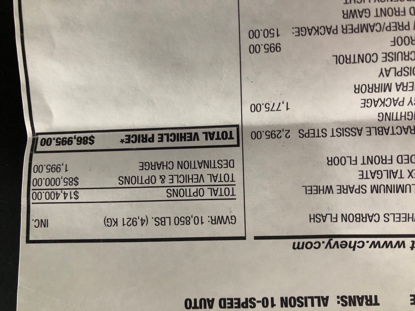 Truck has Zurich shield paint and interior protection + Zurich Road Hazard tire and wheel protection + factory hard tonneau cover. Total price truck and extras $89,870Vehicle Details