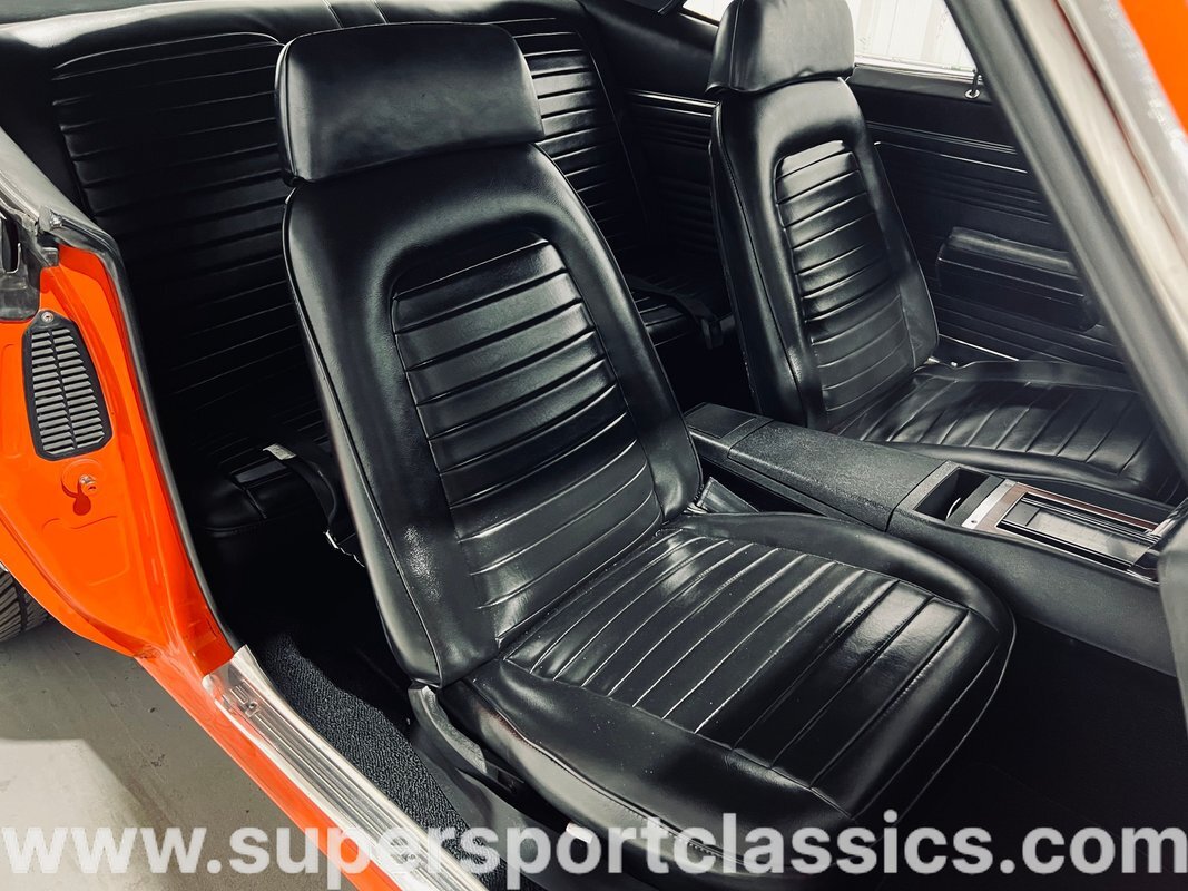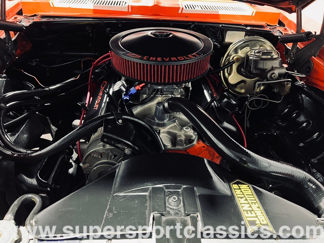 350 Small Block Paired to an Automatic Transmission, Upgraded Valve Covers, Upgraded Intake, Upgraded Carburetor, Headers, 4 Wheel Power Disc Brakes, Black Leather Bucket Seats with Center Console, Chrome Riddler Wheels with Low Profile Tires, and much more!