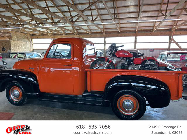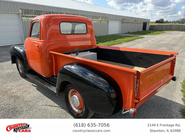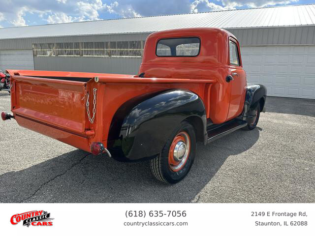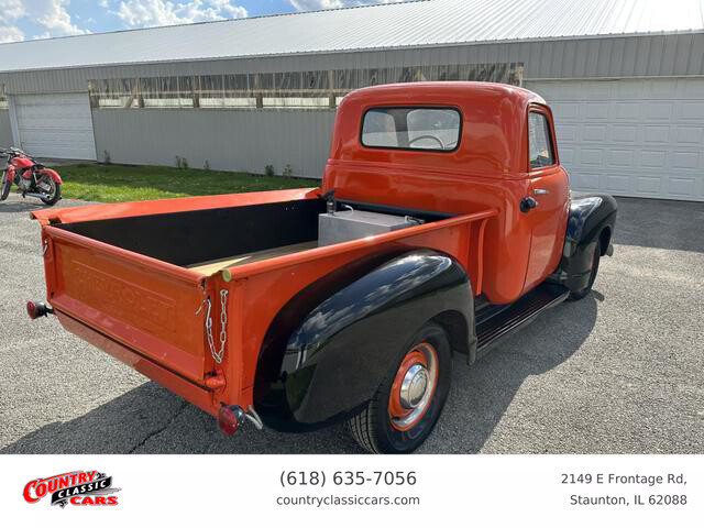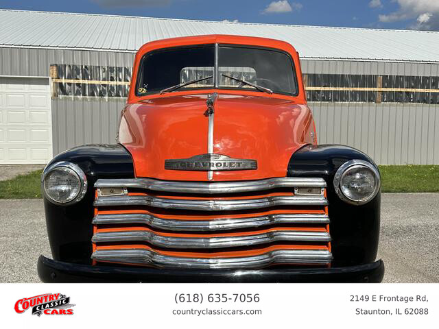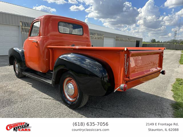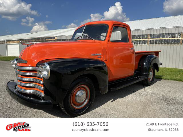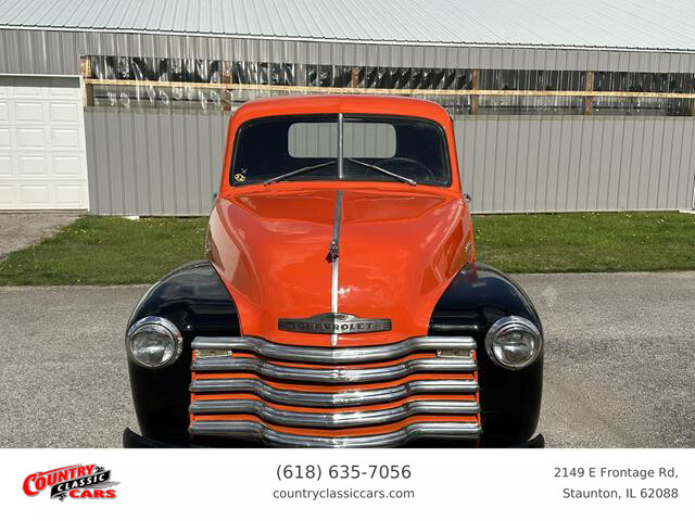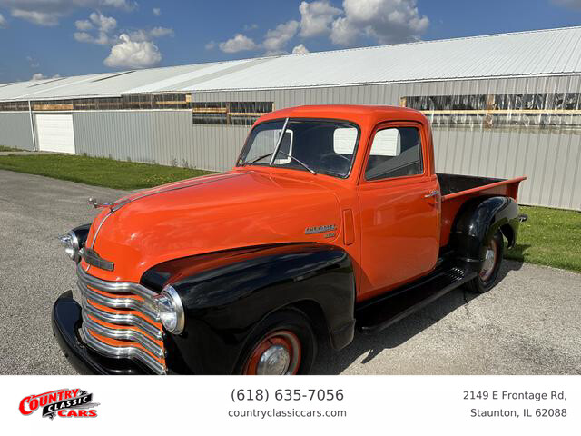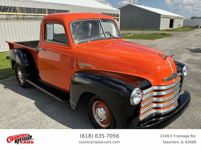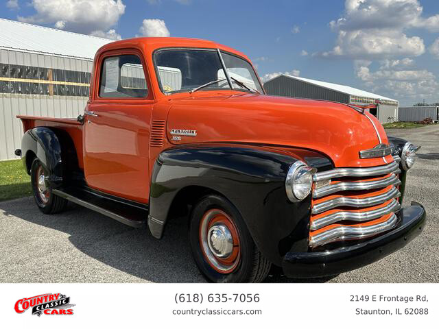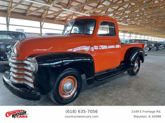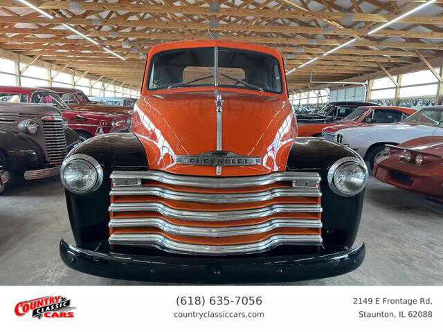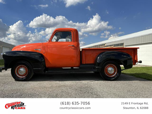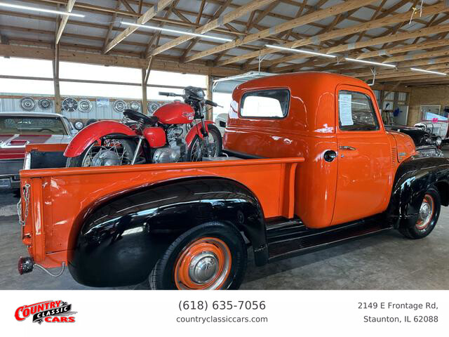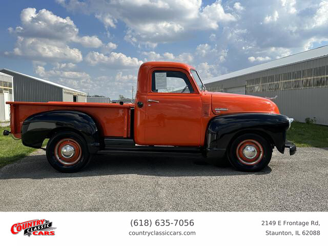 Available now is this beautiful 1953 Chevrolet 3100 truck custom painted in Harley Davidson Hugger Orange and Black covering a new black interior. This Chevy sits on Hugger Orange steel wheels with original hubcaps and trim rings wrapped in brand new tires. This truck features an upgraded 292c.i. inline 6-cylinder engine mated to a 3-speed manual transmission. The 3100 also has new brakes, a 12 volt conversion, and ready to become the perfect cruiser or shop truck.
