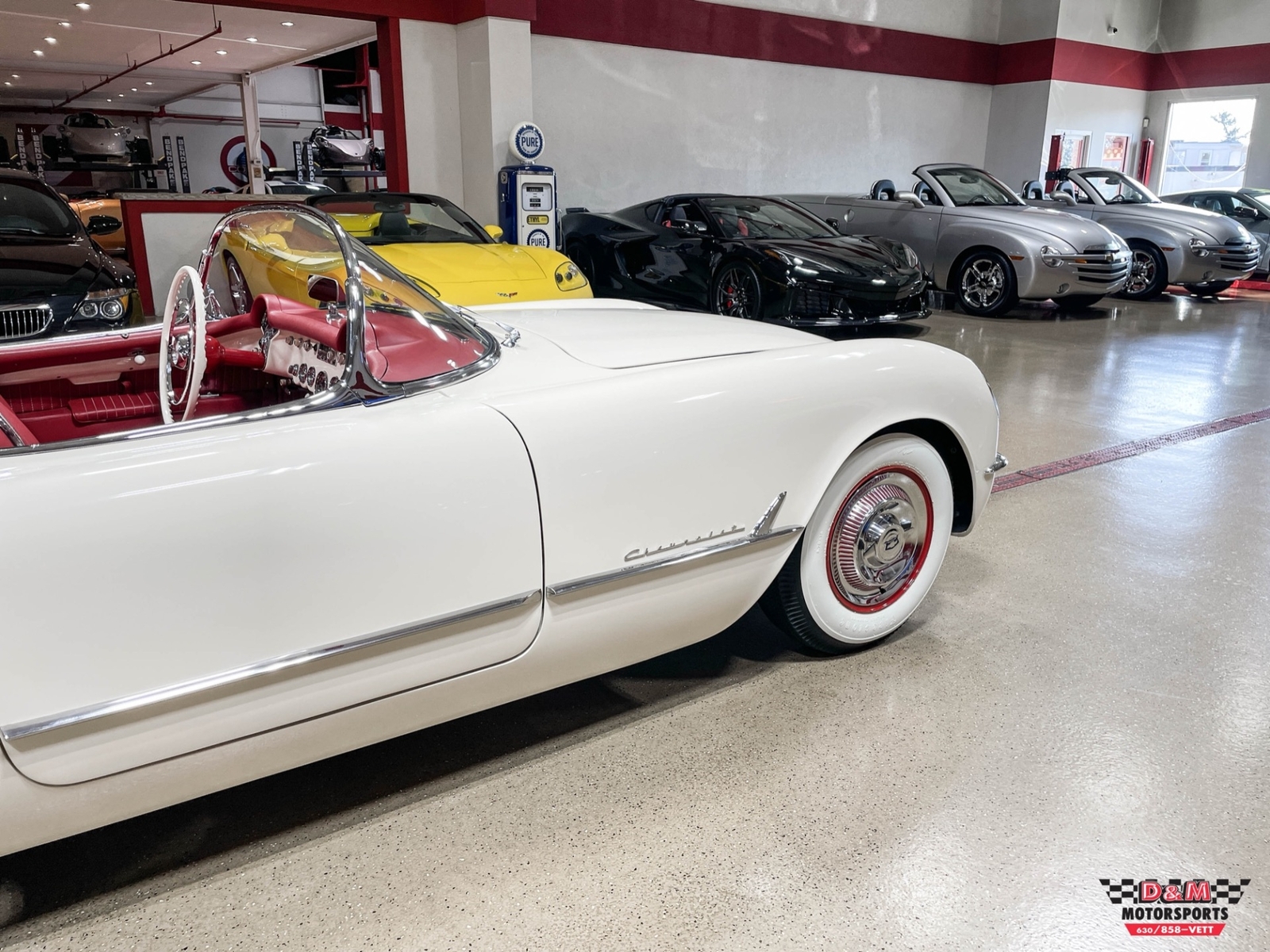 My name is Jim and I have been collecting cars for over 46 years. During that time I have had over 12 Corvettes and during the last 3 years I have been collecting High end classic cars. After working on a friends Corvette I got the bug to get another Corvette. I went to the internet site of D&M Motorsports . Their site has all High Def photos that are taken by a professional photographer and I found a pristine 1993 40th Anniversary Corvette with only 1,300 documented miles. I went up to D&M and Dave handled the sale. We settled on a price and I purchased the car that day. Because of the low miles on the car Dave arranged with Mike to deliver the car in an enclosed trailer to my home. Mike is the President & owner of D&M yet he took the time to deliver the car himself. In 67 years I have never taken the time to write a review on anyone, but D&M is truly special. Kevin & Angie were also fun to talk with and my entire experience was like hanging out with good friends. I went back to pick up my plates and ended up buying a 2001 Vette. The truly unusual part of this deal was Mike took my pristine 1940 Chevy coupe in on trade. D&M is a High end sports car and Corvette dealer yet he took an antique car in on trade just to close the deal. I have been back several times just to wander their fantastic show room because every week they get in four or five different cars. Don't take my word for it check out their great website and if you are in the Chicago area stop in and meet them. D&M stands for "Devoted Management."