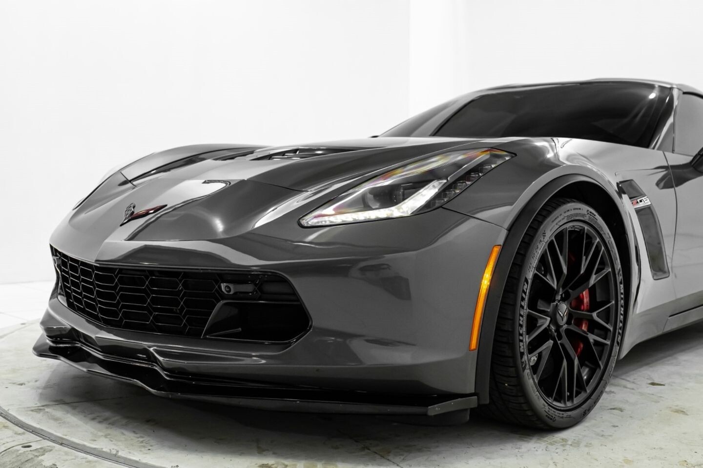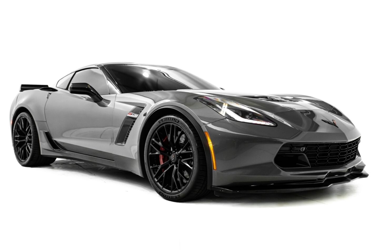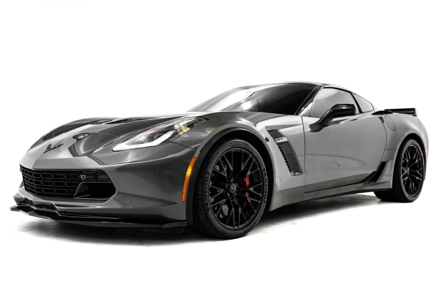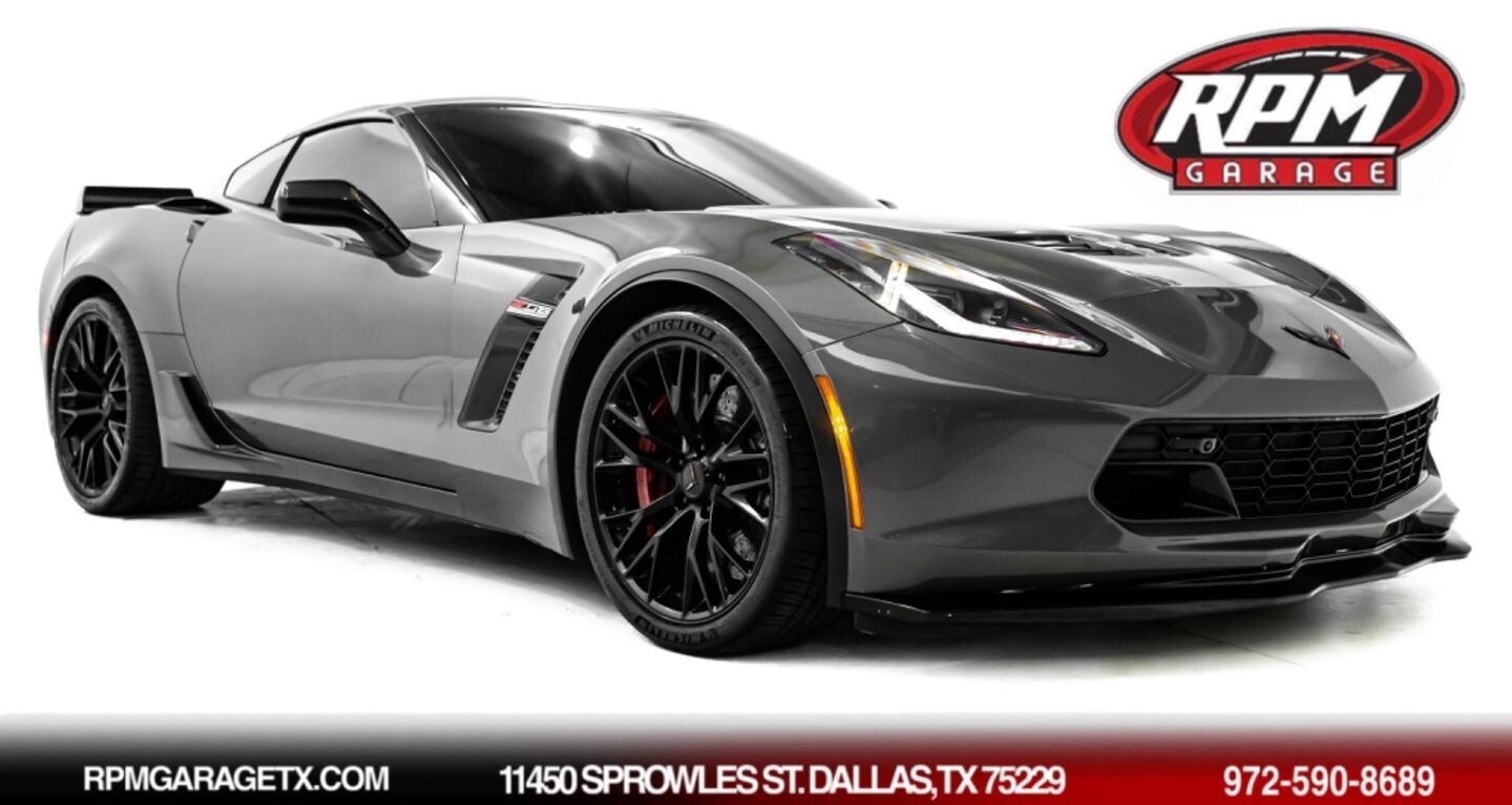 This 2016 Chevrolet Corvette Z06 Z07 Package is a high-octane American beast that has been taken to the next level with several modifications. Under the hood is a supercharged 6.2-liter V8 engine that produces 650 horsepower and 650 lb-ft of torque, all of which is sent through a eight-speed automatic transmission to the rear wheels. The engine is not stock, however, having received a DSX 2.3" supercharger pulley upgrade kit, a RotoFab cold-air intake system, stainless steel long-tube headers, a stainless steel high-flow mid-pipe, a DSX flex fuel system, and an Elite Engineering catch can, among other upgrades. This aggressive build comes equipped with OEM 19" front / 20" rear Corvette Z06 wheels and is finished in Shark Gray Metallic, a deep hue that beautifully suits the car's iconic lines. In the interior, this Z07-packaged Corvette Z06 offers "Z06"-embossed heated and ventilated leather bucket seats, an AEM air-fuel ratio gauge, a heads-up display, a flat-bottomed leather and carbon fiber steering wheel, a semi-digital gauge cluster, multi-zone A/C, selectable drive modes, and an infotainment system with Bluetooth, phone connectivity, AUX, AM/FM radio, and a backup camera, truly making this car the complete package.