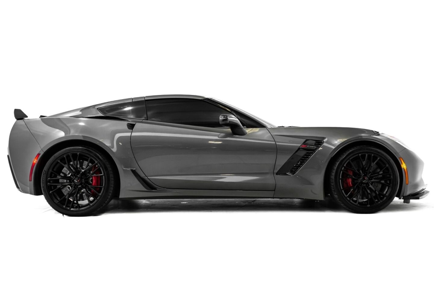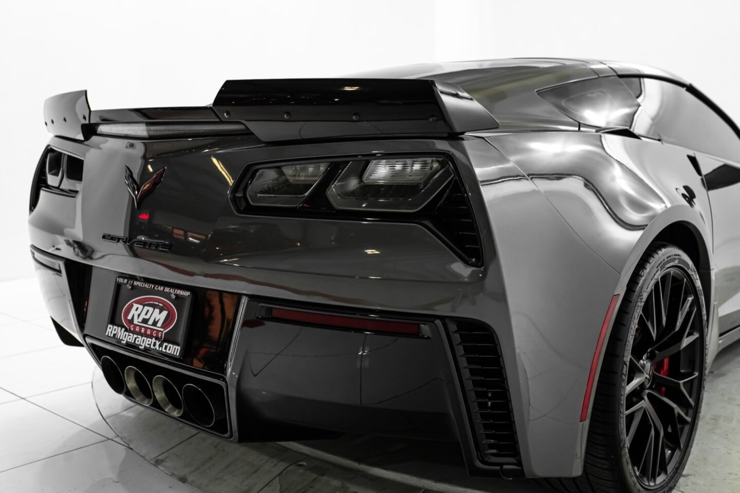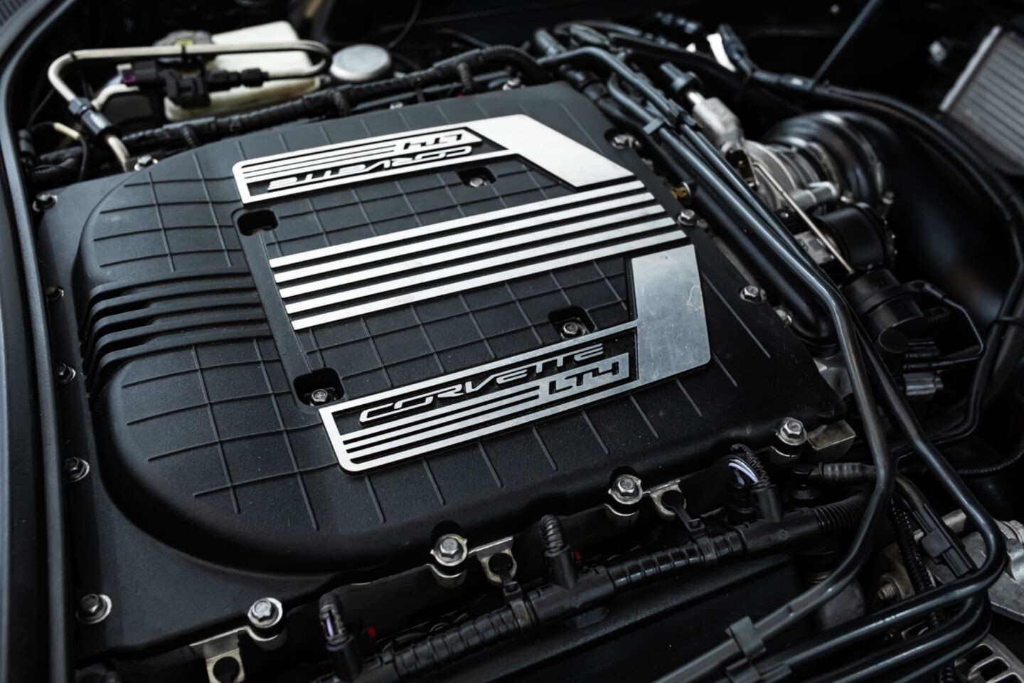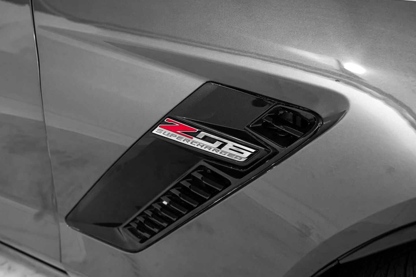 This 2016 Chevrolet Corvette Z06 Z07 Package is a high-octane American beast that has been taken to the next level with several modifications. Under the hood is a supercharged 6.2-liter V8 engine that produces 650 horsepower and 650 lb-ft of torque, all of which is sent through a eight-speed automatic transmission to the rear wheels. The engine is not stock, however, having received a DSX 2.3" supercharger pulley upgrade kit, a RotoFab cold-air intake system, stainless steel long-tube headers, a stainless steel high-flow mid-pipe, a DSX flex fuel system, and an Elite Engineering catch can, among other upgrades. This aggressive build comes equipped with OEM 19" front / 20" rear Corvette Z06 wheels and is finished in Shark Gray Metallic, a deep hue that beautifully suits the car's iconic lines. In the interior, this Z07-packaged Corvette Z06 offers "Z06"-embossed heated and ventilated leather bucket seats, an AEM air-fuel ratio gauge, a heads-up display, a flat-bottomed leather and carbon fiber steering wheel, a semi-digital gauge cluster, multi-zone A/C, selectable drive modes, and an infotainment system with Bluetooth, phone connectivity, AUX, AM/FM radio, and a backup camera, truly making this car the complete package.