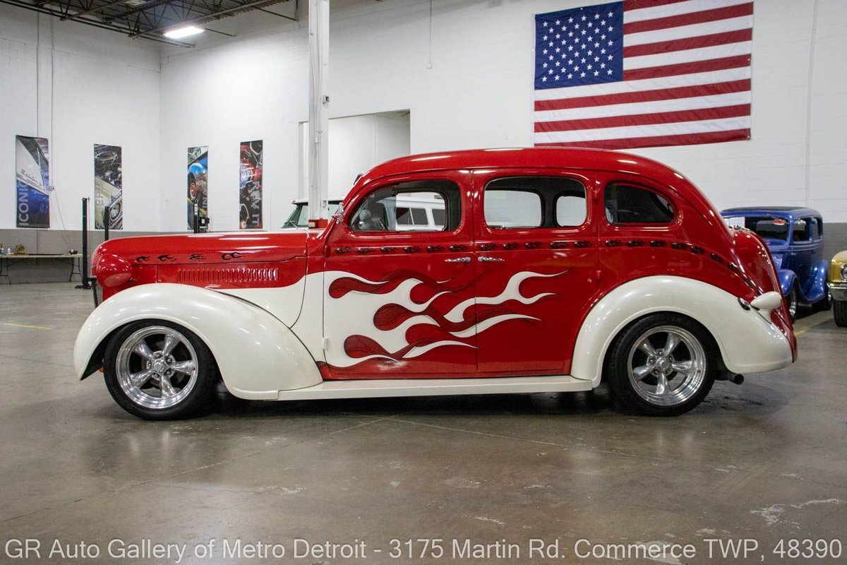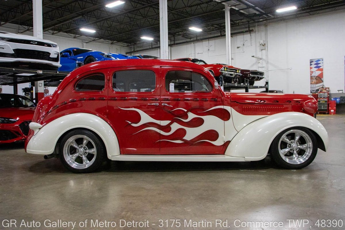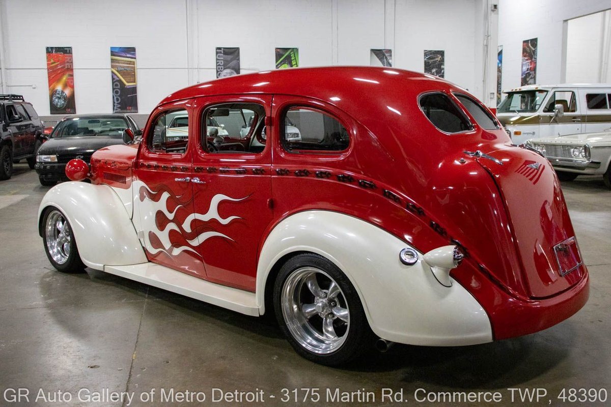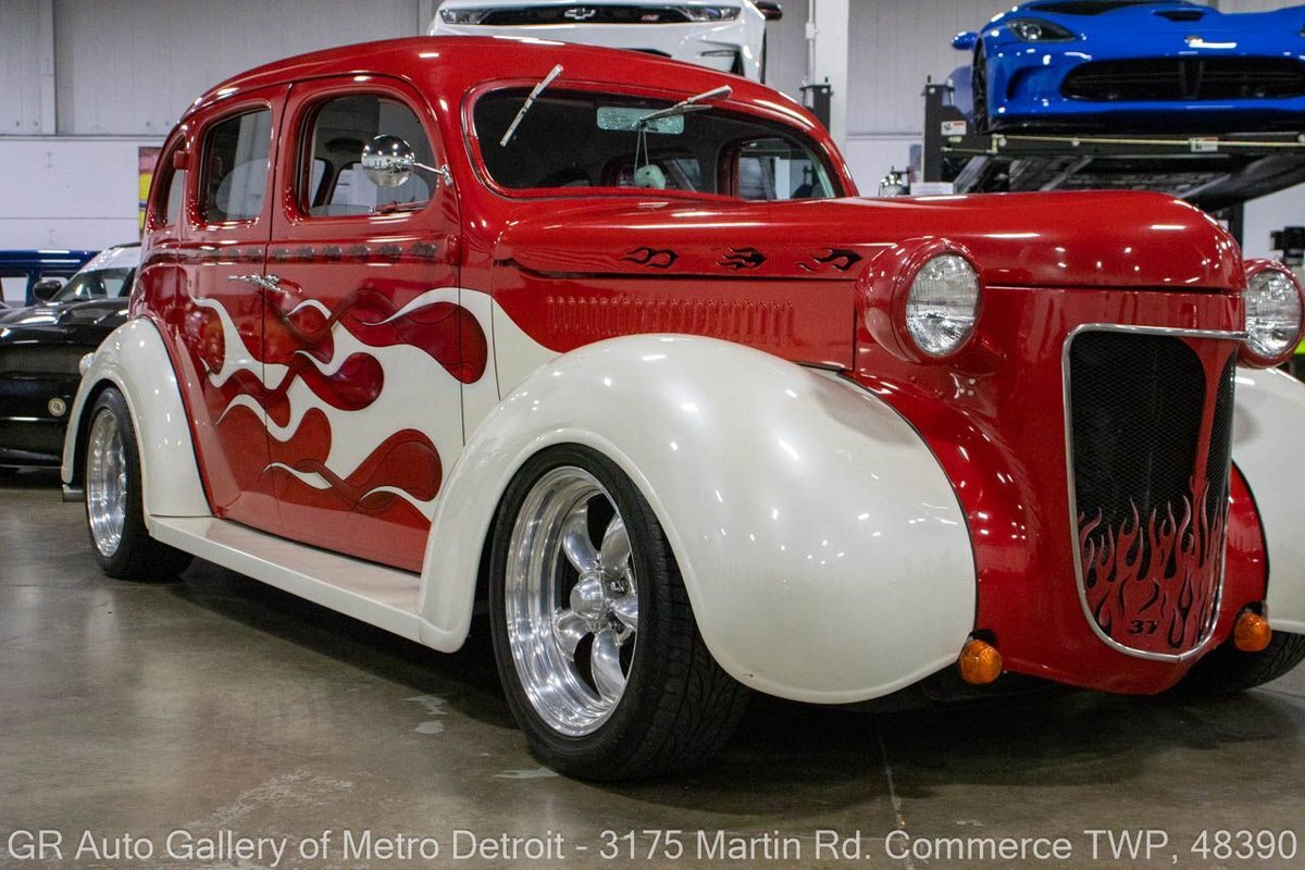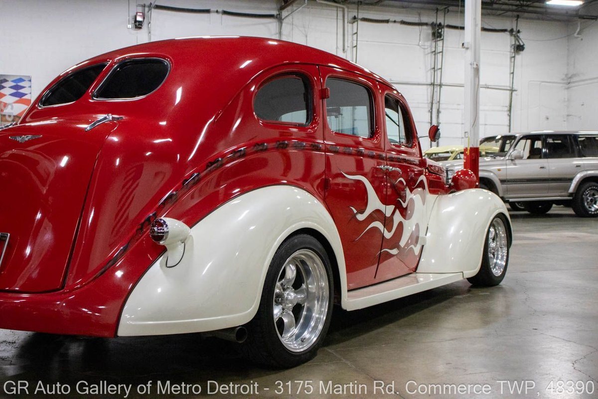 GR Auto Gallery is excited to offer this 1937 Chrysler Royal C16 for your consideration. Finished in an eye-catching red pearl exterior complemented by a sleek black interior, this classic is a true showstopper. Under the hood, you'll find a powerful 350 cubic inch V8 engine, boasting an impressive 550 horsepower. A Turbo 350 automatic transmission ensures a smooth and responsive driving experience. This Chrysler is completely custom with numerous upgrades, including a plasma flame cut hood, Shockwave airbag suspension, power windows, upgraded heat, and an EFI tech tuner. Additional enhancements include a Weiand supercharger, Dart iron eagle cylinder heads, a JVC aftermarket stereo, a steel fuel tank, MLS head gaskets, an aluminum radiator, trick flow pushrods, a street rod electric cooler, 2600 Firestone airbags, and more. This vehicle is very well documented with numerous receipts of work completed, reflecting the care and attention invested in its restoration. Drive this beauty out of our showroom or have us assist with shipping it to you anywhere in the United States! Don't hesitate to call us with any questions or for more information.