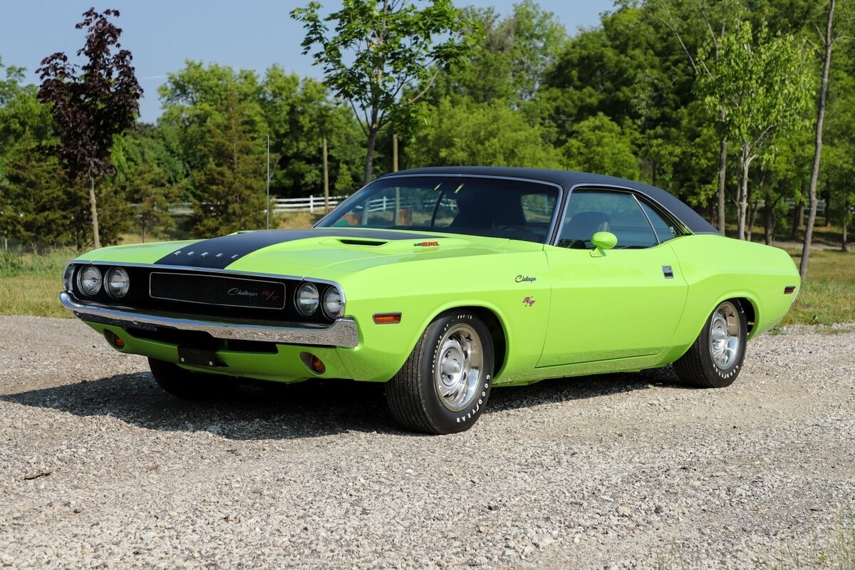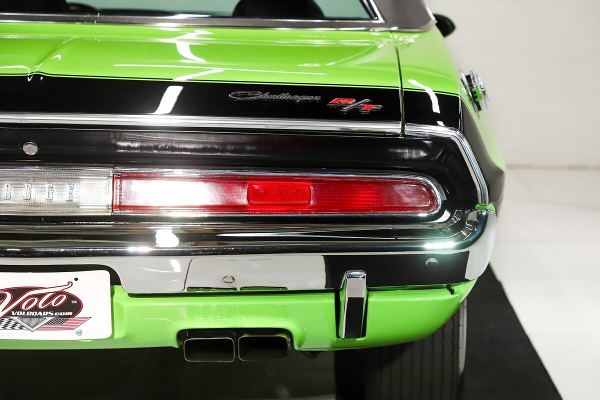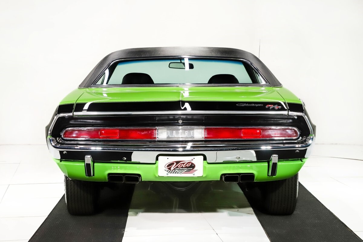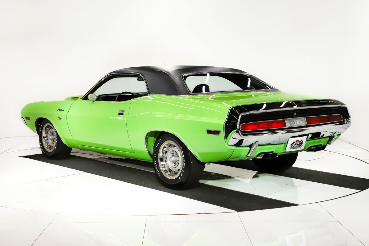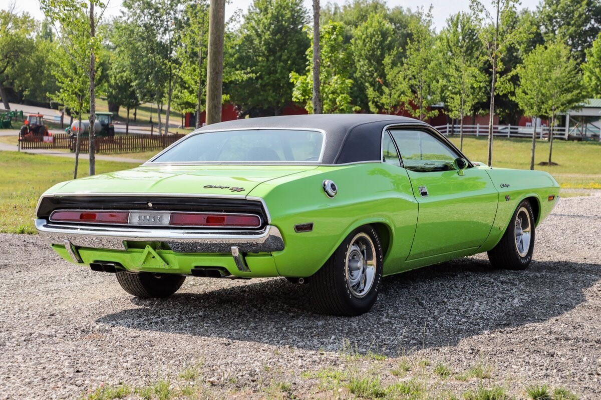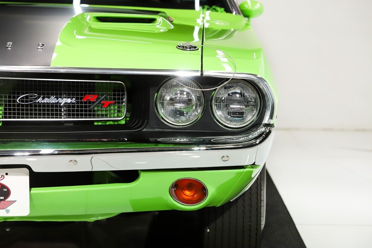 EXTERIOR: It's better than the assembly line made it! The body is laser straight, the gaps are square and flush. There's no rust, bubbles, or damage. The power bulge hood and racing mirrors are an indication of what this car is about. According to the tag it was born this high impact Sublime Green and it is polished like glass. It also has the painted gloss black tail stripe. The black hood patch and vinyl top are like new. All the chrome and trim is straight and shiny, even the racing style gas cap. New hood pins and wheel opening moldings. It sits proud on a set of 15 inch Rallye wheels and reproduction tires.