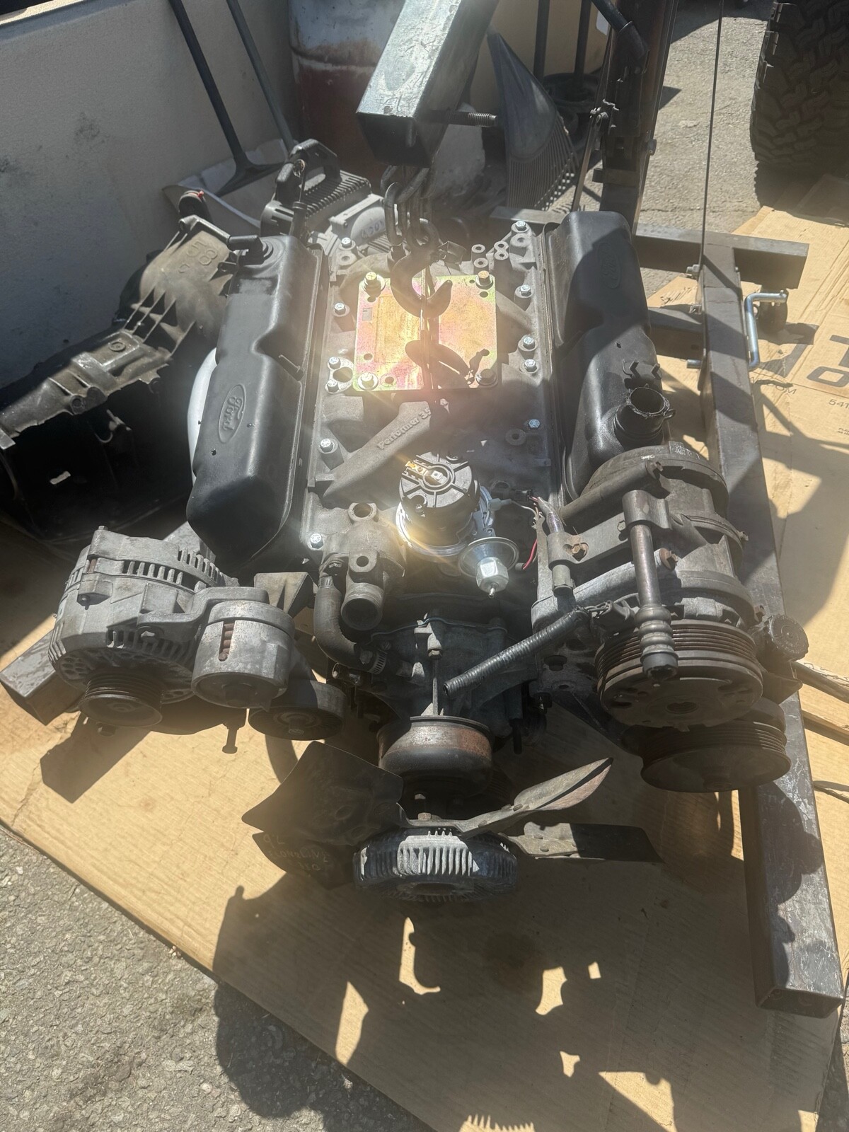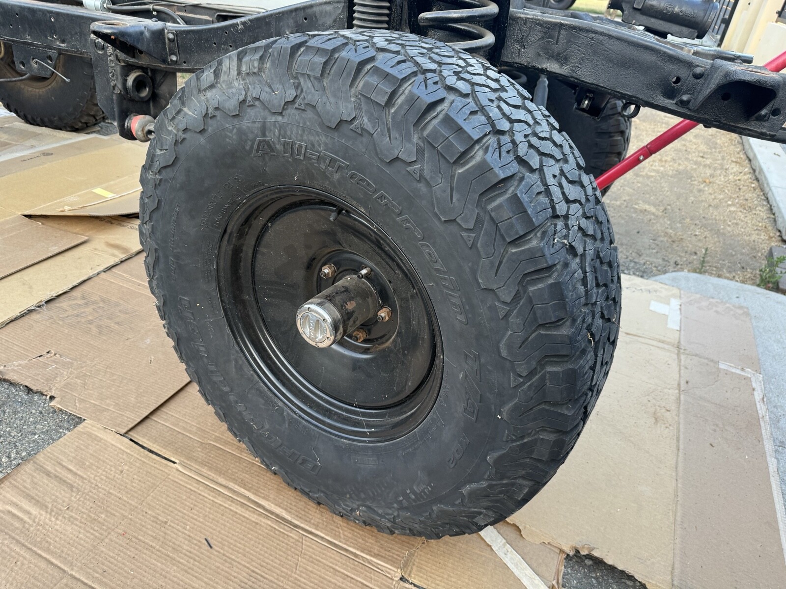 It comes with disc brake Dana 44 factory power steering box has been beefed up cause they were doing coyote swap. It plans changed steering box is installed just add the hoses has ford 9 inch big bearing drum brakes I can easily install a 351w carb motor and 4 speed manual trans for a extra fee 2500.00 to make this a runner and gas tank great start with good ports