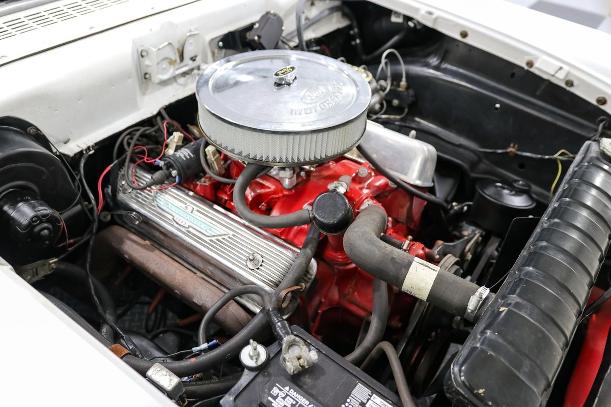 The 1957 Ford Fairlane is celebrated for its sleek design and reliable performance, and this example is no exception. Equipped with Thunderbird aluminum finned valve covers and a Holley carburetor, this Fairlane not only looks great but performs exceptionally well. The dual exhaust system provides a rich, throaty growl, while the power steering and power brakes, including front disc brakes, ensure modern driving convenience and safety. Wide white tires on Thunderbird true spoke wheels complete the vintage look, making this Fairlane a showstopper on any road.
