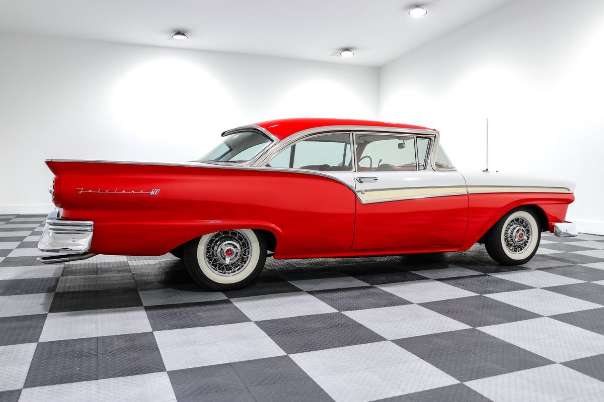 Step into the golden era of American motoring with this stunning 1957 Ford Fairlane, a perfect blend of vintage style and modern performance upgrades. This classic coupe, resplendent in a vivid Red exterior and a striking Red and White two-tone interior, is a true icon of the 1950s. Under the hood lies a robust 292 V8 engine paired with a Fordomatic 2-speed automatic transmission, promising a smooth and powerful driving experience.