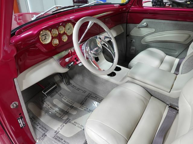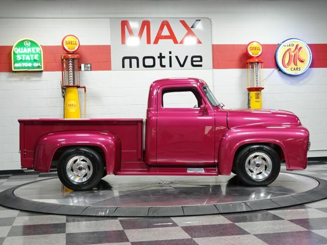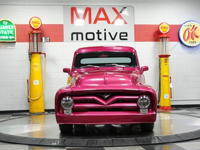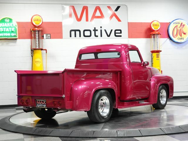 Maxmotive is pleased to present this awesome 1955 Ford F-1 in our Pittsburgh Showroom. This truck was professionally built with no expense spared. It has a 3” roof chop, shaved door handles, molded bumpers and many other custom touches. The truck rides on a Camaro subframe and custom Boyd Coddington wheels which gives it the perfect stance. It is powered by a Ford 351 V8 coupled with a Ford C6 transmission and Lincoln rear differential. All of this power is stopped by four wheel disc brakes, The bodywork and paint are phenomenal; the builder chose 1995 GM Raspberry metallic base/clear paint to set this truck apart from all others. The interior is finished in a tasteful gray color and features a tilt wheel, custom gauges and Vintage Air air conditioning. It is believed to have only 6,385 miles since construction. Check out more pictures at .