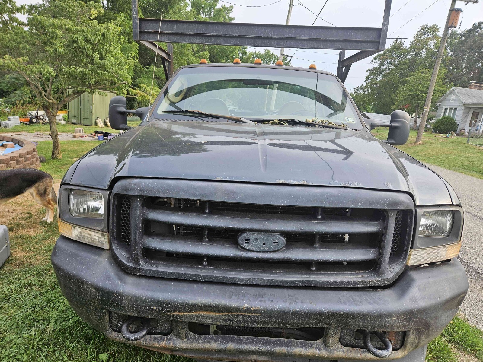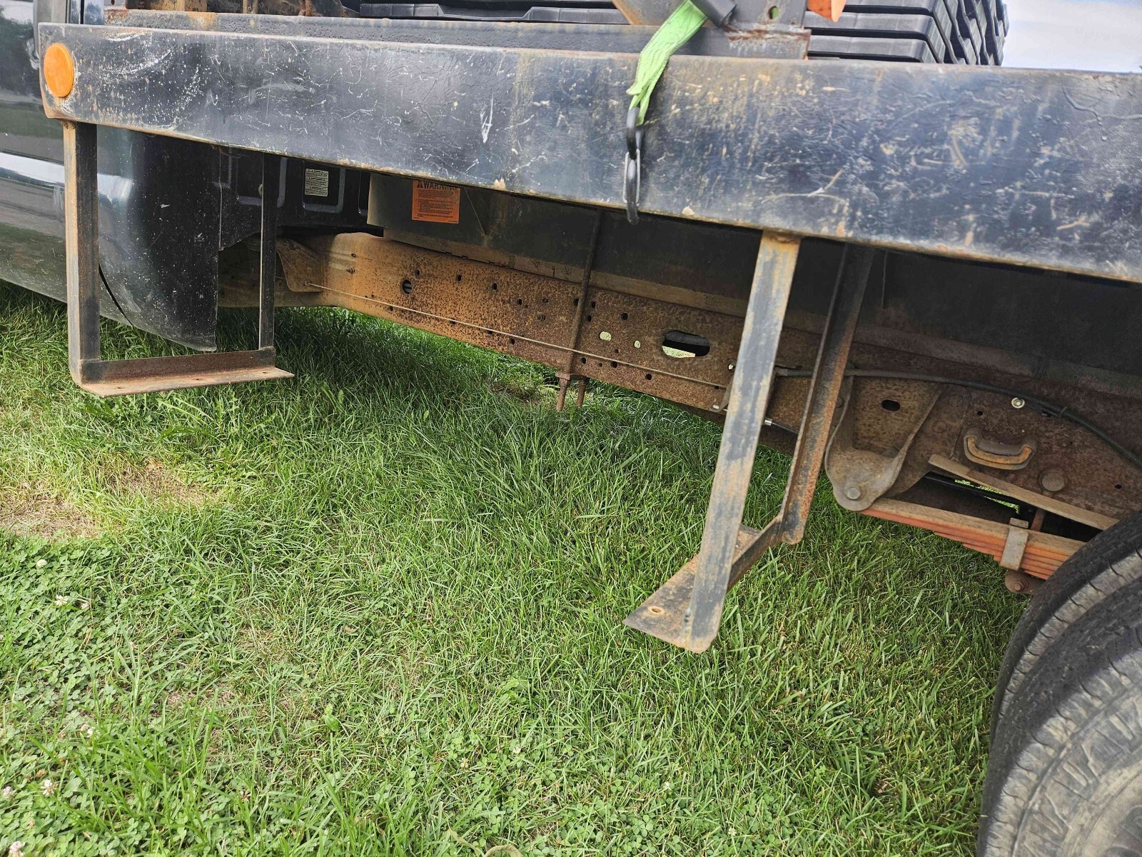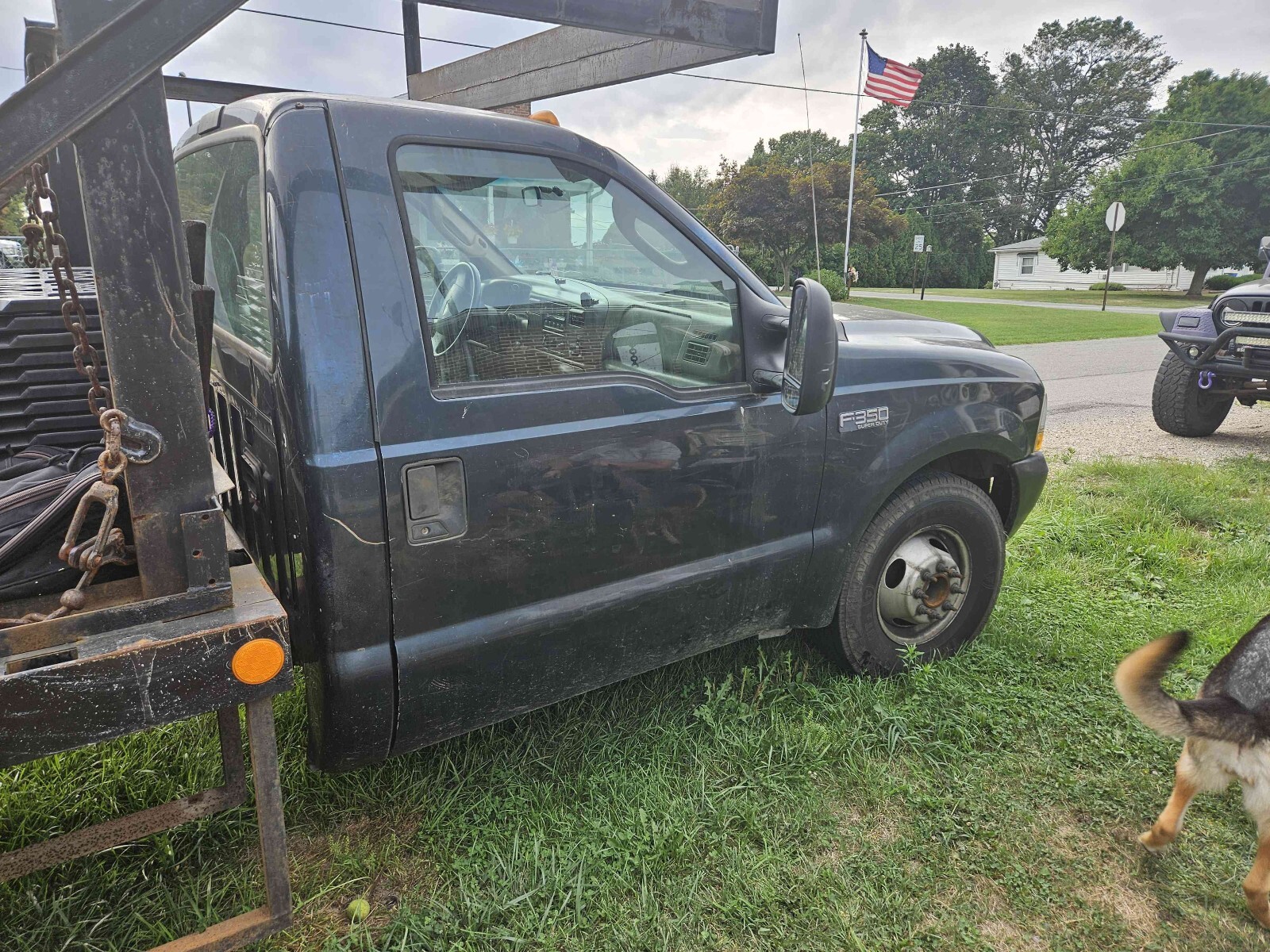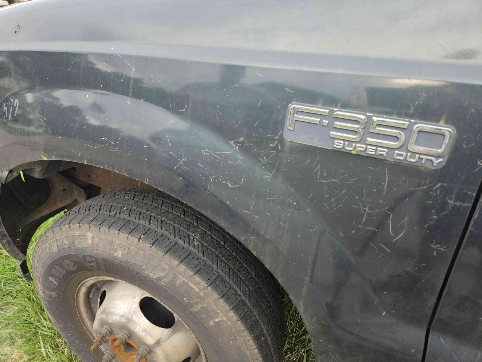 2004 Ford F-350 Super Duty dually with a rebar flat bed. 273,518 miles. 5.4L with automatic transmission. It basically has a new drive train. The bed is 8 foot wide by 12 feet long set up for transporting rebar. There is an overhang above the cab. The truck was a work truck and is ready for its next mission in life. The front of the hood has surface rust bubbles. There are small dents and scratches in the paint. The bumper has dents. The marker light at the driver's side headlight is loose. One of the cab marker light lenses is loose. The truck starts right up. The windshield has a crack next to the inspection sticker. Clean title in hand.