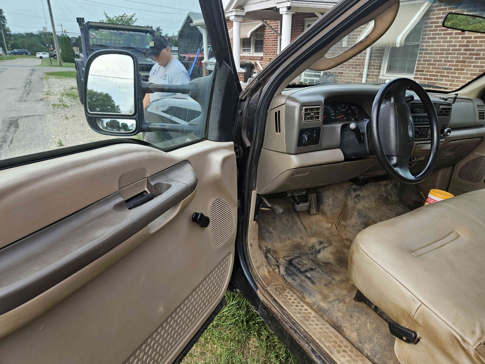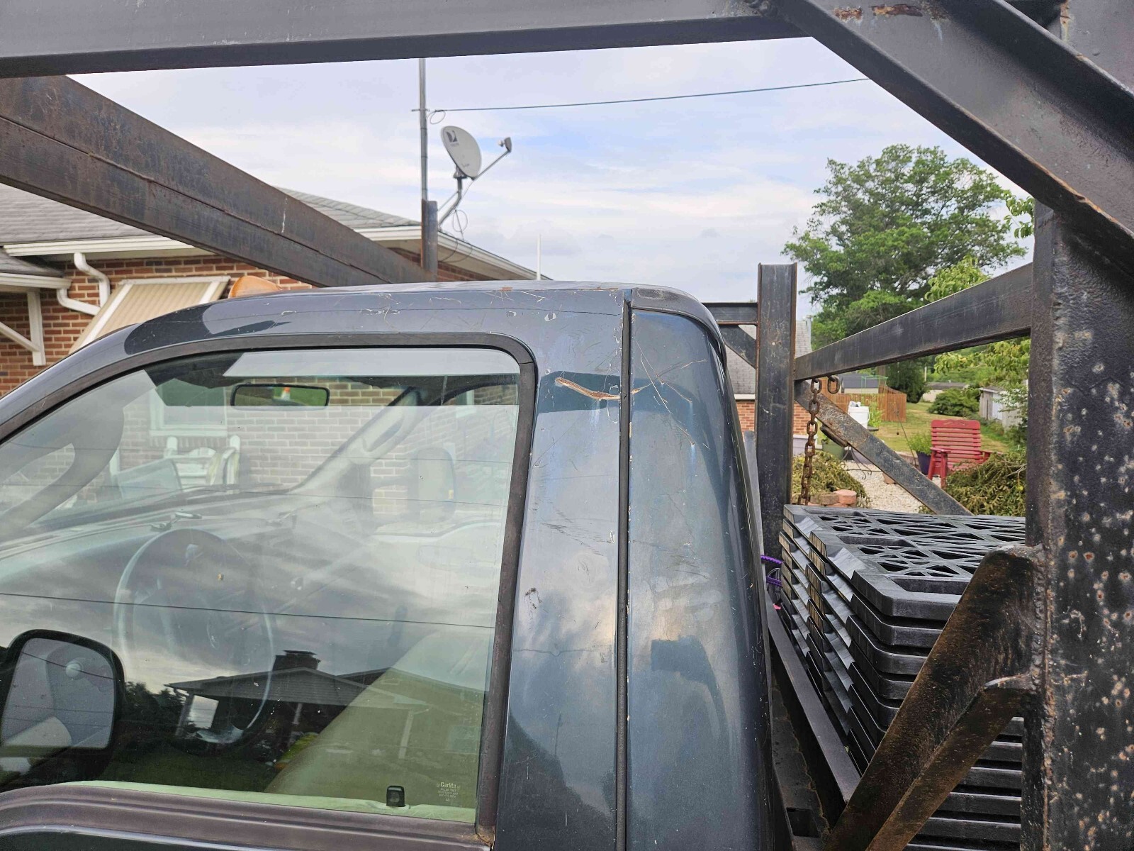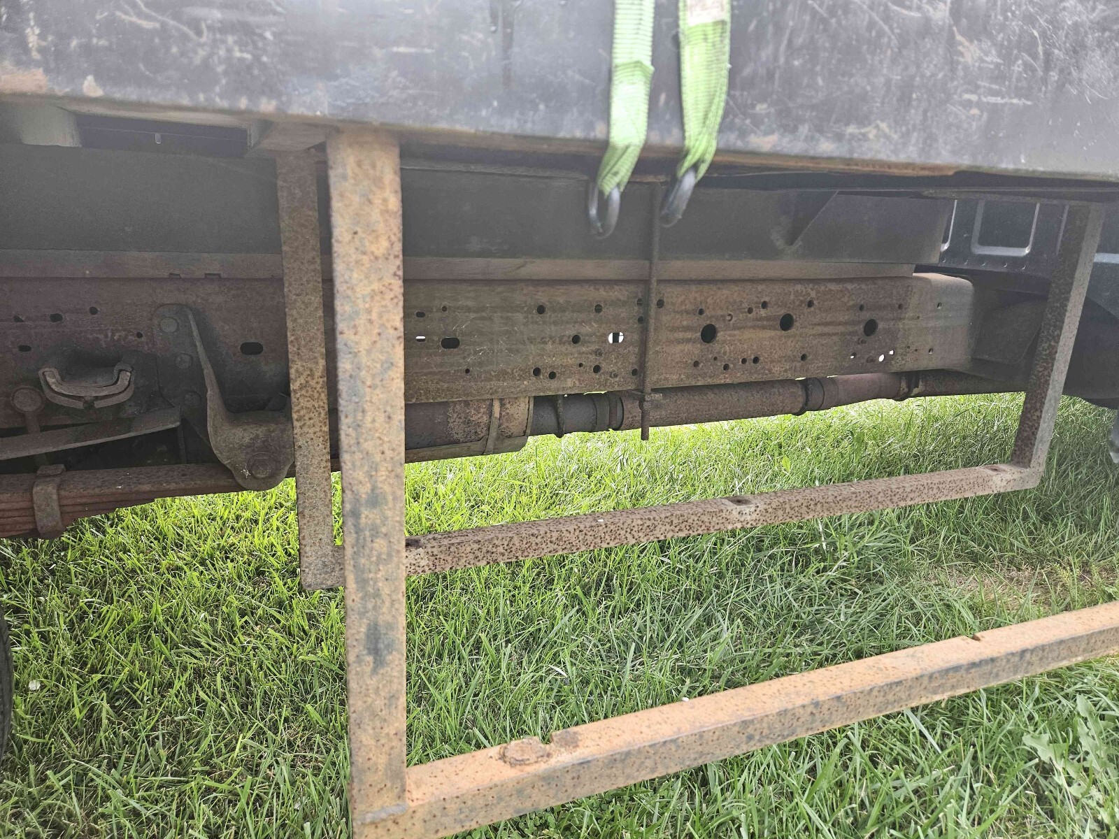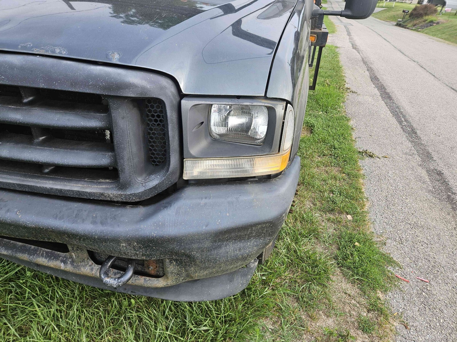 2004 Ford F-350 Super Duty dually with a rebar flat bed. 273,518 miles. 5.4L with automatic transmission. It basically has a new drive train. The bed is 8 foot wide by 12 feet long set up for transporting rebar. There is an overhang above the cab. The truck was a work truck and is ready for its next mission in life. The front of the hood has surface rust bubbles. There are small dents and scratches in the paint. The bumper has dents. The marker light at the driver's side headlight is loose. One of the cab marker light lenses is loose. The truck starts right up. The windshield has a crack next to the inspection sticker. Clean title in hand.