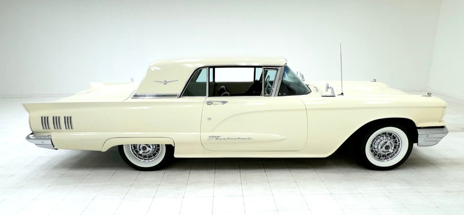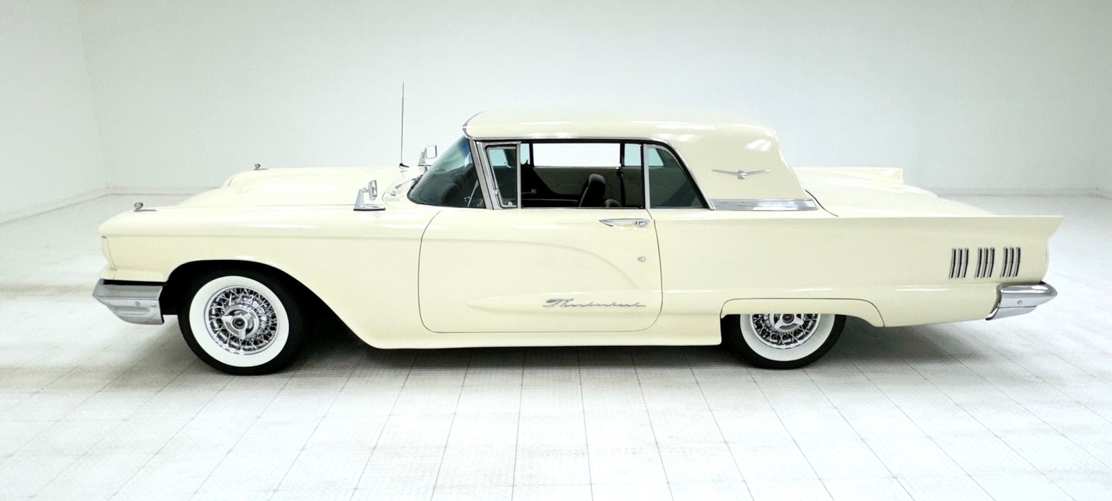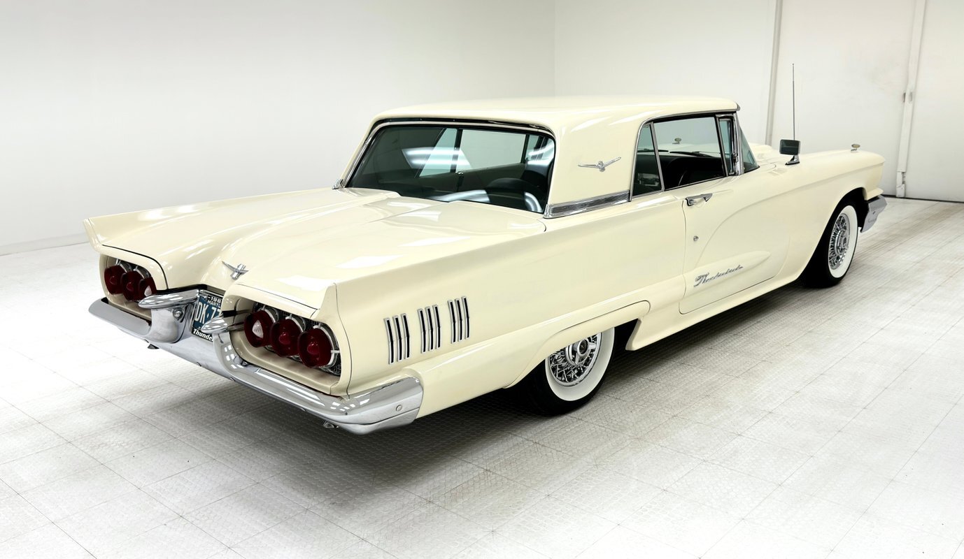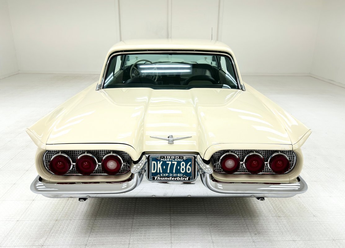For consignment, a 1960 Ford Thunderbird hardtop with a title verified 23,608 actual miles, a garage kept, collector grade example of Ford's attempt to address consumer demand for more seating in a sports coupe.