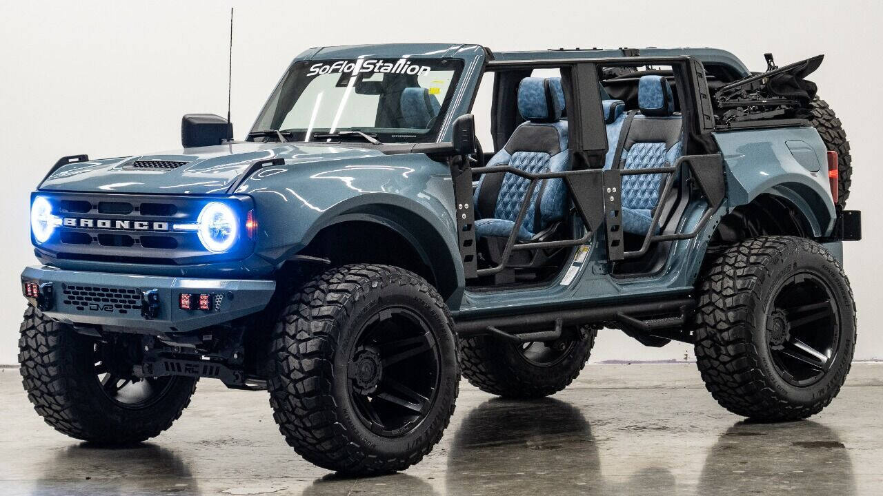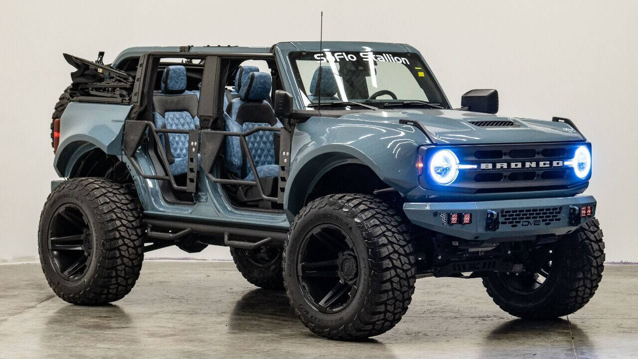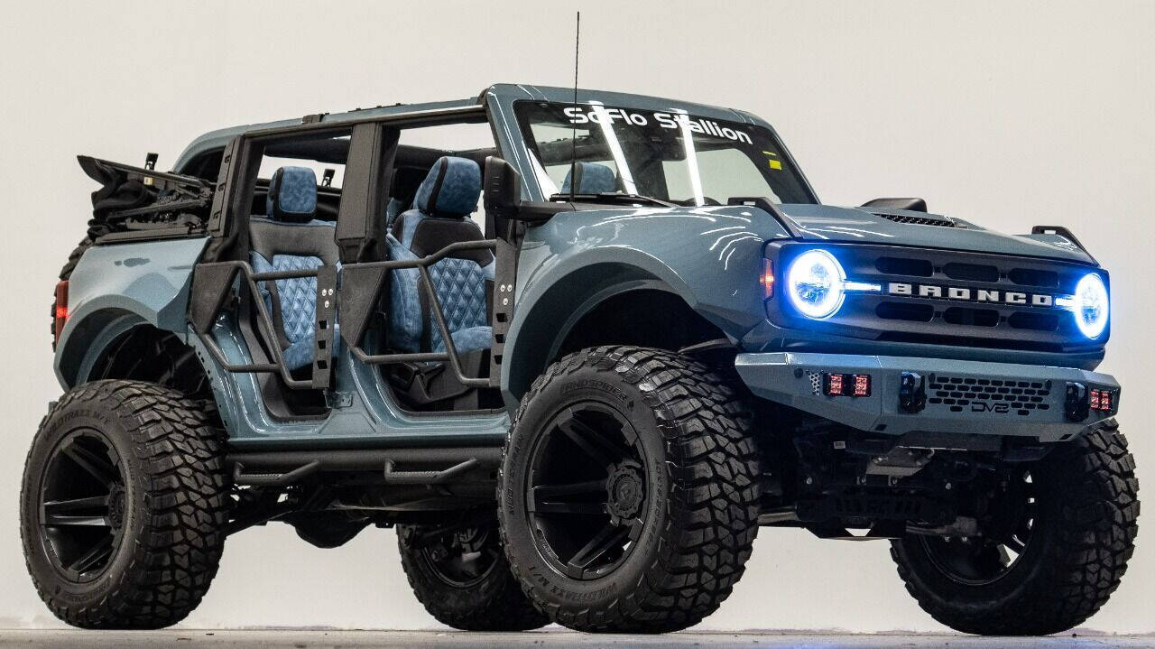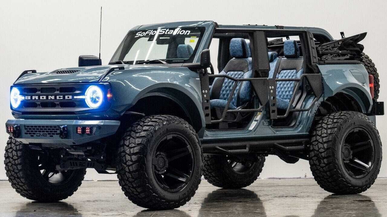YEAR: 2022 TOP: SOFT TOP CONVERTIBLE COLOR: High gloss Area 51 Blue/Gray TRIM: SoFlo Lifted Custom Bronco (Stallion) LIFT: 5” TIRES: 38” RIMS: 22” Black SFJ HEADLIGHT: Morimoto HOOD: Lawman GRILL: Color-Matched DV8 Steel Front Bumper with LED Cube Lights SIDESTEPS: Steel SPECIAL FEATURES: Limited Edition Series WEATHERPROOF INTERIOR: King Baby Blue with Black WHAT MAKES THIS TRUCK SPECIAL: Hottest 4x4 on the market – our builds are priced under what regular dealers charge for stock units. CALL US OR COME SEE THESE CUSTOM TRUCKS IN PERSON Location 1: 1430 W Broward, BLVD Fort Lauderdale, FL 33312 855-873-7632 Location 2: 2720 Okeechobee BLVD West Palm Beach, FL 33406 855-873-7632 NEW E-PURCHASE SYSTEM - Customers never have to leave the comfort of their home couch to purchase a SoFlo Jeeps or Apocalypse 6x6 truck. We offer online payment, financing and video walkarounds. We ship our trucks worldwide to any and every location. Have a trade-in? Not a problem at all, as WE ACCEPT TRADE-INS NATIONWIDE AND YOU NEVER PAY TO SHIP IT. We make buying and receiving your dream truck beyond simple. ****ALL PIPE DOORS ARE EXTRA AND NOT INCLUDED IN PRICE OF THE TRUCK**** Custom Lifted Jeep, Mercedes, Landrover, Bronco, Ram trucks