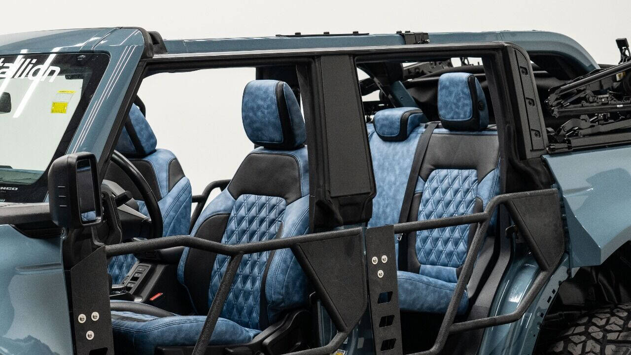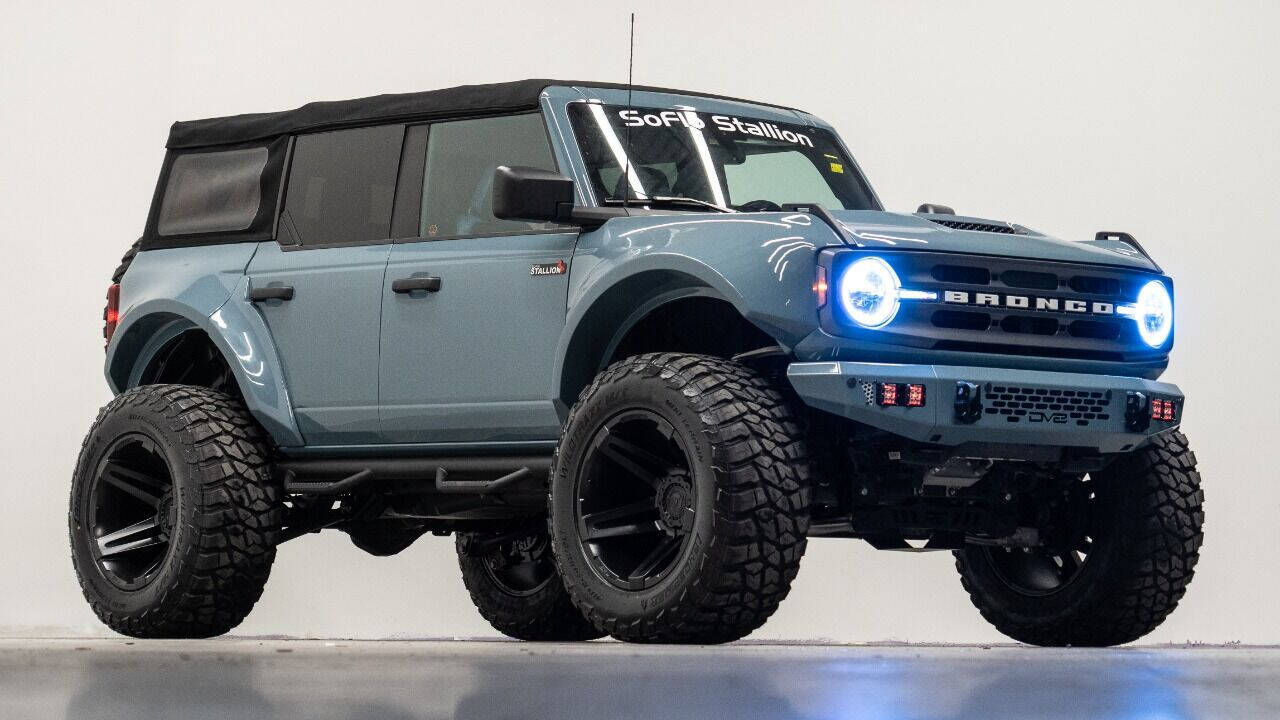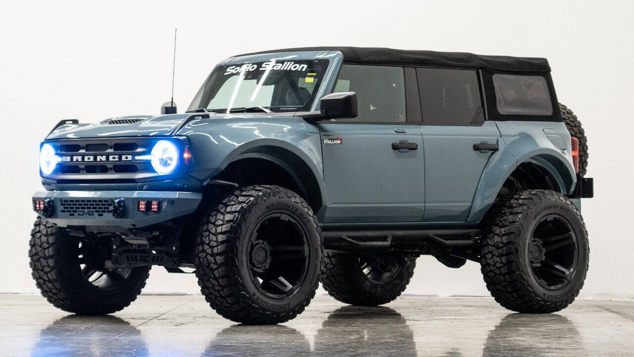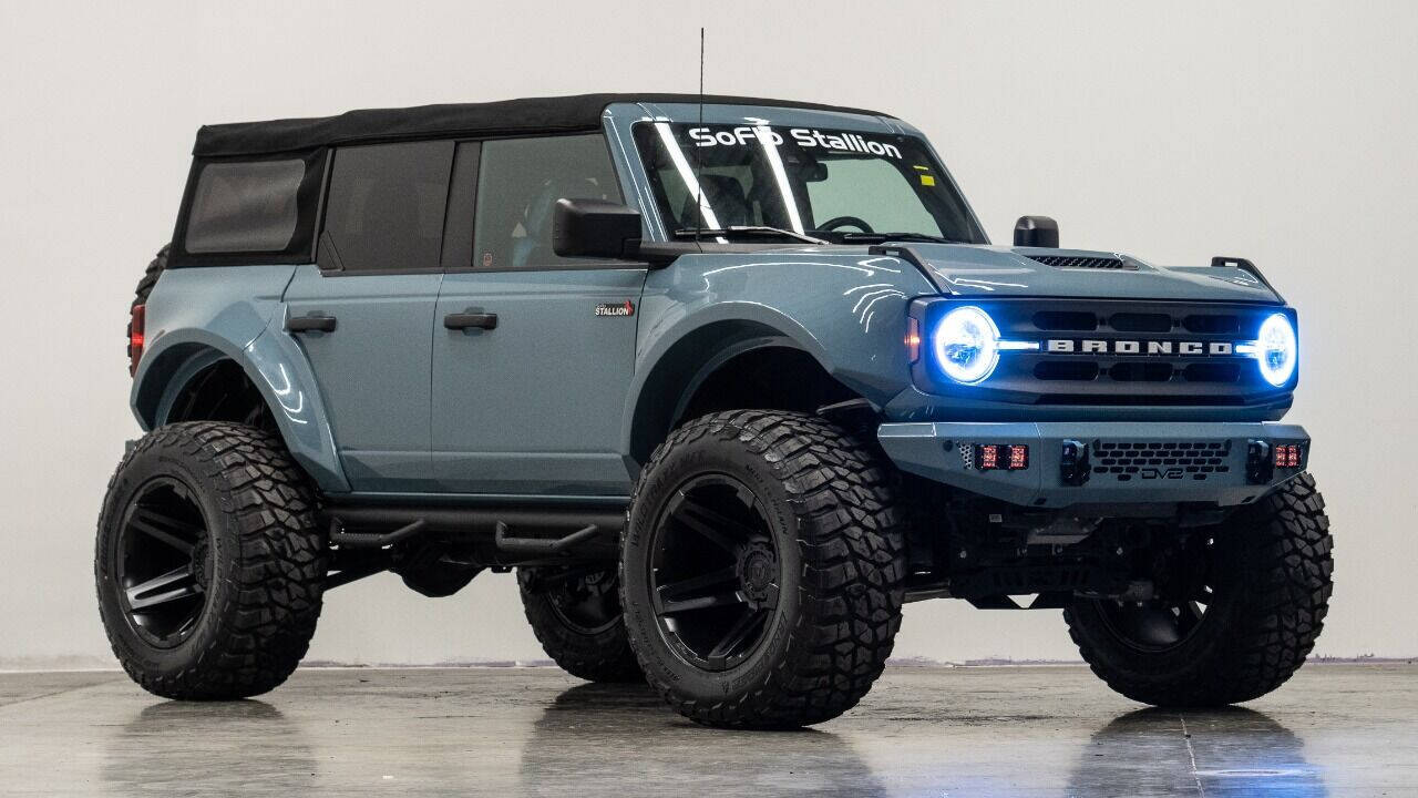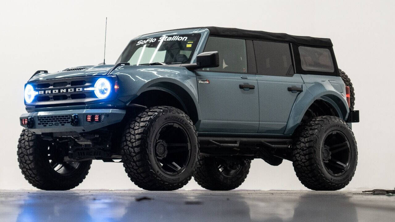 YEAR: 2022 TOP: SOFT TOP CONVERTIBLE COLOR: High gloss Area 51 Blue/Gray TRIM: SoFlo Lifted Custom Bronco (Stallion) LIFT: 5” TIRES: 38” RIMS: 22” Black SFJ HEADLIGHT: Morimoto HOOD: Lawman GRILL: Color-Matched DV8 Steel Front Bumper with LED Cube Lights SIDESTEPS: Steel SPECIAL FEATURES: Limited Edition Series WEATHERPROOF INTERIOR: King Baby Blue with Black WHAT MAKES THIS TRUCK SPECIAL: Hottest 4x4 on the market – our builds are priced under what regular dealers charge for stock units. CALL US OR COME SEE THESE CUSTOM TRUCKS IN PERSON Location 1: 1430 W Broward, BLVD Fort Lauderdale, FL 33312 855-873-7632 Location 2: 2720 Okeechobee BLVD West Palm Beach, FL 33406 855-873-7632 NEW E-PURCHASE SYSTEM - Customers never have to leave the comfort of their home couch to purchase a SoFlo Jeeps or Apocalypse 6x6 truck. We offer online payment, financing and video walkarounds. We ship our trucks worldwide to any and every location. Have a trade-in? Not a problem at all, as WE ACCEPT TRADE-INS NATIONWIDE AND YOU NEVER PAY TO SHIP IT. We make buying and receiving your dream truck beyond simple. ****ALL PIPE DOORS ARE EXTRA AND NOT INCLUDED IN PRICE OF THE TRUCK**** Custom Lifted Jeep, Mercedes, Landrover, Bronco, Ram trucks