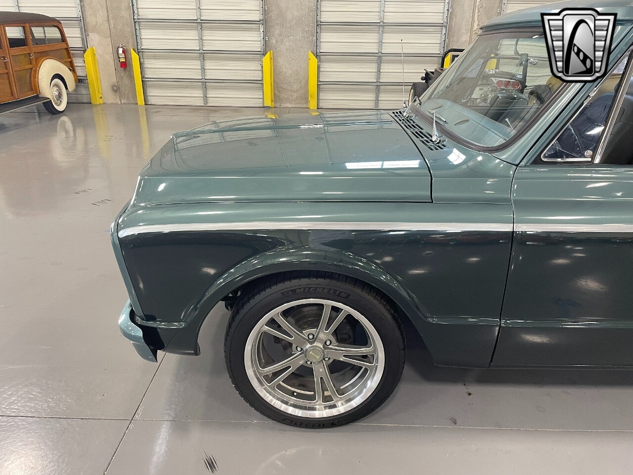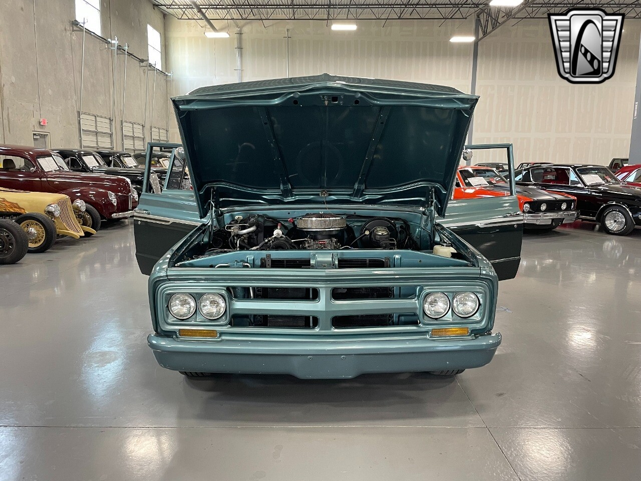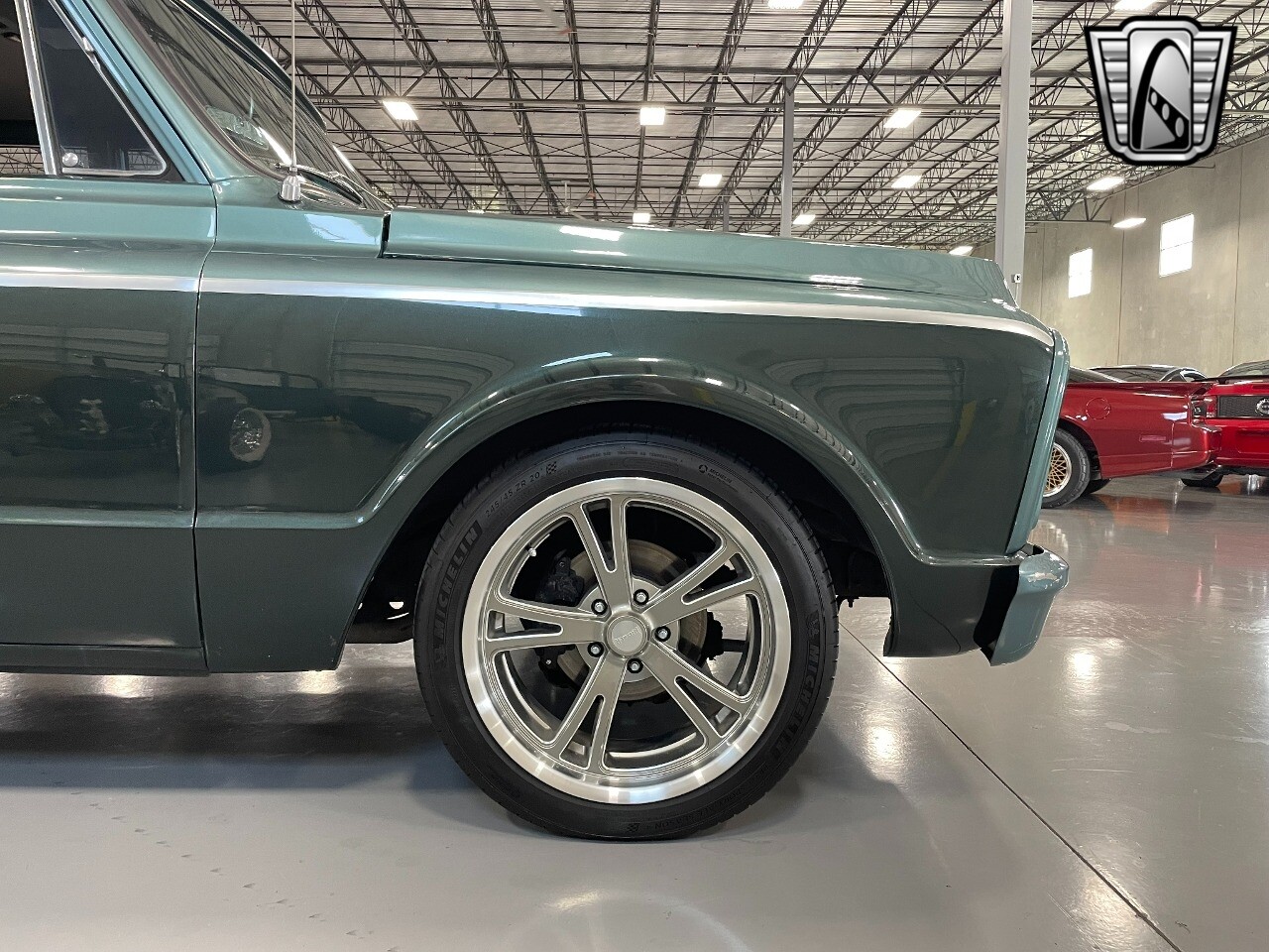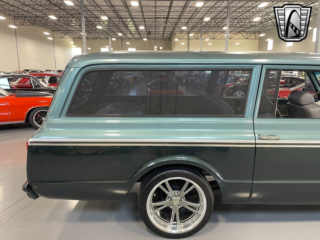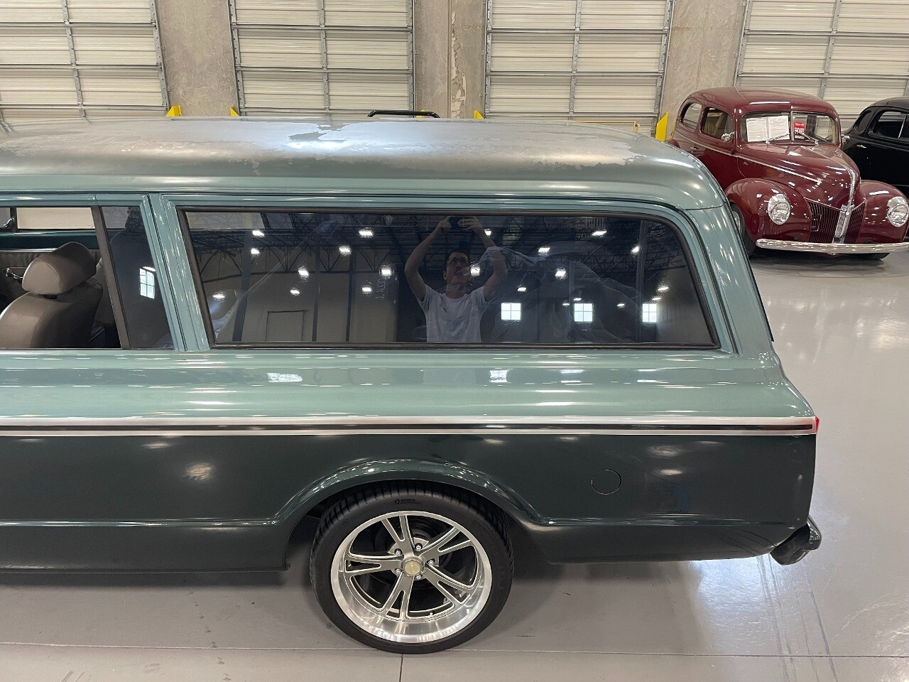Gateway Classic Cars of San Antonio/Austin is proud to present this 1969 GMC Suburban. Under the hood is a 383 cubic inch stroker V8 that gives you big block displacement in a small block weight. It inhales deeper with a four-barrel carburetor, and Doug's headers exhale with added power. t's ready for the long haul with cruise control and a 700R4 four-speed automatic transmission with overdrive. There's even an adjustable air ride rear suspension so that this GMC can even handle the larger loads in the back. Add in power steering, power brakes, front discs, and Bilstein shocks, and you have a solid all-around Suburban. Step inside, and you'll be greeted by a host of modern conveniences seamlessly integrated into this classic vehicle. Plush carpeting, cold blowing air conditioning custom door panels, cup holders, power locks, an alarm, a custom headliner w/console, and fully upgraded AM/FM/CD stereo with Bluetooth and subwoofer speakers are all part of a very modern experience. You still have two wide rows of bench seats, but now they are done in supple leather. It's a great driver's set up with a custom sport steering wheel on a tilt column and full gauges w/tach. More of the modern appeal comes from removing the trim and badging for a sleeker sense of style. But the way the custom stripe package adds pinstriping and a cool trim-like line down the sides are reminders that this upgraded Suburban still knows how to be a true classic. In fact, speaking of vintage details, you'll love the hot rod style side mirrors and Ridler wheels. So no matter if you're looking to haul friends, family, or your toys, this classic can do it, and it can handle it all at once!.