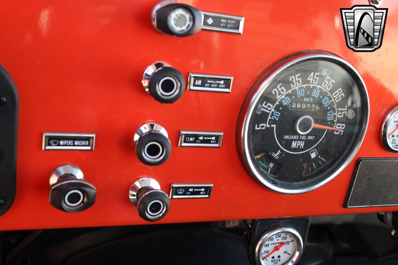 Gateway Classic Cars of Las Vegas presents this 1982 Jeep CJ-5. Coated in a vibrant lava orange exterior, this vehicle is sure to turn heads wherever it goes. The black vinyl interior provides a striking contrast to the exterior, creating a timeless look that is both rugged and stylish.