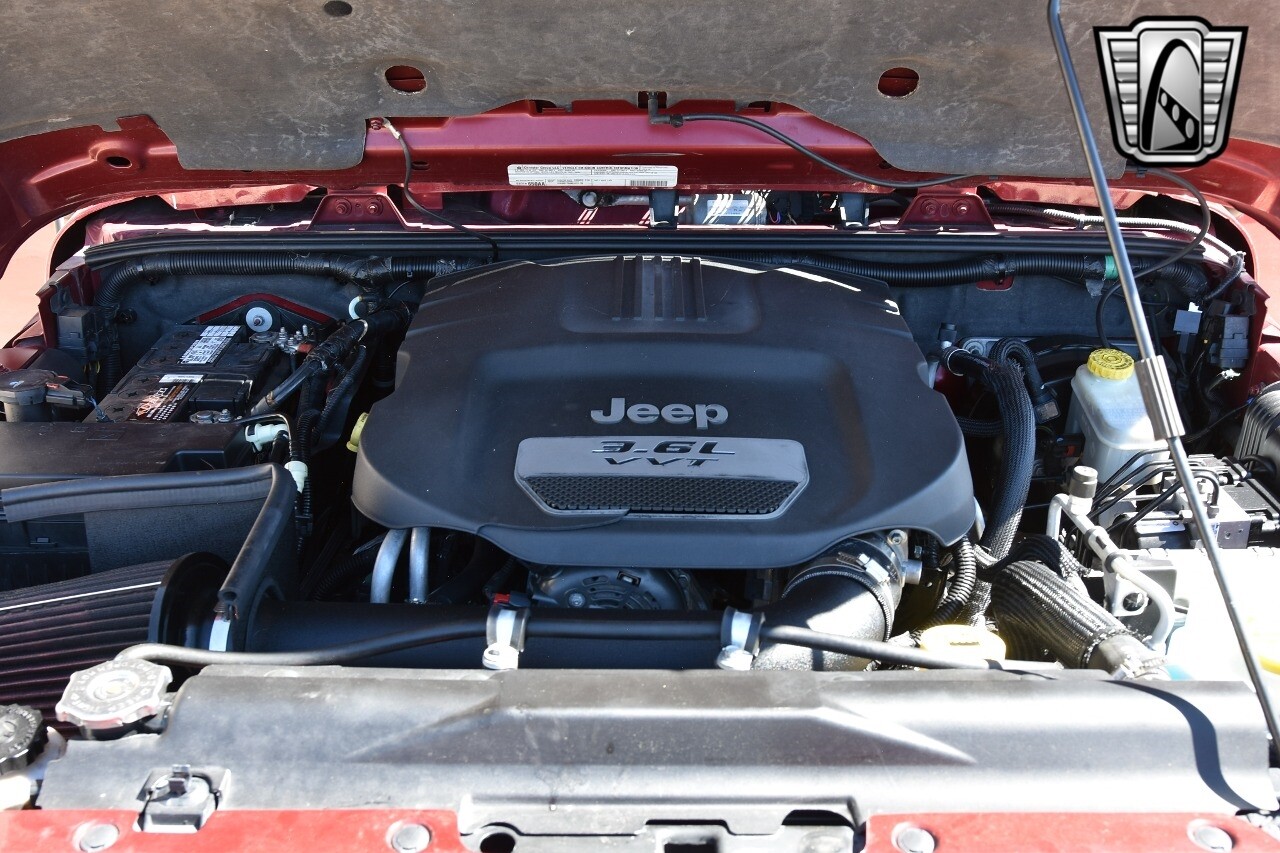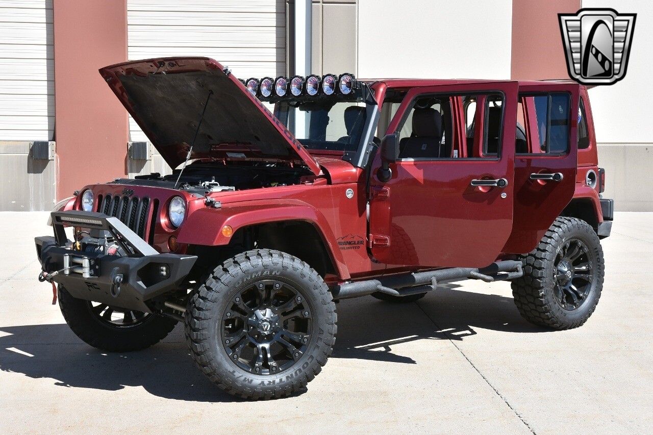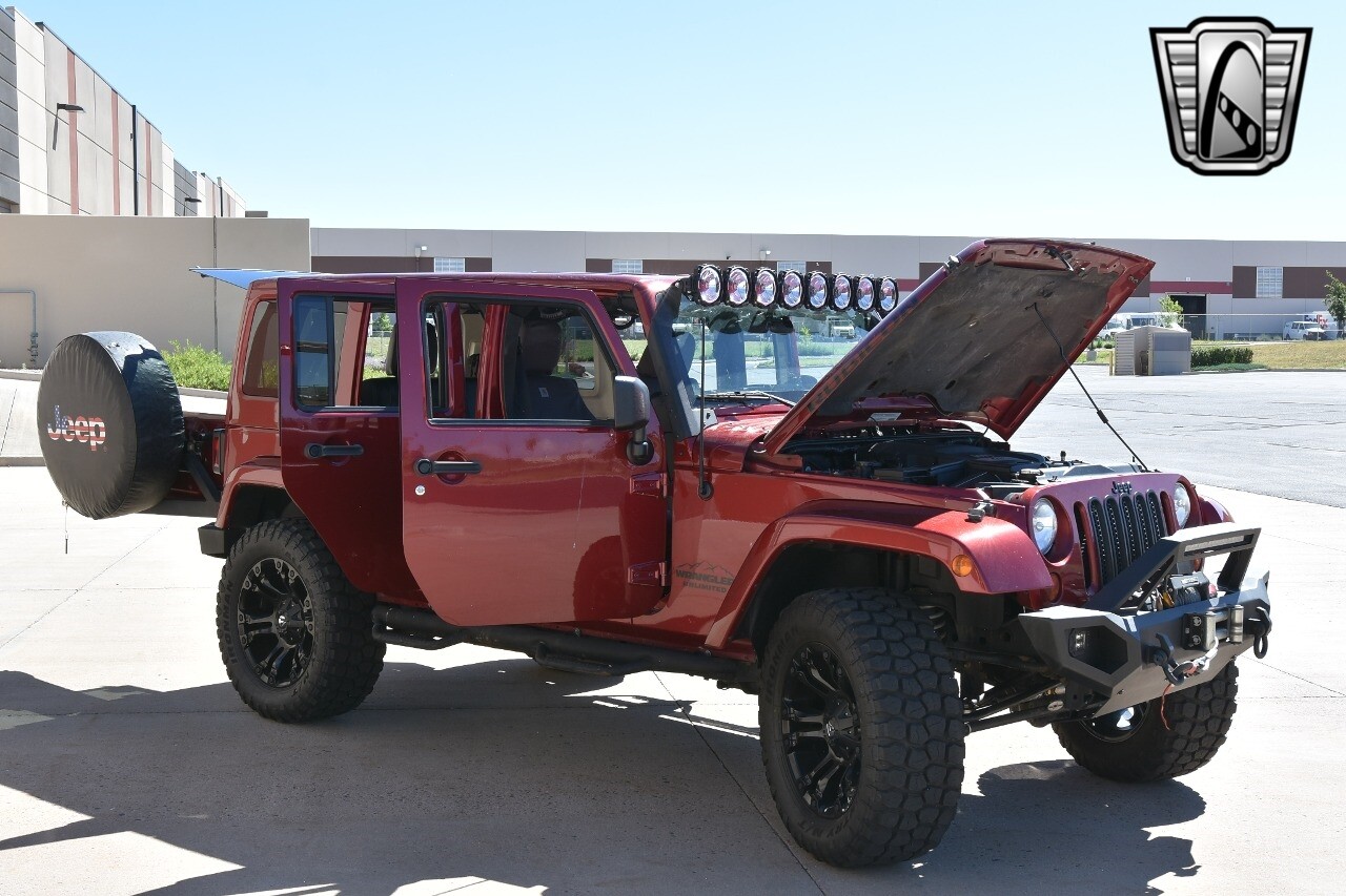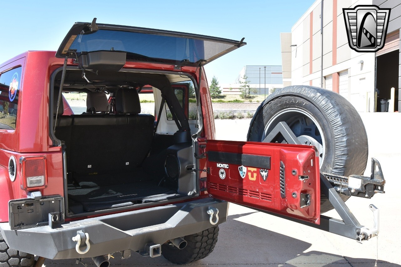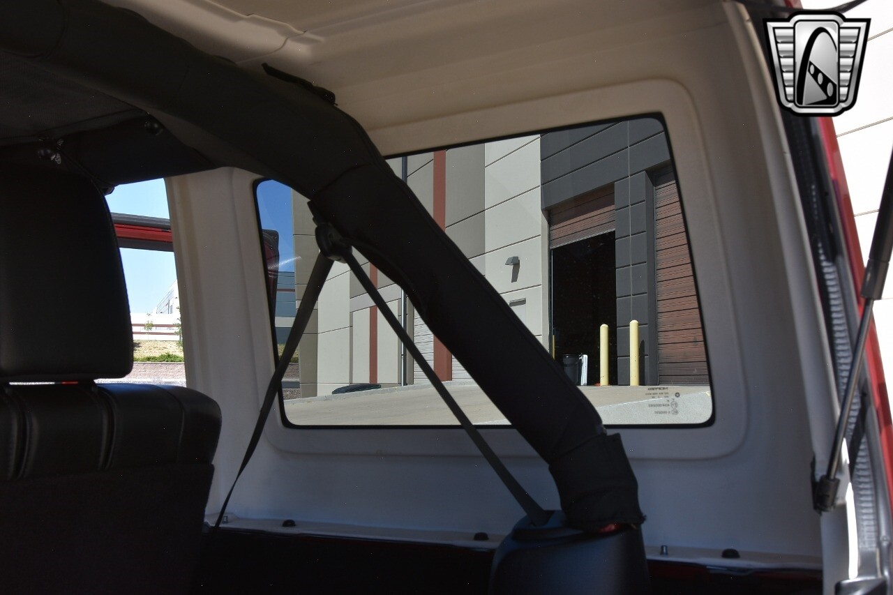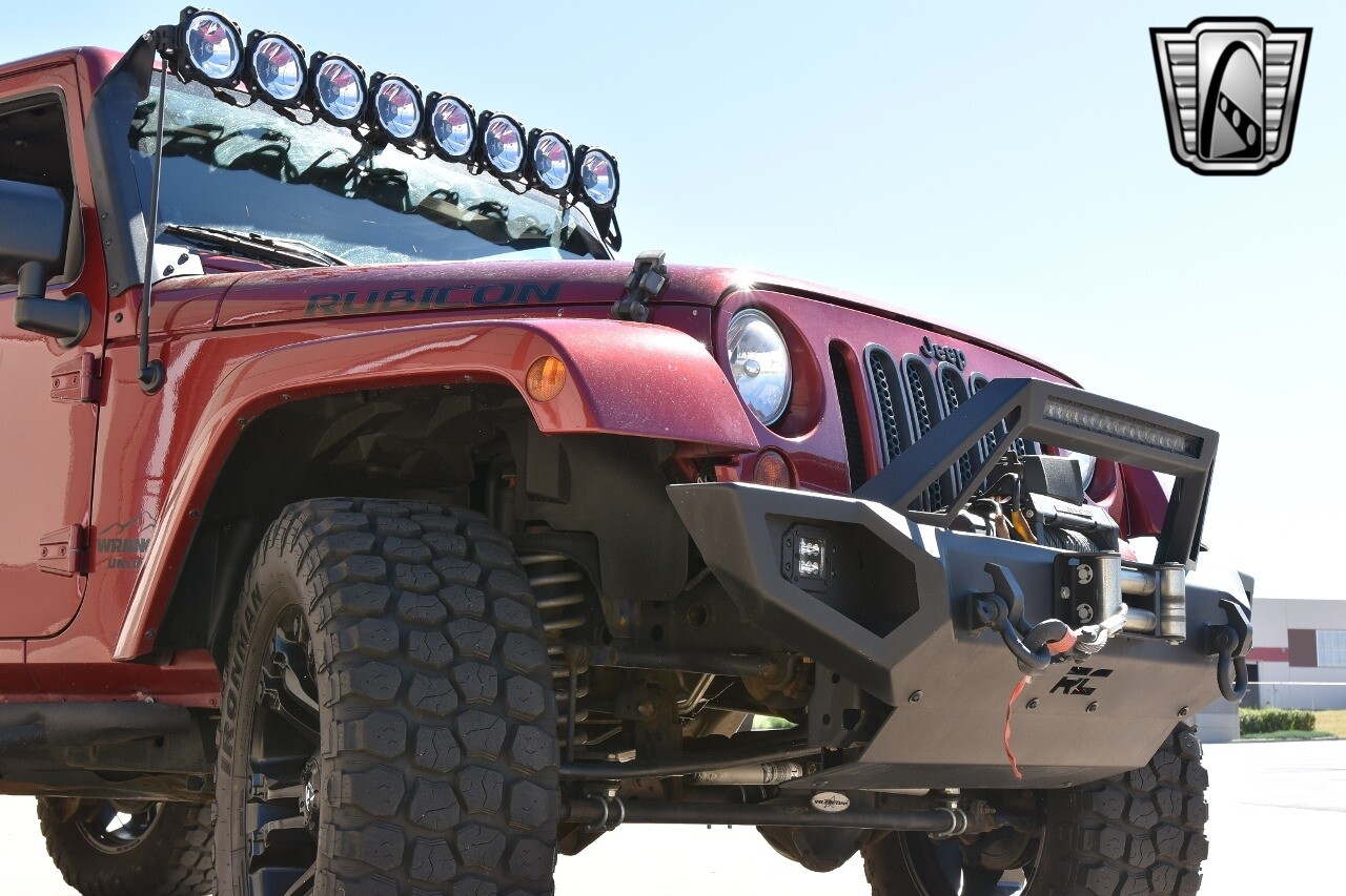 Gateway Classic Cars of Denver Presents this 2012 Jeep Wrangler Unlimited Rubicon, a blend of rugged capability and luxury. This eye-catching vehicle comes in a vibrant red exterior color that is sure to turn heads wherever you go. The interior is just as impressive with its sleek black leather seats, offering both comfort and style.