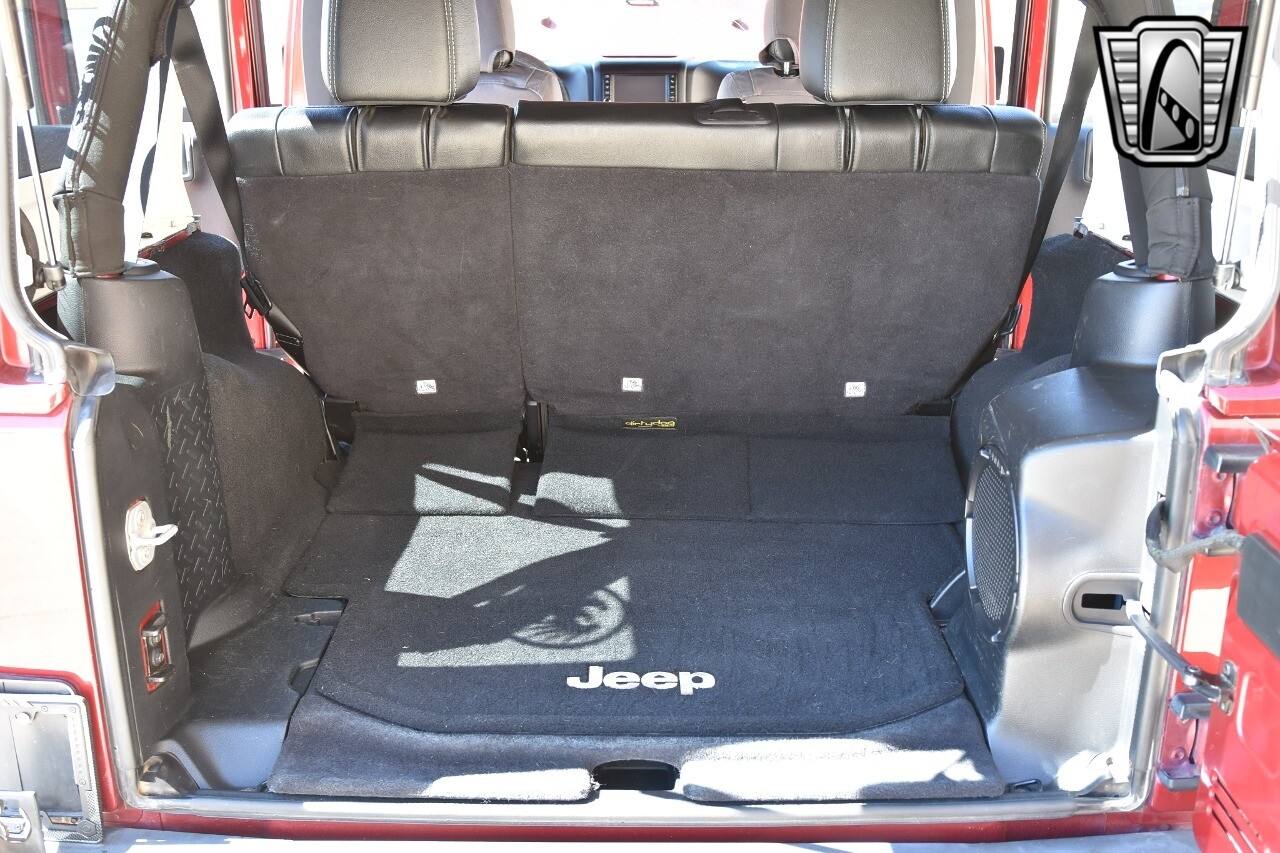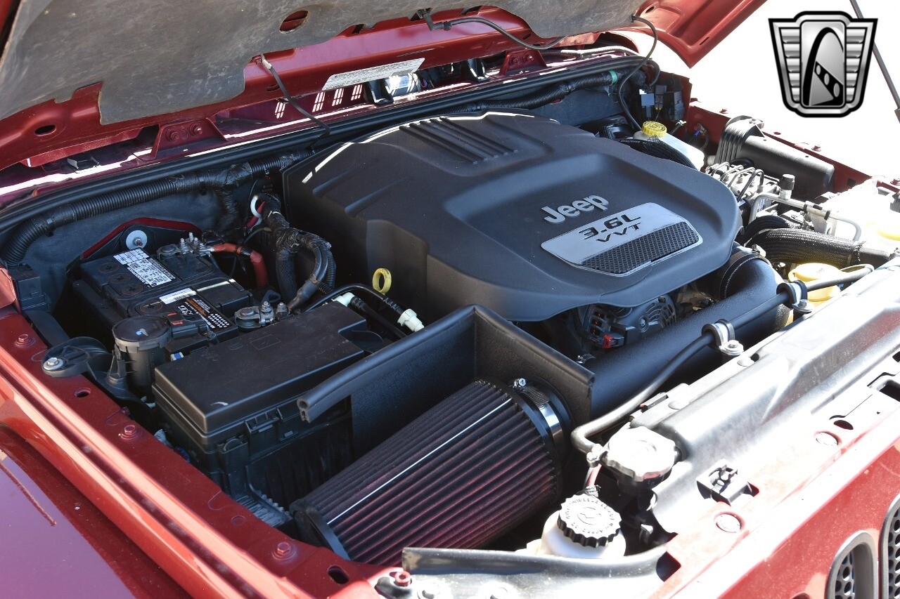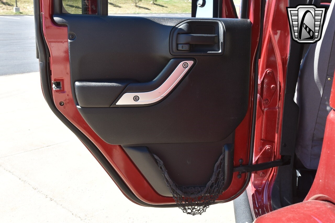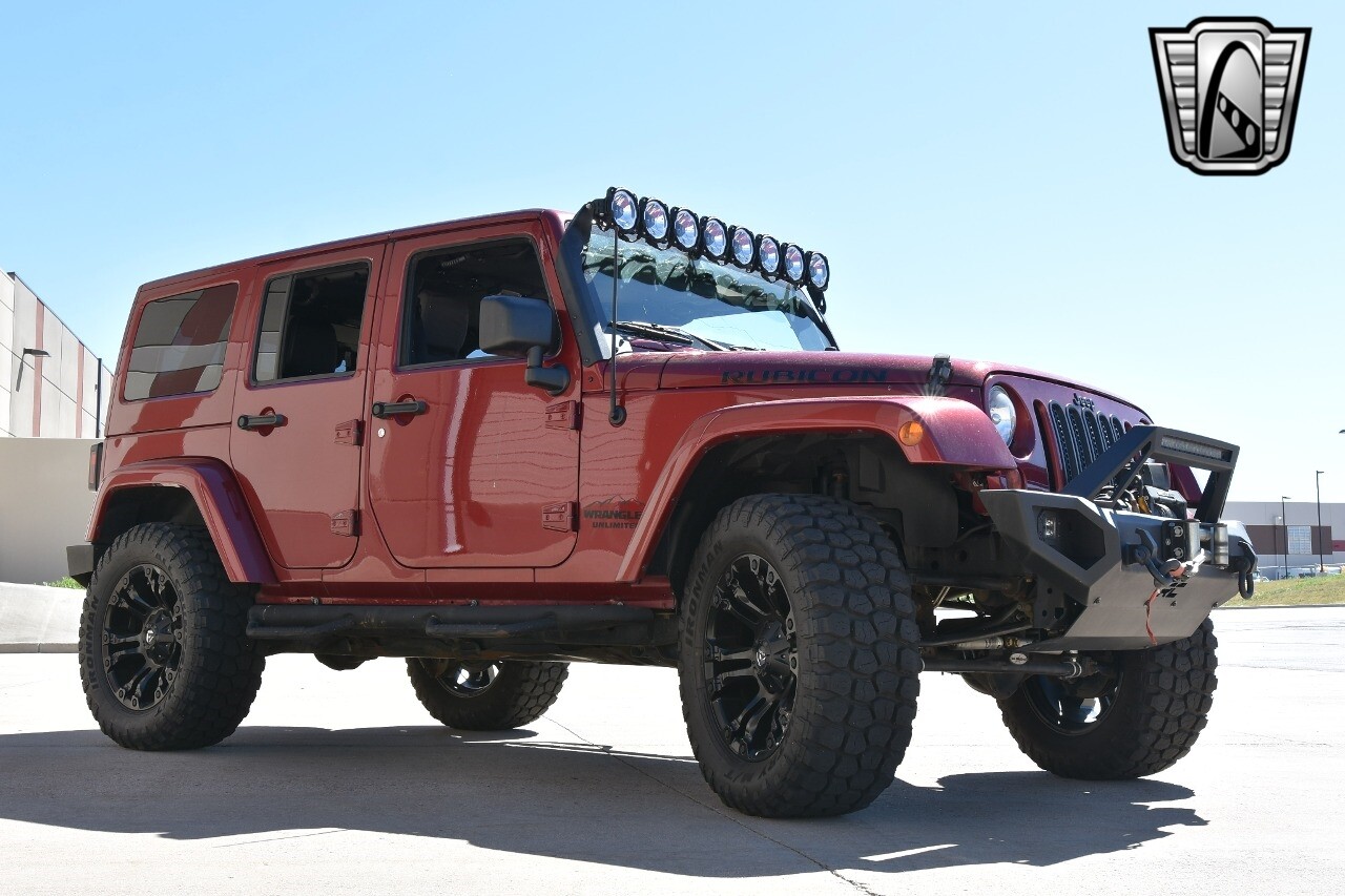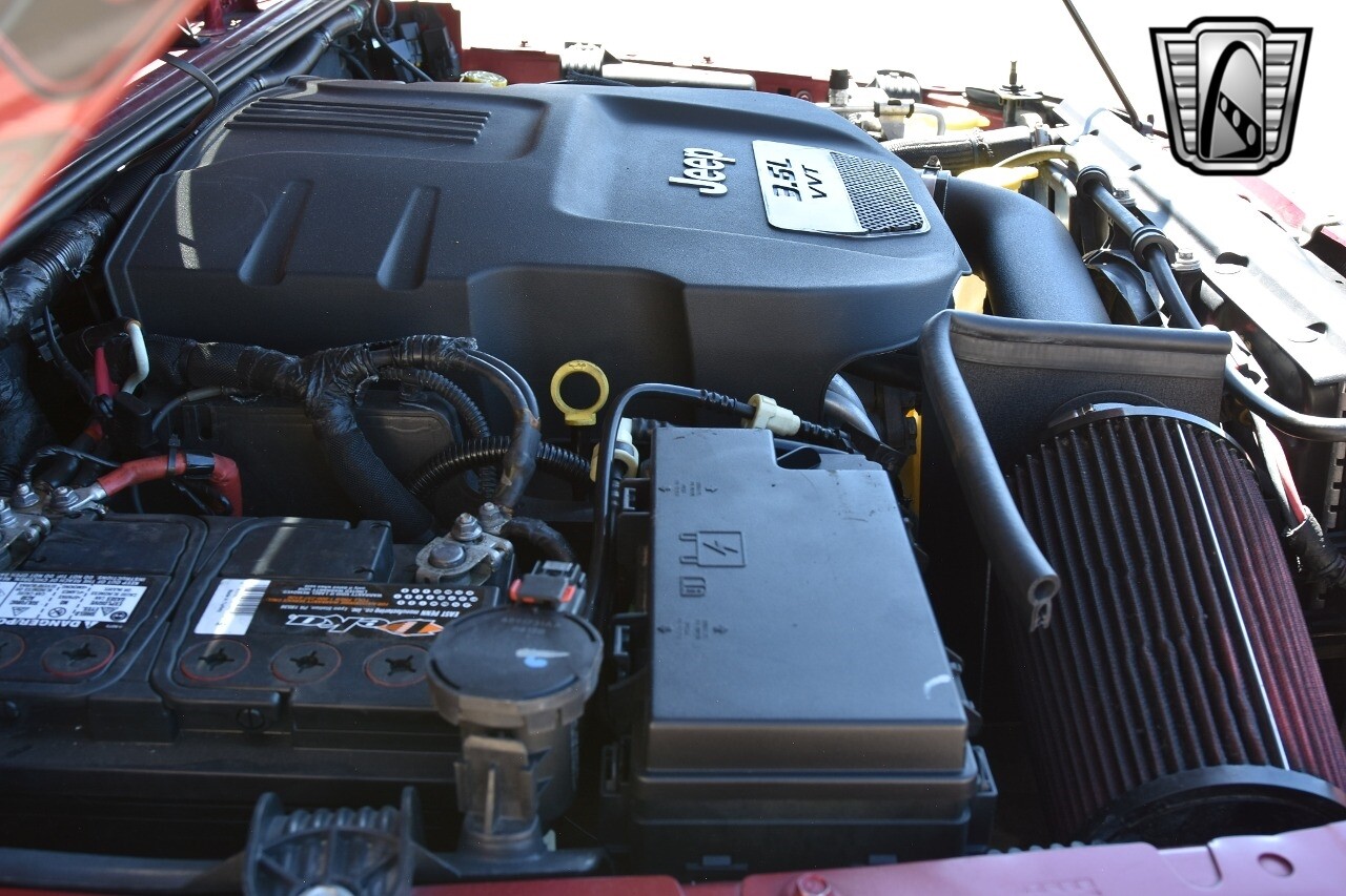Gateway Classic Cars of Denver Presents this 2012 Jeep Wrangler Unlimited Rubicon, a blend of rugged capability and luxury. This eye-catching vehicle comes in a vibrant red exterior color that is sure to turn heads wherever you go. The interior is just as impressive with its sleek black leather seats, offering both comfort and style.