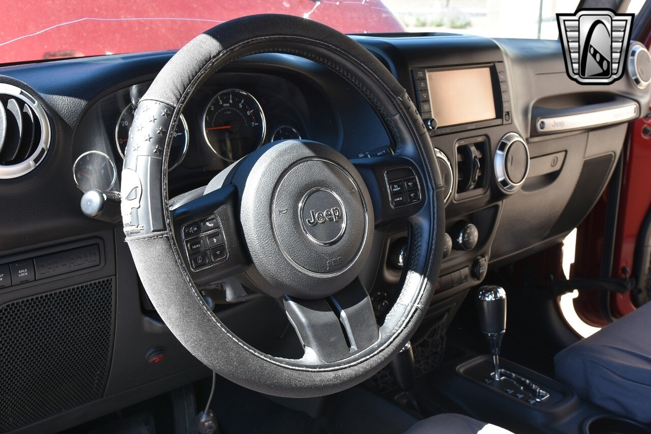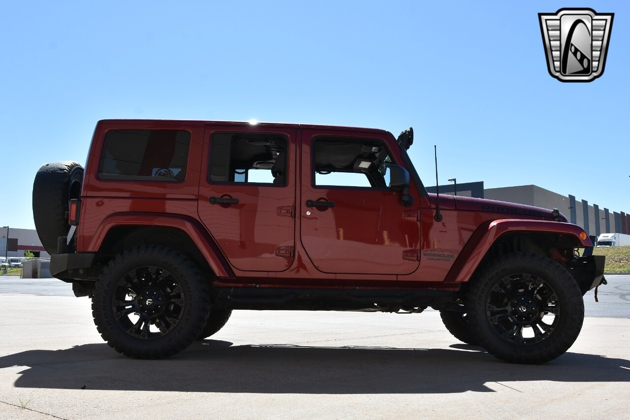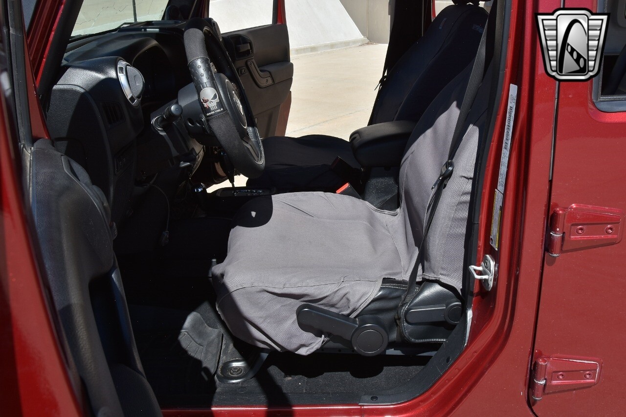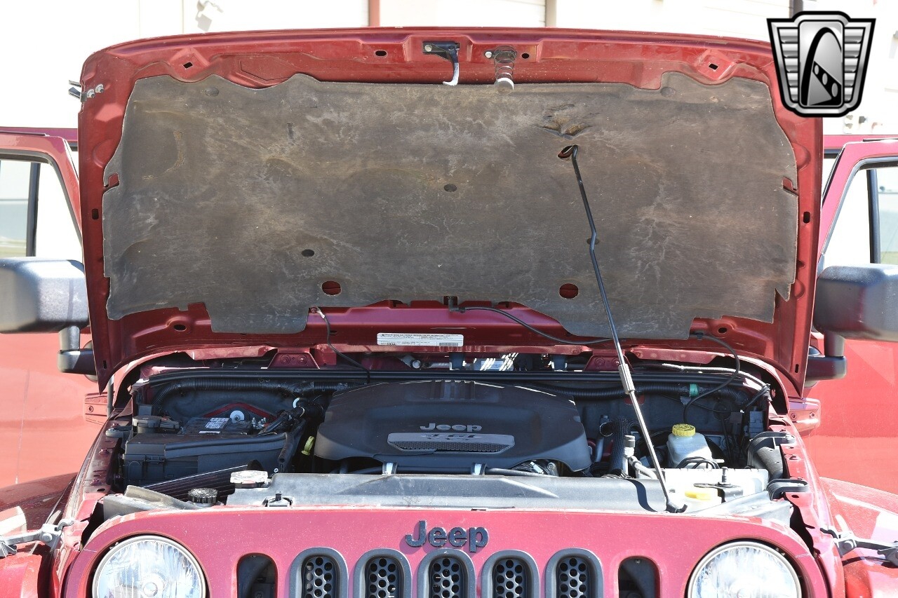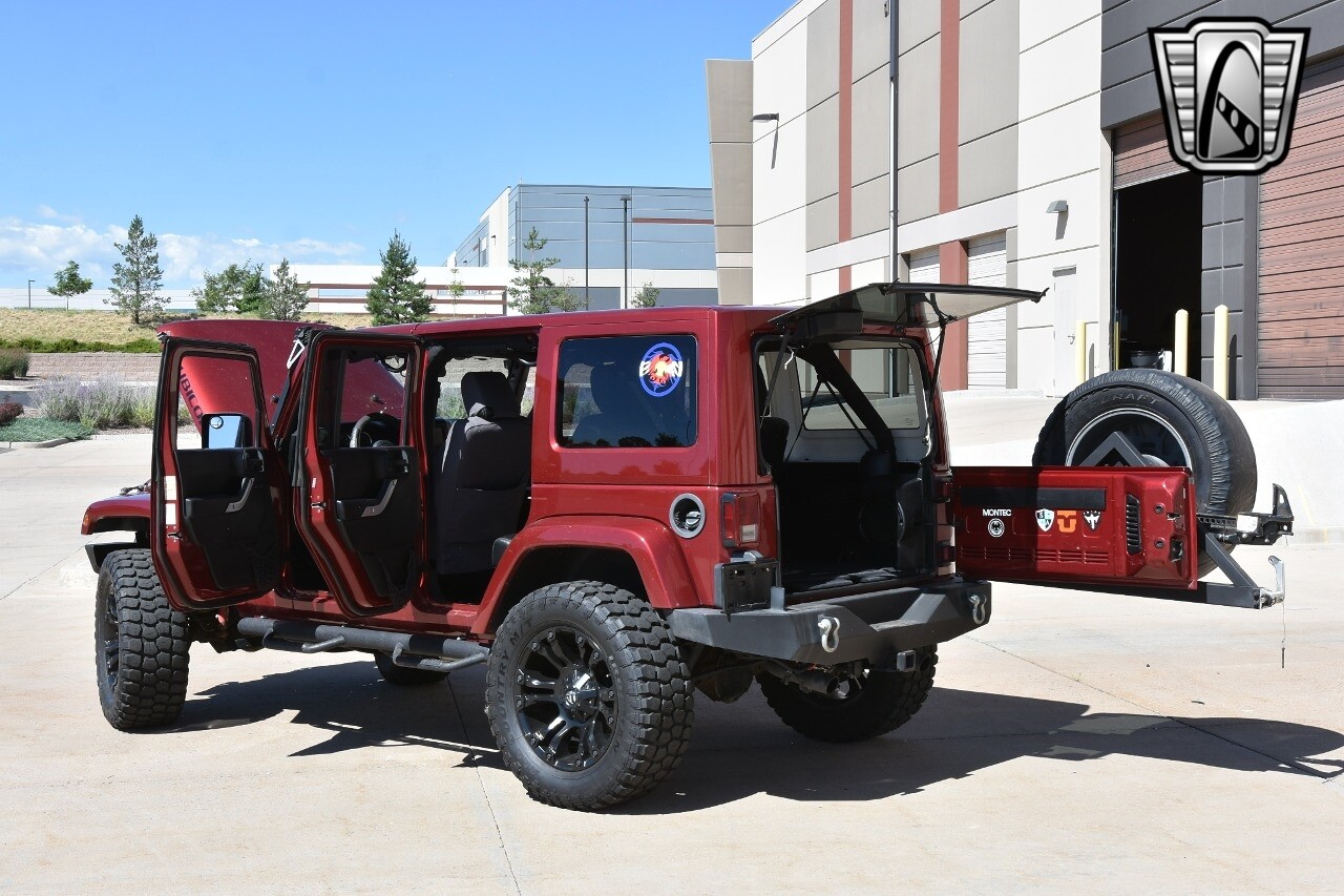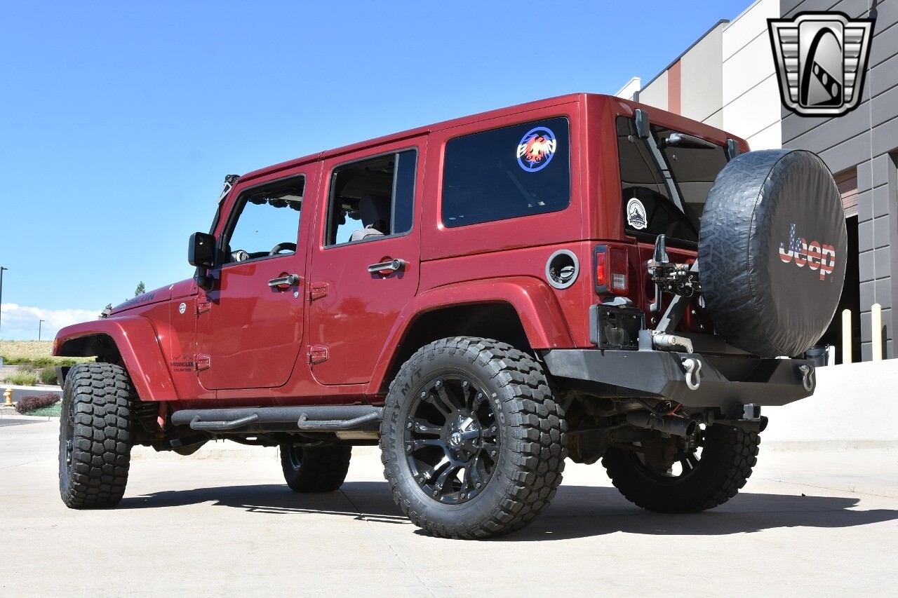 Gateway Classic Cars of Denver Presents this 2012 Jeep Wrangler Unlimited Rubicon, a blend of rugged capability and luxury. This eye-catching vehicle comes in a vibrant red exterior color that is sure to turn heads wherever you go. The interior is just as impressive with its sleek black leather seats, offering both comfort and style.