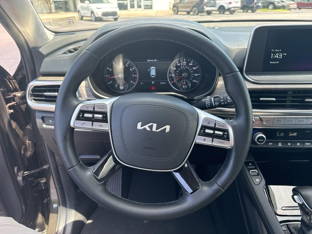 The leather seats in the Kia Telluride are a must for buyers looking for comfort, durability, and style. Bluetooth technology is built into this Kia Telluride, keeping your hands on the steering wheel and your focus on the road. Our dealership has already run the CARFAX report and it is clean. A clean CARFAX is a great asset for resale value in the future. This unit utilizes collision avoidance to enhance safety by automatically detecting and evading potential accidents. The vehicle's Lane Departure Warning keeps you safe by alerting you when you drift from your lane. It is pure luxury with a heated steering wheel. See what's behind you with the back up camera on it. This mid-size suv comes equipped with Android Auto for seamless smartphone integration on the road. The installed navigation system will keep you on the right path. Apple CarPlay: Seamless smartphone integration for this 2022 Kia Telluride - stay connected and entertained on the go!