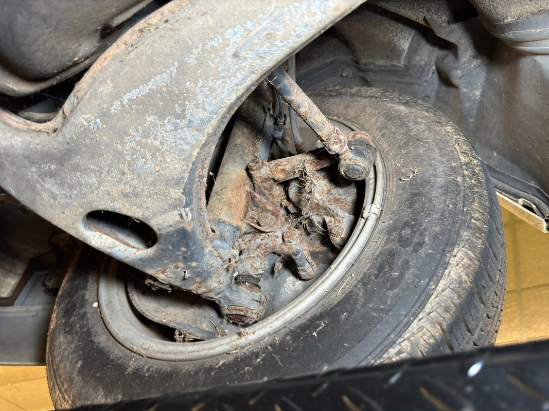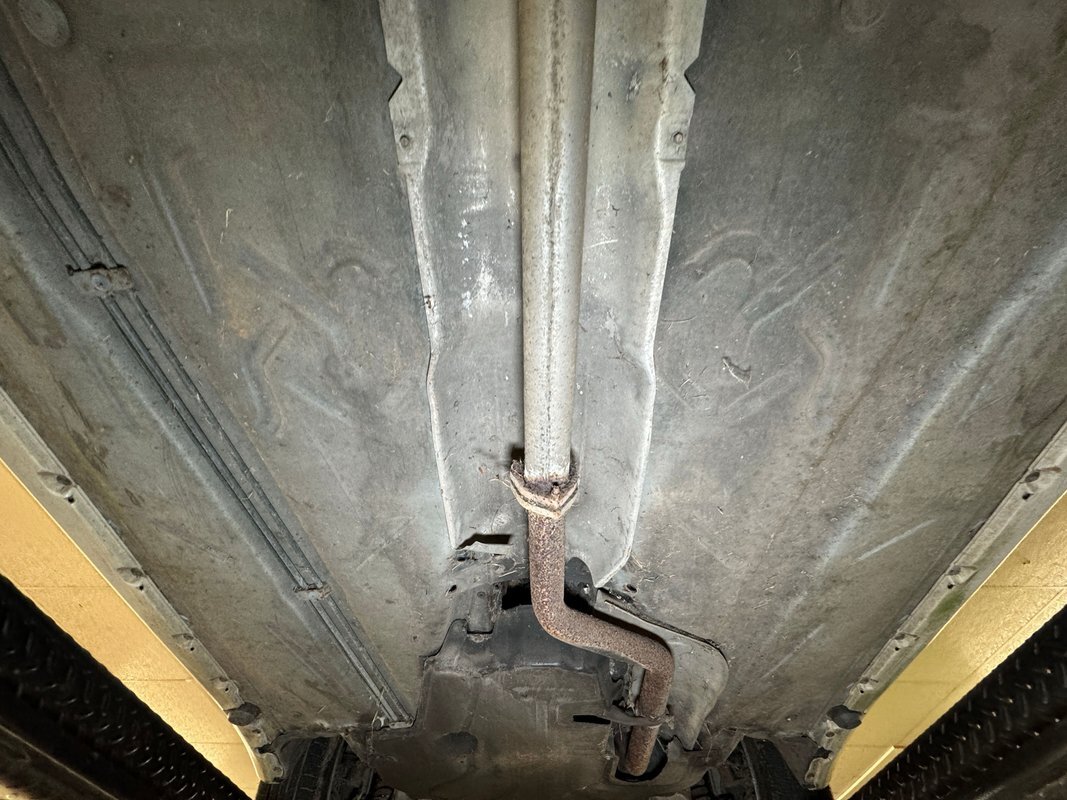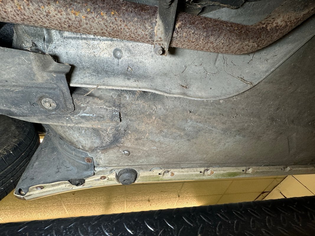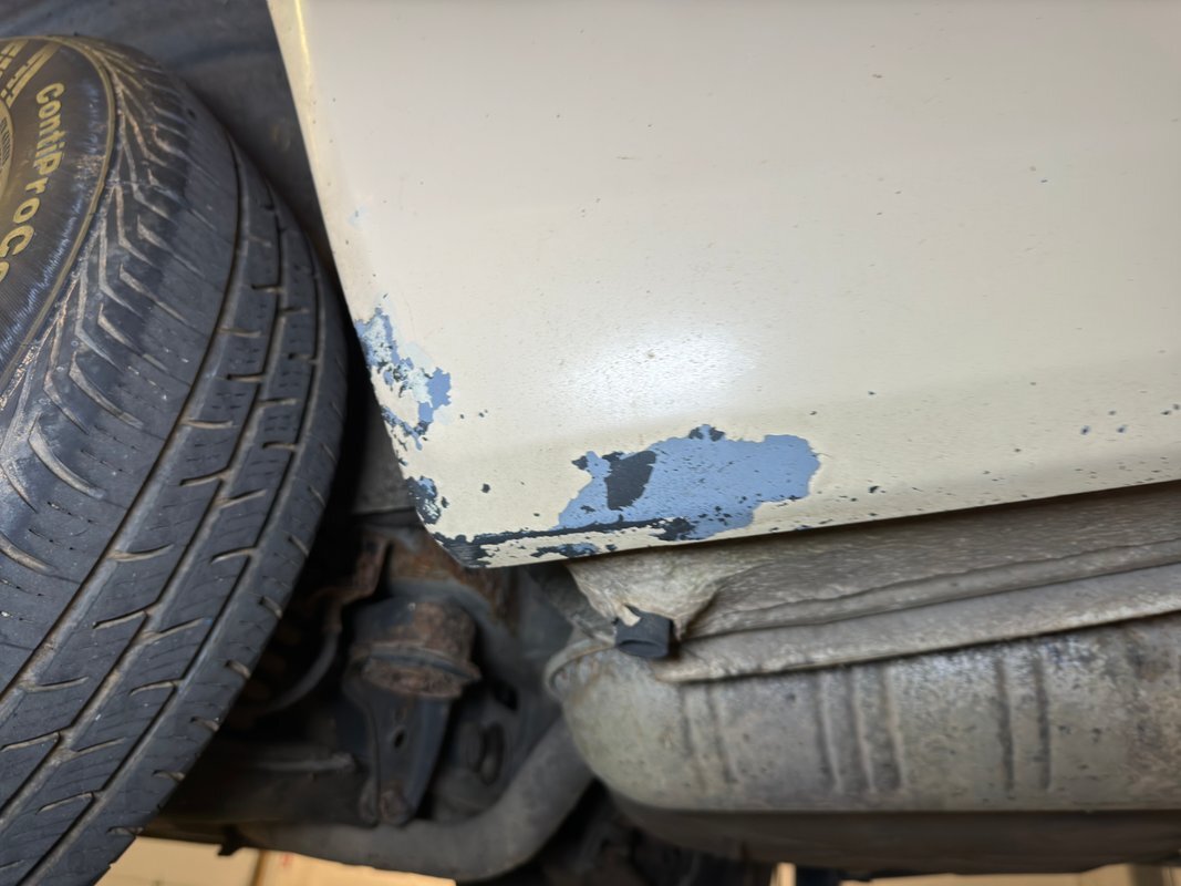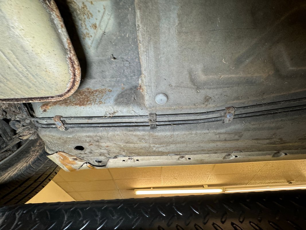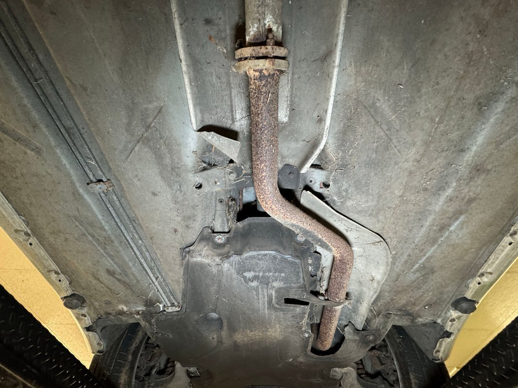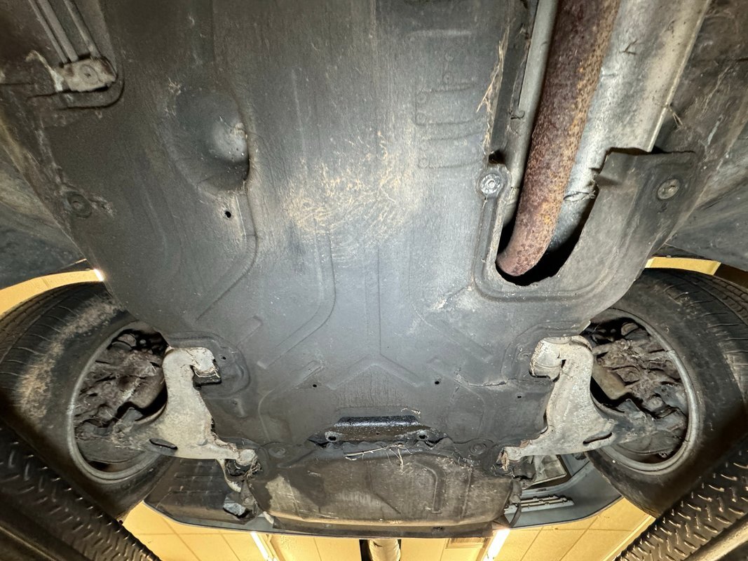 Belly pans and panels obscure much of the underside but what we can see is fully expected. Plenty of advanced surface rust and a lot of pitted rust as well. There's evidence of some oil up by the engine but putting it in perspective, we would say that the underside has held up as well as one would expect for an East coast car. Independent suspension is front and rear with MacPherson struts up front and coil springs in the rear.