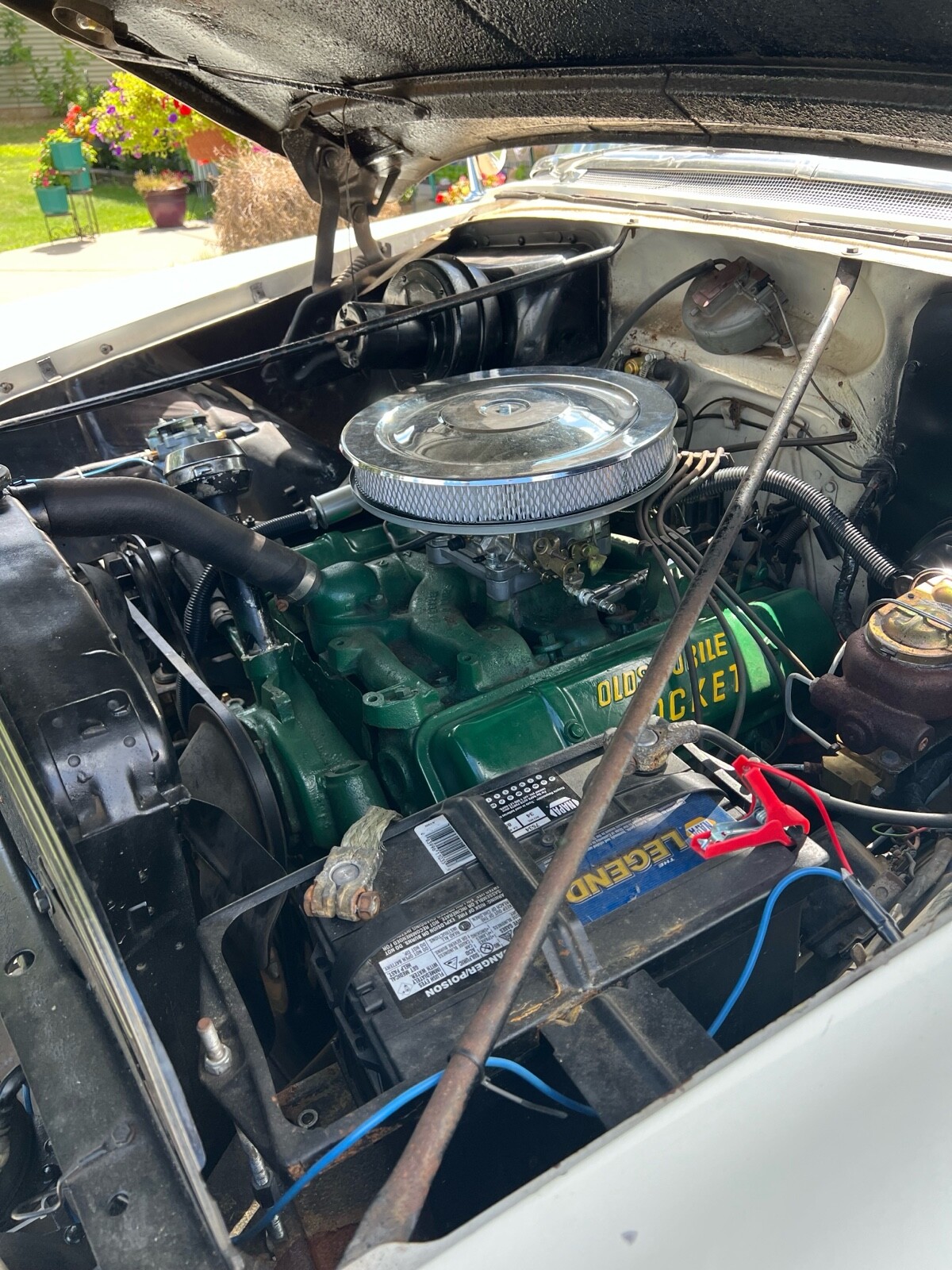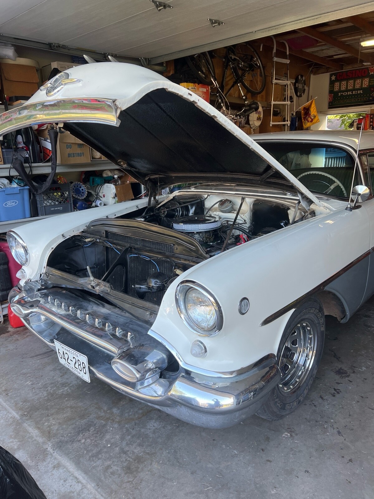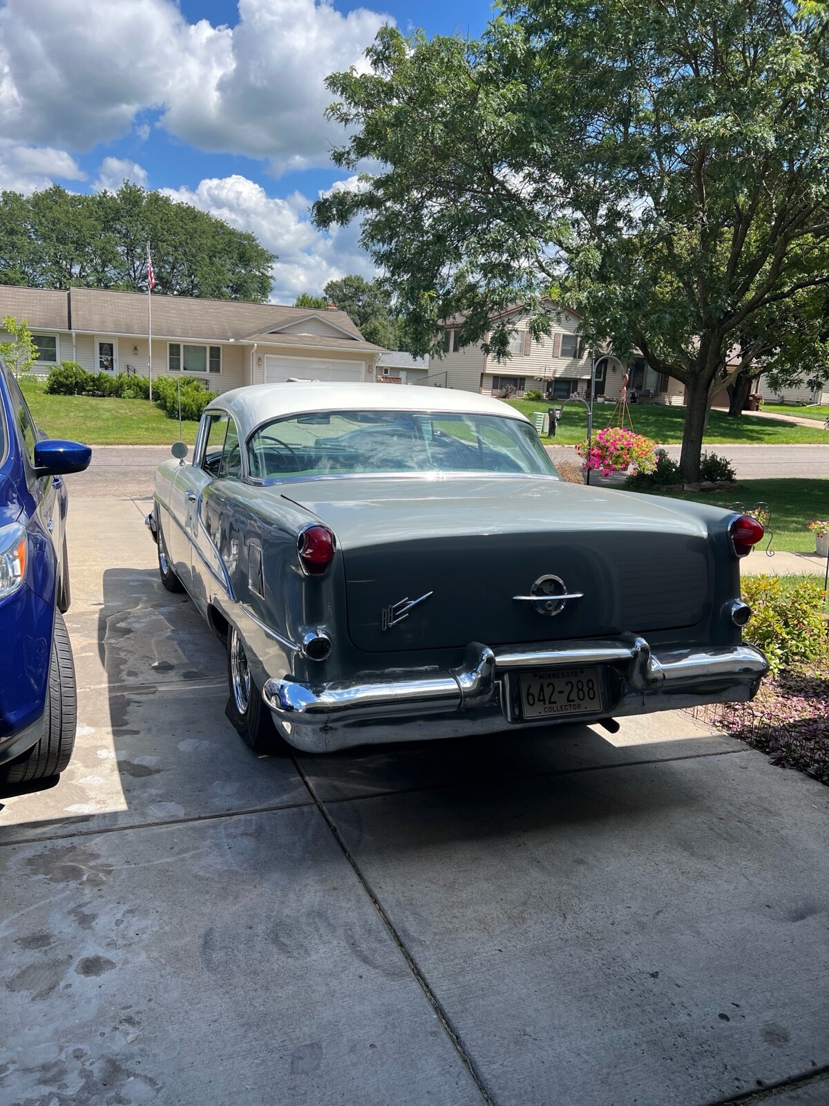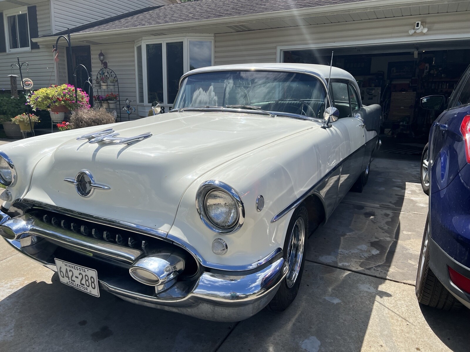 1955 olds 2dr hardtop originally from North Dakota very solid ,good paint nice original interior no tears ,very nice chrome and glass bumpers are nice original but not show quality comes with the original 324 engine and newer 650 cam edel Brock carb , new plugs oil change and fan belt , newer battery ,told engine was rebuilt approximately 15 years ago from the previous owner of thirty years not driven much since.stored in doors has rust free frame,solid floors and truck body is very good condition ,few scratches through the years not a trailer queen but very presentable at cars shows with lots of compliments, comes with two sets of wheels one is custom wheels and the other is stock with good tires and hub caps and had good single exhaust system had manual steering and power drum brakes which stop on a dime