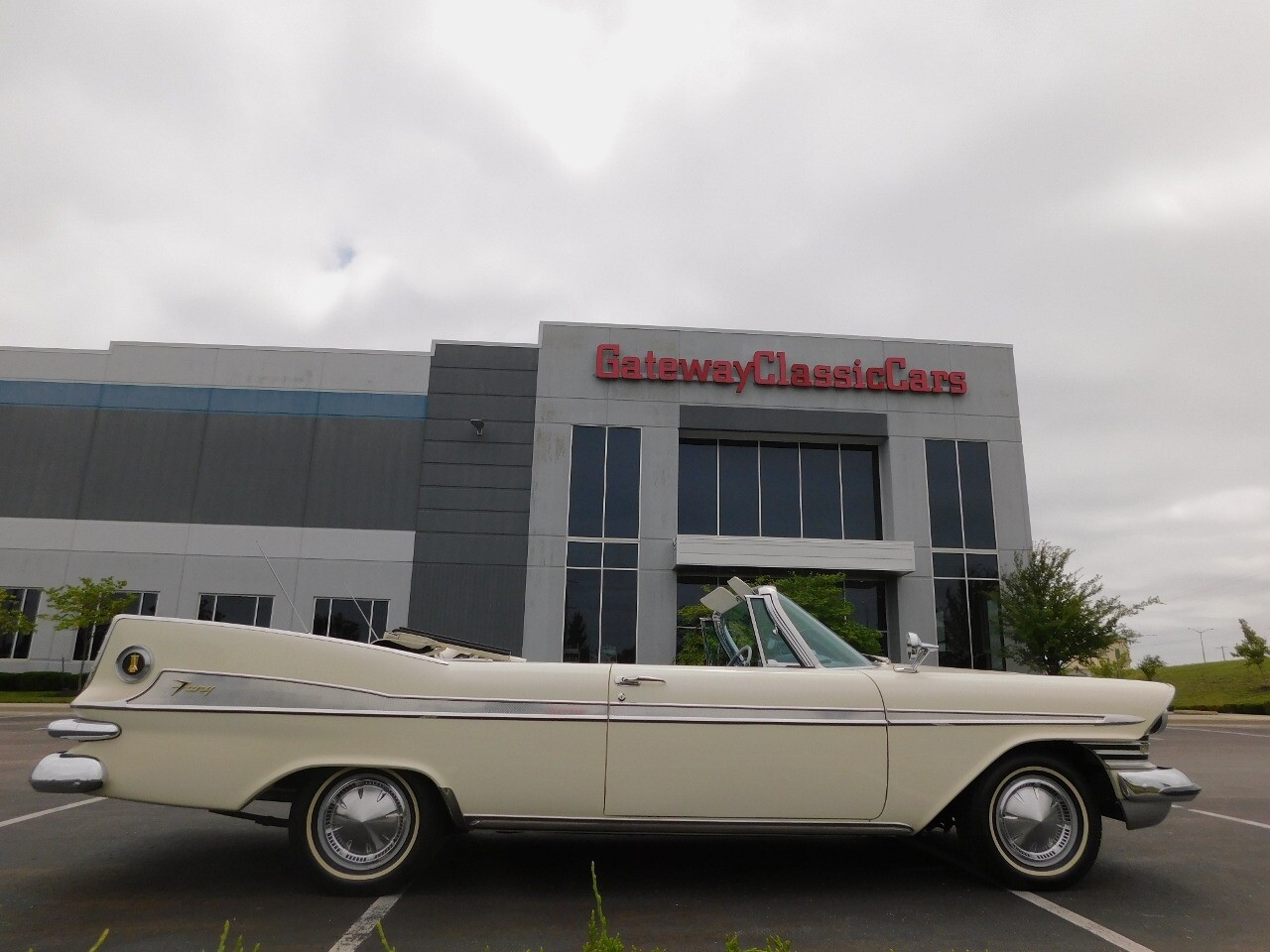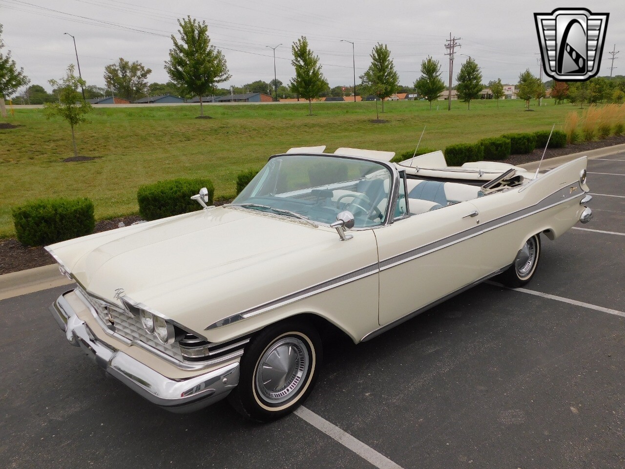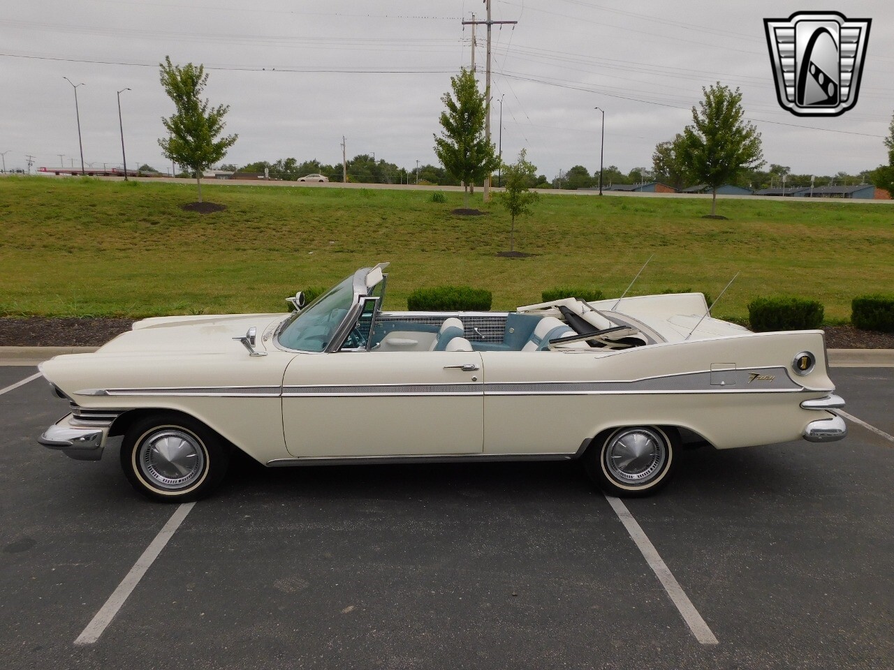Gateway Classic Cars of Kansas City is proud to digitally present this 1959 Plymouth Sport Fury Convertible, a classic embodiment of automotive design and engineering. This stunning vehicle boasts a pristine white exterior that uniquely complements its sophisticated blue and white interior, creating a striking visual appeal that is sure to turn heads wherever you go.