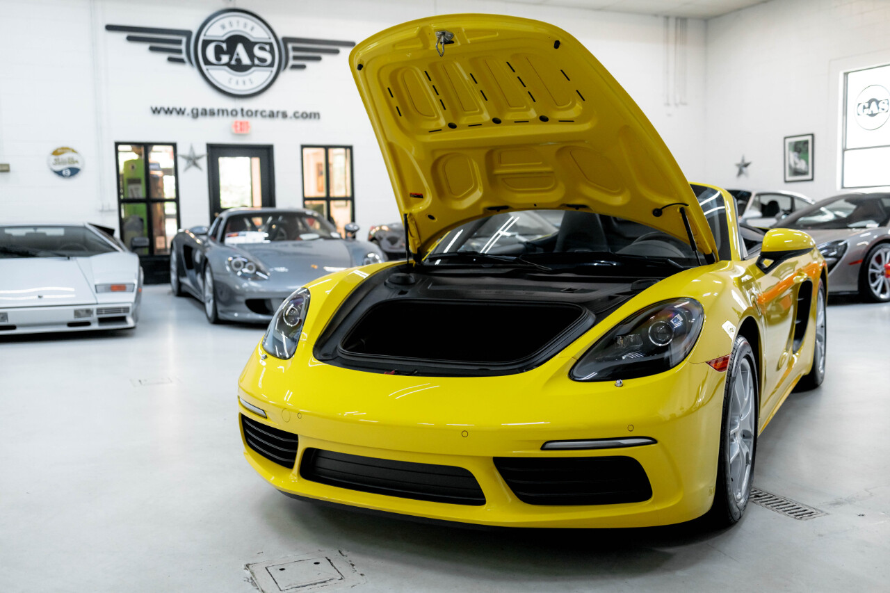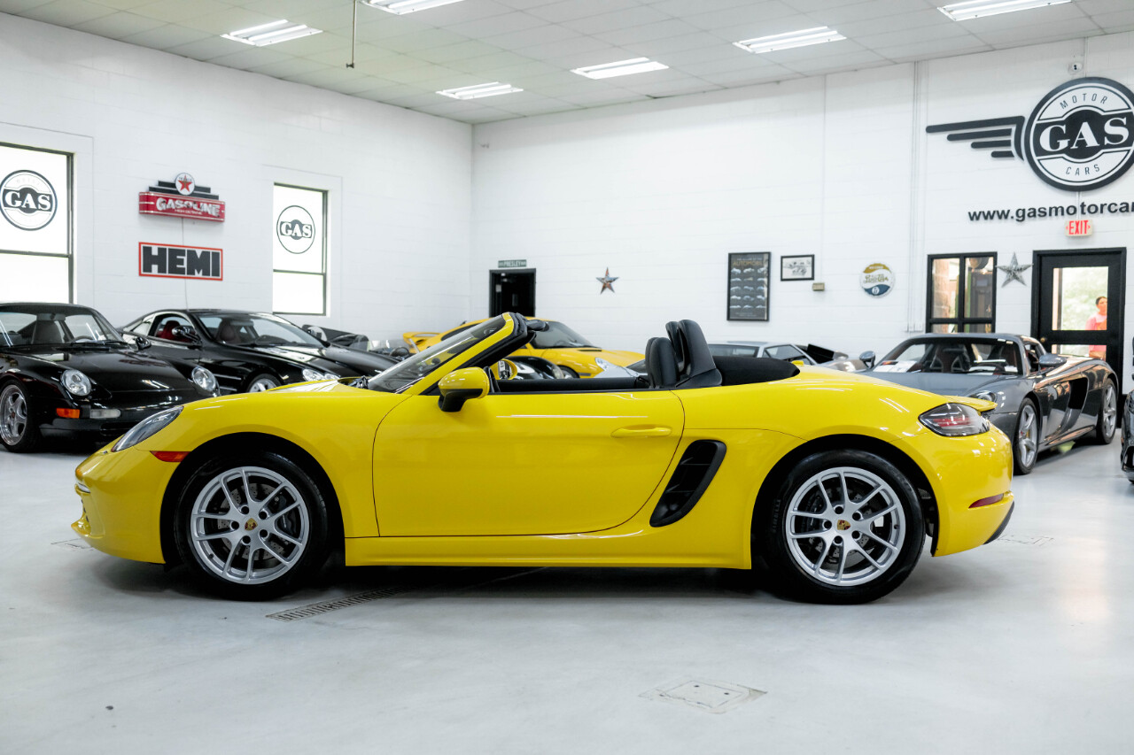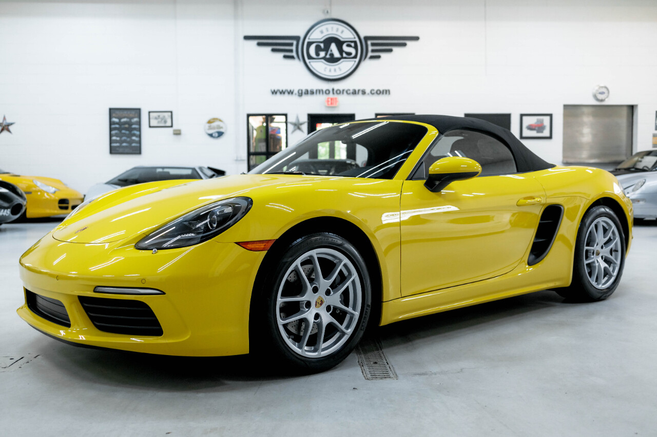 FULL HIGH RESOLUTION PHOTOS AND DETAILED DESCRIPTION ON YOU HAVE A VEHICLE YOU ARE LOOKING TO SELL, PLEASE CALL US AT 770-769-1398WE SHOW VEHICLES BY APPOINTMENT ONLY. PLEASE CALL TO SCHEDULE AN APPOINTMENT IN ORDER TO VIEW A LISTING IN PERSON.NEW ARRIVAL!! 1 OWNER!! QUALIFIES FOR CERTIFIED EXTENDED WARRANTY, PLEASE INQUIRE FOR MORE DETAILS! RACING YELLOW PORSCHE 718 BOXSTERWITH PPF ON FRONT CLIP!! STUNNING CAR INSIDE AND OUT; ALWAYS GARAGE KEPT. DEALER SERVICED. COMES WITH BOOKS, MANUALS, AND ORIGINAL WINDOW STICKER. $70,320 ORIGINAL MSRP!!EXTERIOR IS FINISHED IN RACING YELLOW WITH BLACK LEATHER INTERIOR AND A BLACK TOP.2.0L TURBOCHARGED BOXER 46-SPEED MANUAL TRANSMISSIONROADSTER TOP IN BLACK18 CAYMAN WHEELSWHEEL CENTER CAPS WITH COLORED PORSCHE CRESTHEATED AND VENTILATED FRONT SEATSGT SPORT STEERING WHEELSPORT TAILPIPES IN LEATHERAND MUCH MORE.GAS MOTORCARS IS A FAMILY OWNED AND OPERATED CAR DEALERSHIP LOCATED IN MARIETTA, GA. WE ONLY SELL VEHICLES OF THE HIGHEST QUALITY. WE SHIP VEHICLES WORLDWIDE AT THE BUYER'S EXPENSE. WE TAKE CONSIGNMENTS AS WELL AS TRADES.WE SHOW VEHICLES BY APPOINTMENT ONLY.PLEASE CALL AHEAD TO SCHEDULE A DATE AND TIME IN ORDER TO VIEW A LISTING IN PERSON.CONNECT WITH US ON INSTAGRAM @GASMOTORCARSIt is the customers sole responsibility to verify the existence and condition of any equipment listed. Neither the dealership nor DealerCarSearch is responsible for misprints on prices or equipment. It is the customers sole responsibility to verify the accuracy of the prices with the dealer, including the pricing for all added accessories. Visit Gas Motorcars online at to see more pictures of this vehicle or call us at770-769-1398 today to schedule your test drive.