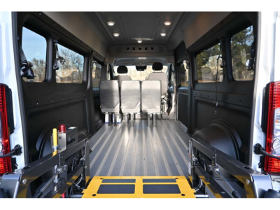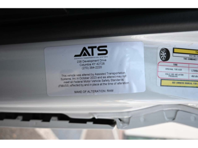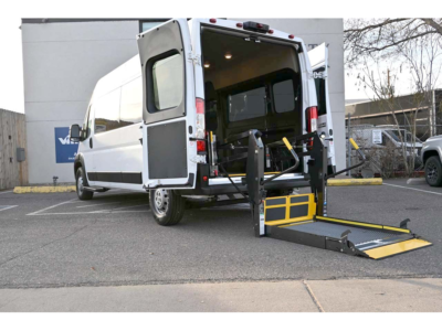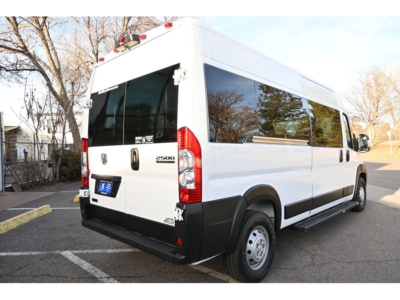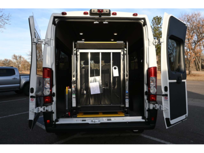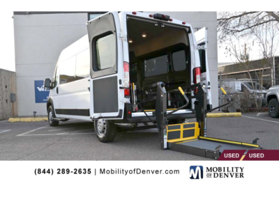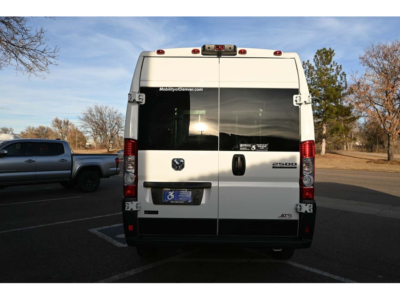 Door Opening Height: 66" and lift width: 34". 2023 Ram ProMaster 2500 159" WB High Roof ATS Promaster Fold Out Rear Entry Power Lift Van for Sale. Dodge Ram Promaster Full-Sized van has been fitted with a rear-load commercial 800lb capacity Braun Lift for your transportation needs with full warranty. This disability equipped handicap wheelchair accessible vehicle includes seating for: a Driver and Passenger seat up front, 3 fixed passenger seats, and up to three wheelchair positions. Configure with more seating with this customizable flex-flooring system. This vehicle includes a set of Q'Straint retractor wheelchair straps with L-Track floor anchors. This exceptionally handy ProMaster is a great people carrier and high volume wheelchair transporter and includes a kneeling feature. It also features; beautiful white exterior, gray cloth/vinyl interior, 16in steel wheels, like-new tires, Touchscreen AM/FM sound system with CD player and AUX port, hot Heat and Cold AC with additional rear system and separate controls, added dome ceiling lights, power windows, mirrors, and locks, keyless remote, cruise control, rear barn doors, front and side-curtain airbags, anti-lock brakes, traction and stability control, active seat belts, rear back-up camera. smooth and efficient 3.6L 6-cylinder Chrysler motor with front wheel drive, and much more. This vehicle is currently available for sale at Mobility of Denver, located at: 2311 S Platte River Drive, Denver CO 80223. We don't charge a Dealer Handling Fee and are now your mobility one-stop-shop. Just give us a call as we offer it all: sales, service, parts, and rentals. Open M-F 9am - 6pm. Sat by appt. Call 303-351-7379