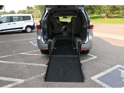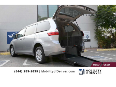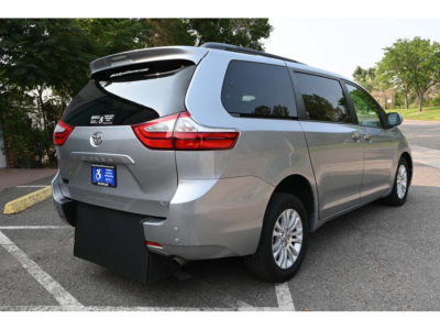 Door Opening Height: 56" and width: 34". 2016 Toyota Sienna XLE ATS Manual Rear Entry Ramp van for sale. Built by ATS Conversions, this disability equipped handicap wheelchair accessible ramp van was designed with simple & easy to use in mind. ADA compliant 56 inch height clearance rear entry, low maintenance durable no-skid ramp with counter balance struts, and long channel cut lowered floor. Q'Straint manual tie-down straps and floor rails are included throughout. The van is in good shape overall, with some scrapes on the exterior doors and bumper. This XLE model Sienna also comes packed with great features from Toyota: beautiful silver exterior, gray leather interior, Alloy Wheels, tires have 70% tread life left, 3-Zone Climate Control, front step flares, 4.2in LCD Display, AM/FM/CD/Satellite system with Bluetooth, AUX port, USB ports, power windows, mirrors, and locks, key-less remote, and stability control. Front, side and overhead air bags. 4-wheel ABS system, dual power rear doors, spare tire, smooth and efficient 3.5L 6-cylinder Toyota motor with front wheel drive, and much more. This vehicle is currently available for sale at Mobility of Denver, located at: 2311 S Platte River Drive, Denver CO 80223. We don't charge a Dealer Handling Fee and are now your mobility one-stop-shop. Just give us a call as we offer it all: sales, service, parts, and rentals. Open M-F 9am - 6pm. Sat by appt. Call 303-351-7904