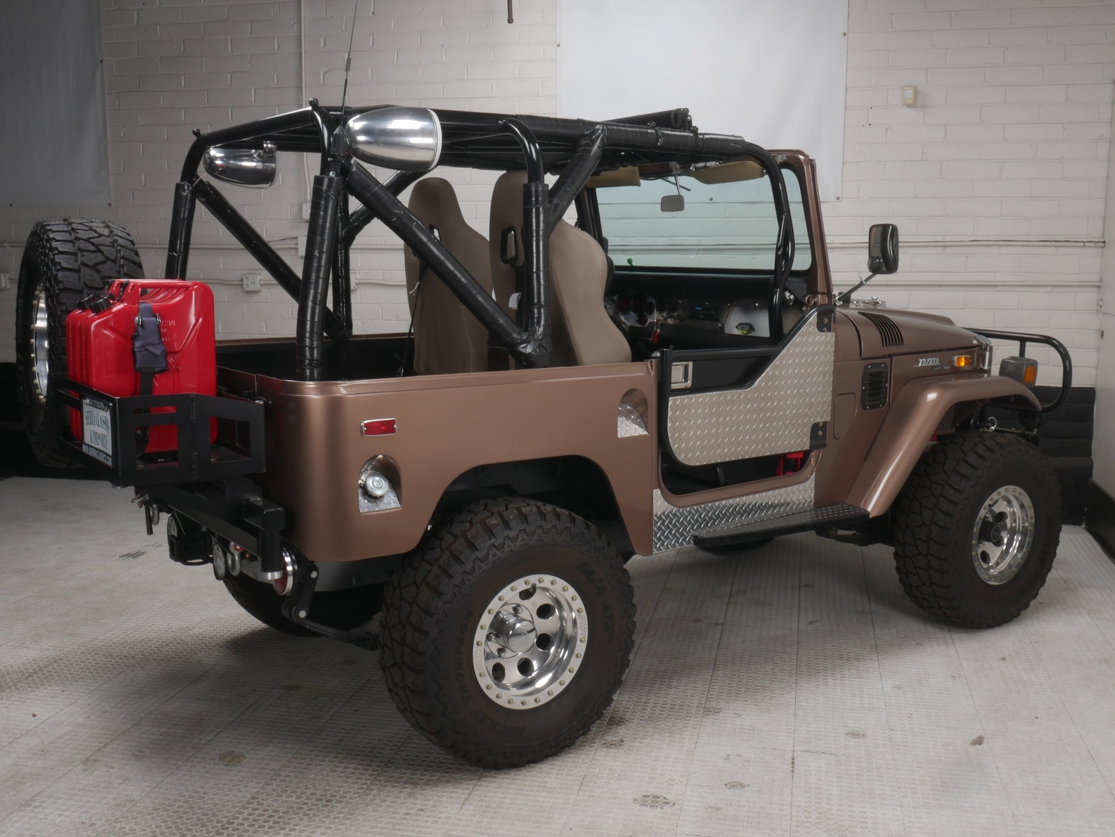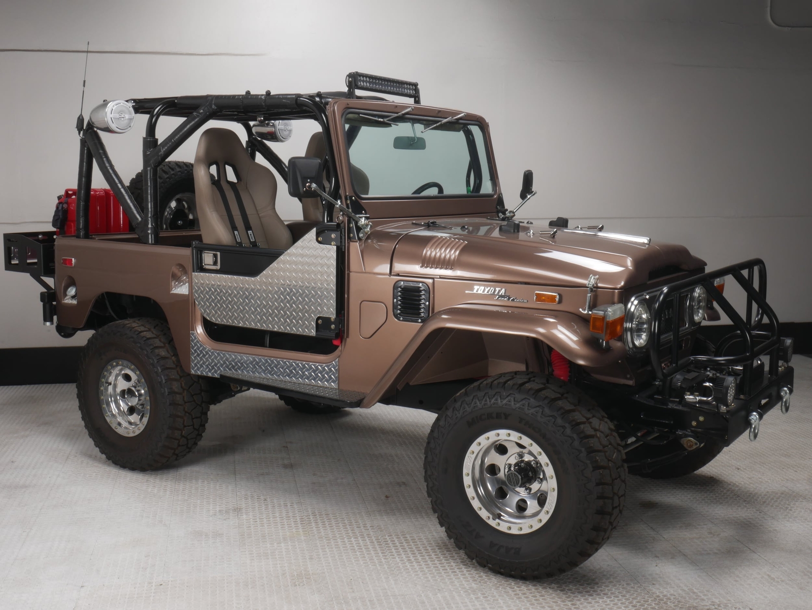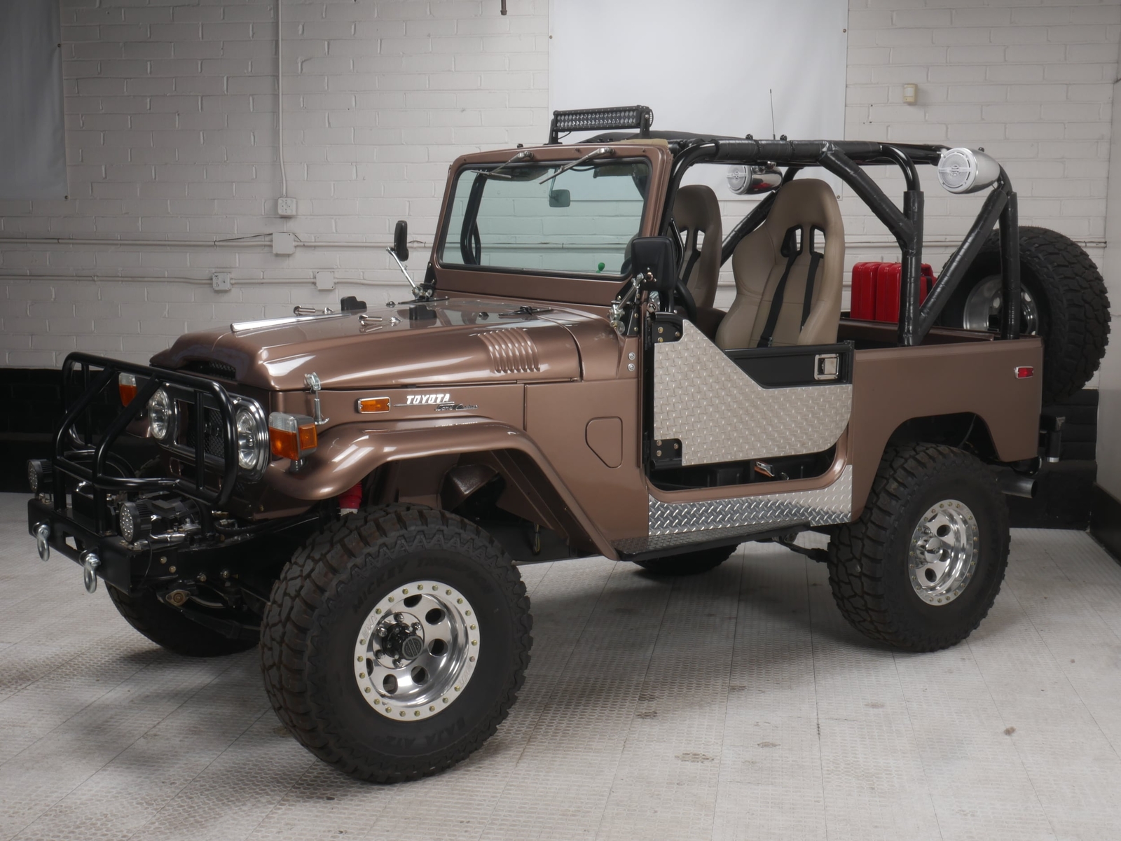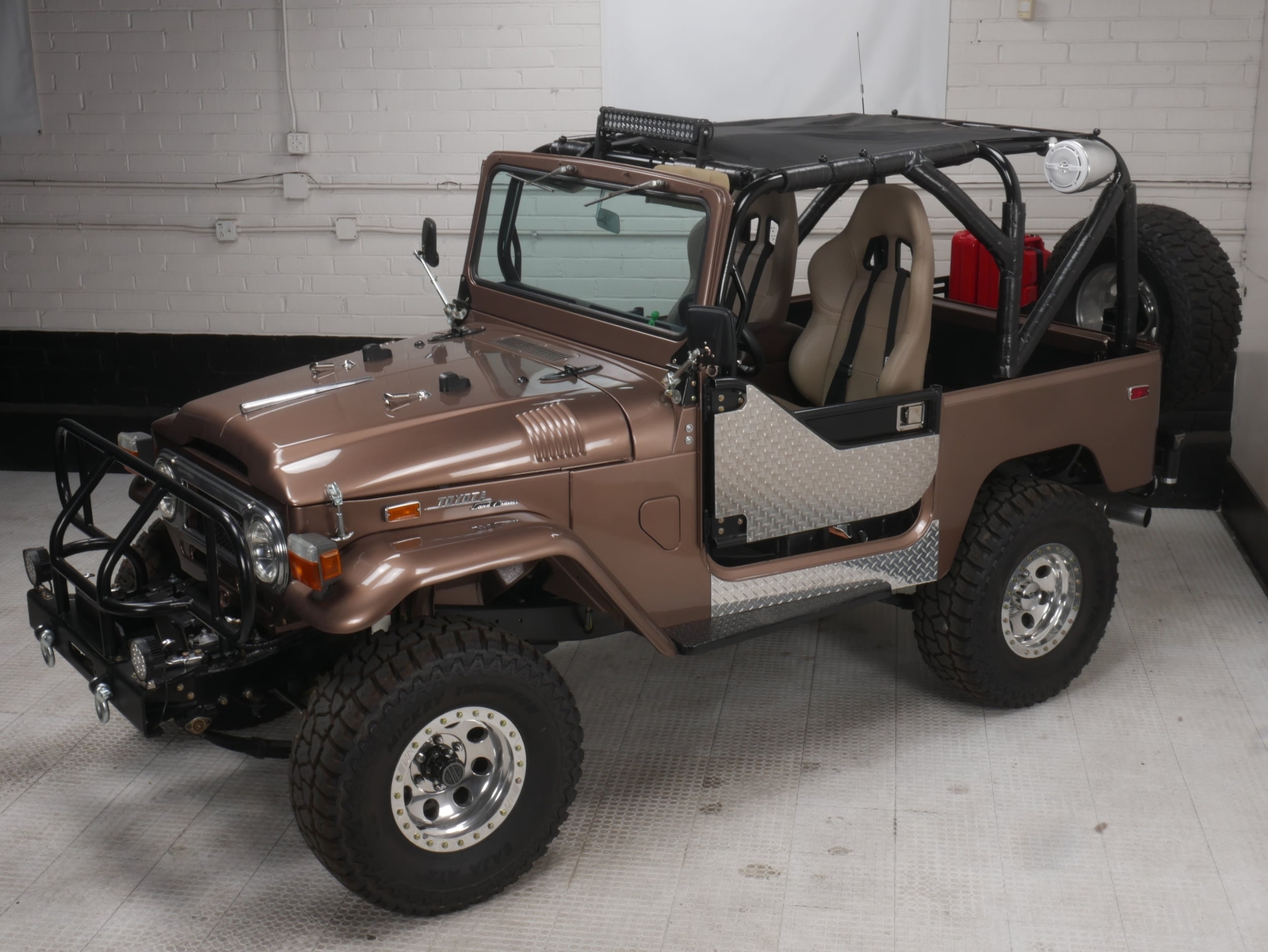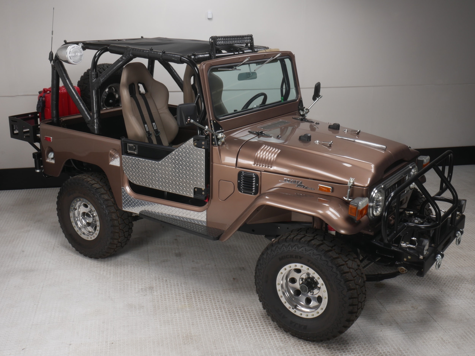 1970 Toyota FJ40 SBC 350 from a 1987 GMC 1 ton Edelbrock Performer Intake Edelbrock Quadra Jet 795cfm carb (#1904) Aluminum 4 core radiator Flex-a-lite 16 3000cfm puller electric fan Nickel Plate dHeaders 700R4 Transmission with cooler and fan New Orion 3 speed transfer case w Granny low (installed 40 miles ago, 2023) Saginaw Power Steering Shackle Reversal 2.5 Lift Wilwood Disc Brakes front and rear Auburn Gear Limited Slip rear end (installed 40 miles ago, 2023) New rear axle bearings and seals (installed 40 miles ago, 2023) Mickey Thompson 15 Aluminum Wheels Mickey Thompson 33 Baja ATZ tires Rancho 9000 shocks I-did-it tilt steering column Cyberdyne digital dash instruments Sony Marine stereo and bullet speakers LED front and rear driving/fog/offroad lights Bucket Seats 4 way offroad seatbelts/harnesses Air Horn Metal Tech Custom family roll cage mounted to the frame Bikini Top Custom Tube/Aluminum Diamond Plate half doors Custom Center Console Man-a-fre rear tire carrier/cooler/jerrycans/bumper, hitch 445 miles on engine and transmission All receipts for restoration since 1996 totaling over $45k