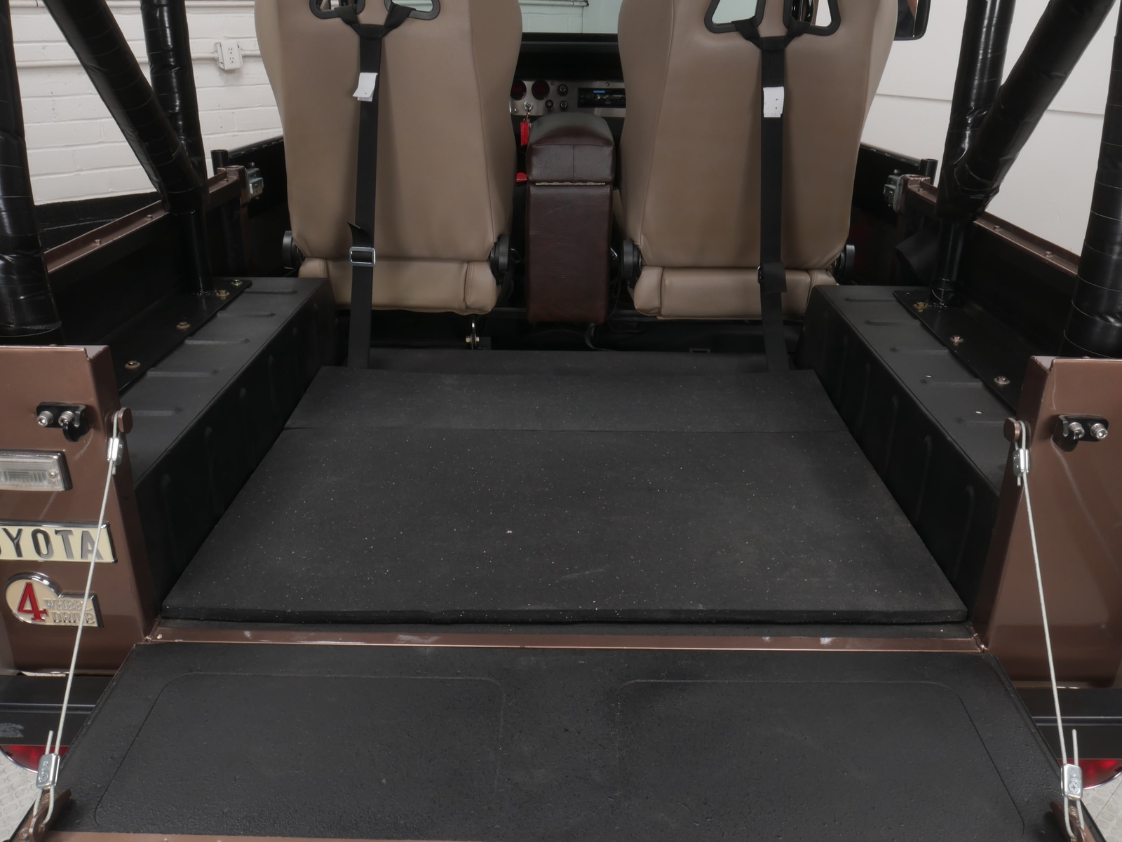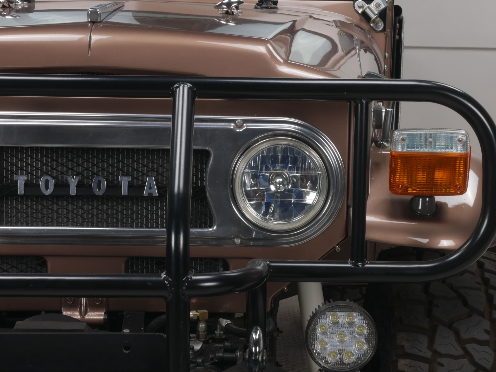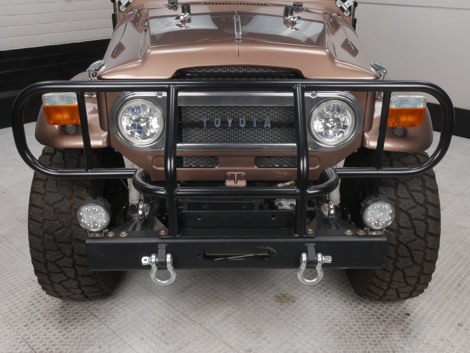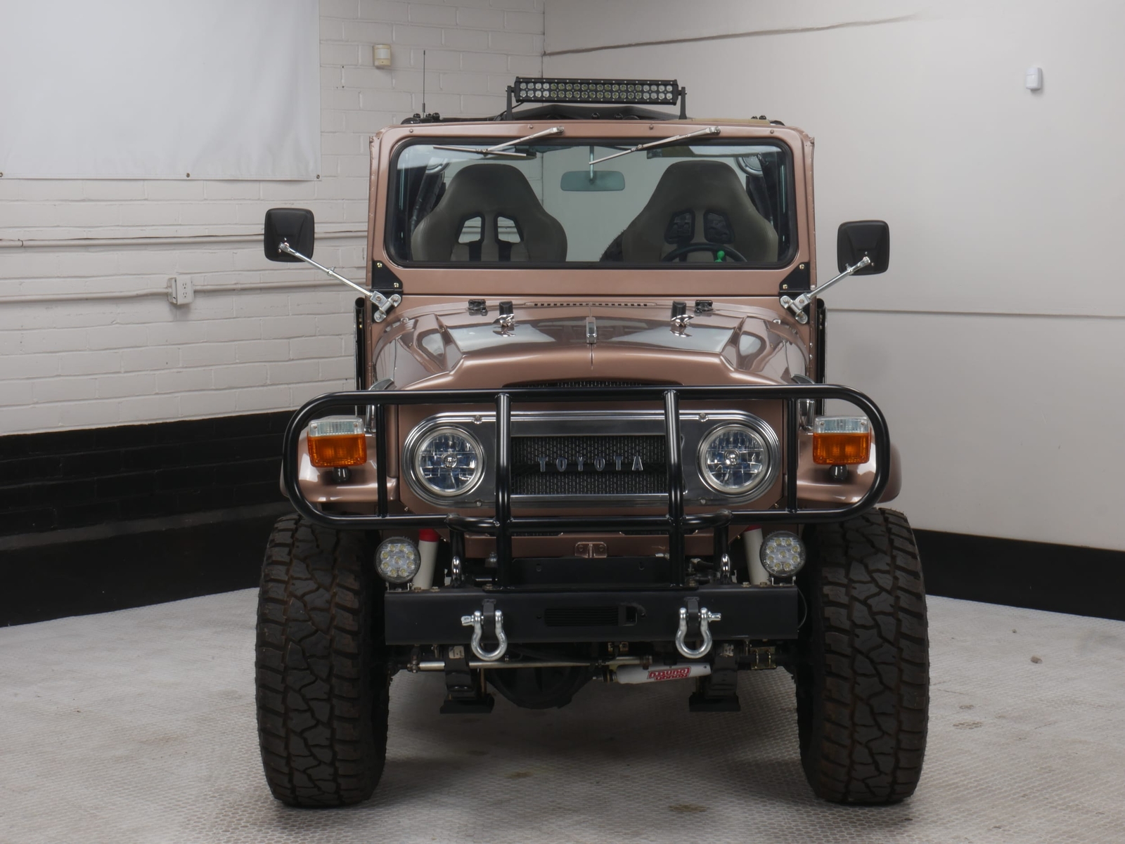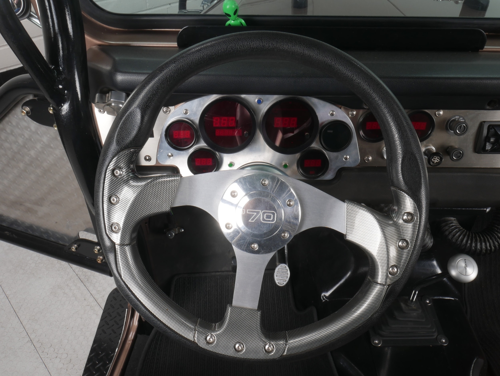 1970 Toyota FJ40 SBC 350 from a 1987 GMC 1 ton Edelbrock Performer Intake Edelbrock Quadra Jet 795cfm carb (#1904) Aluminum 4 core radiator Flex-a-lite 16 3000cfm puller electric fan Nickel Plate dHeaders 700R4 Transmission with cooler and fan New Orion 3 speed transfer case w Granny low (installed 40 miles ago, 2023) Saginaw Power Steering Shackle Reversal 2.5 Lift Wilwood Disc Brakes front and rear Auburn Gear Limited Slip rear end (installed 40 miles ago, 2023) New rear axle bearings and seals (installed 40 miles ago, 2023) Mickey Thompson 15 Aluminum Wheels Mickey Thompson 33 Baja ATZ tires Rancho 9000 shocks I-did-it tilt steering column Cyberdyne digital dash instruments Sony Marine stereo and bullet speakers LED front and rear driving/fog/offroad lights Bucket Seats 4 way offroad seatbelts/harnesses Air Horn Metal Tech Custom family roll cage mounted to the frame Bikini Top Custom Tube/Aluminum Diamond Plate half doors Custom Center Console Man-a-fre rear tire carrier/cooler/jerrycans/bumper, hitch 445 miles on engine and transmission All receipts for restoration since 1996 totaling over $45k