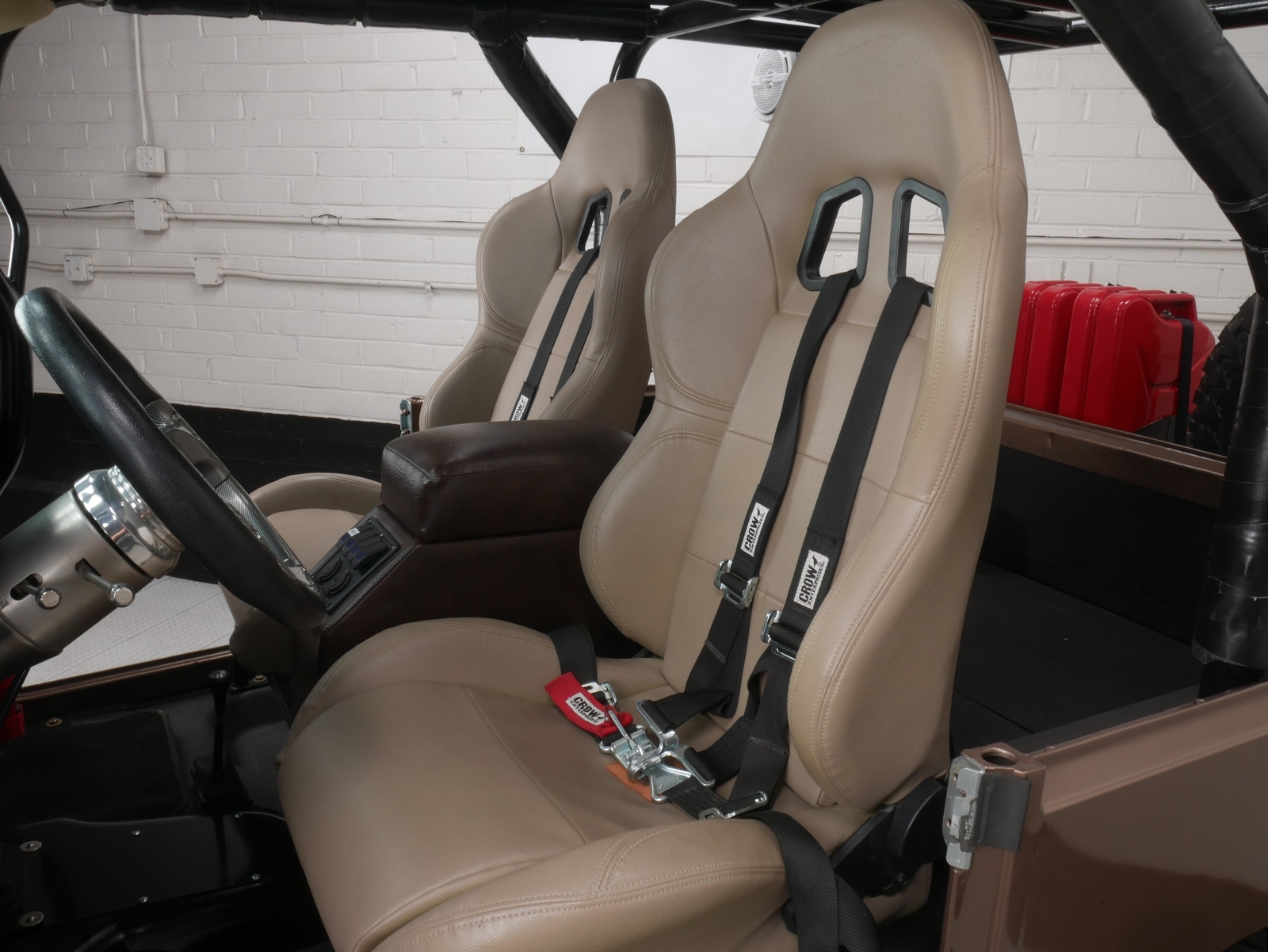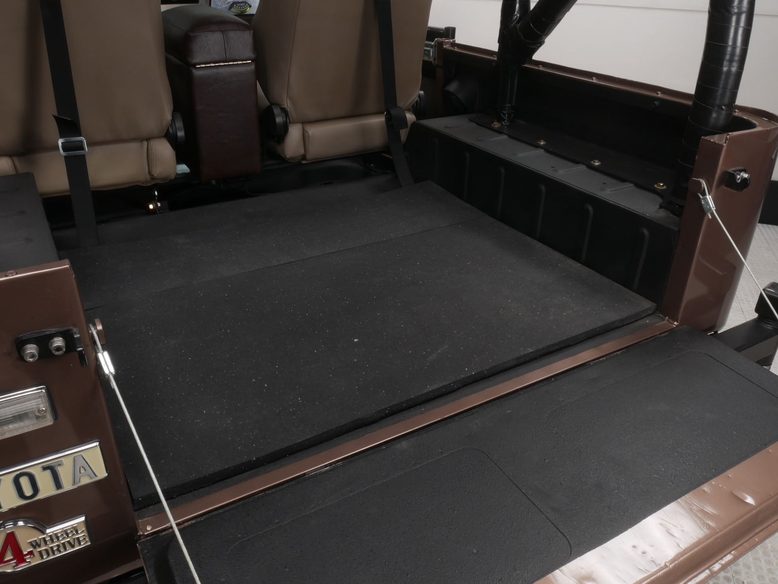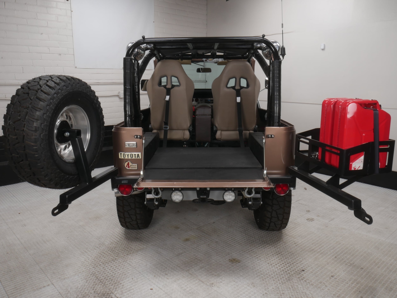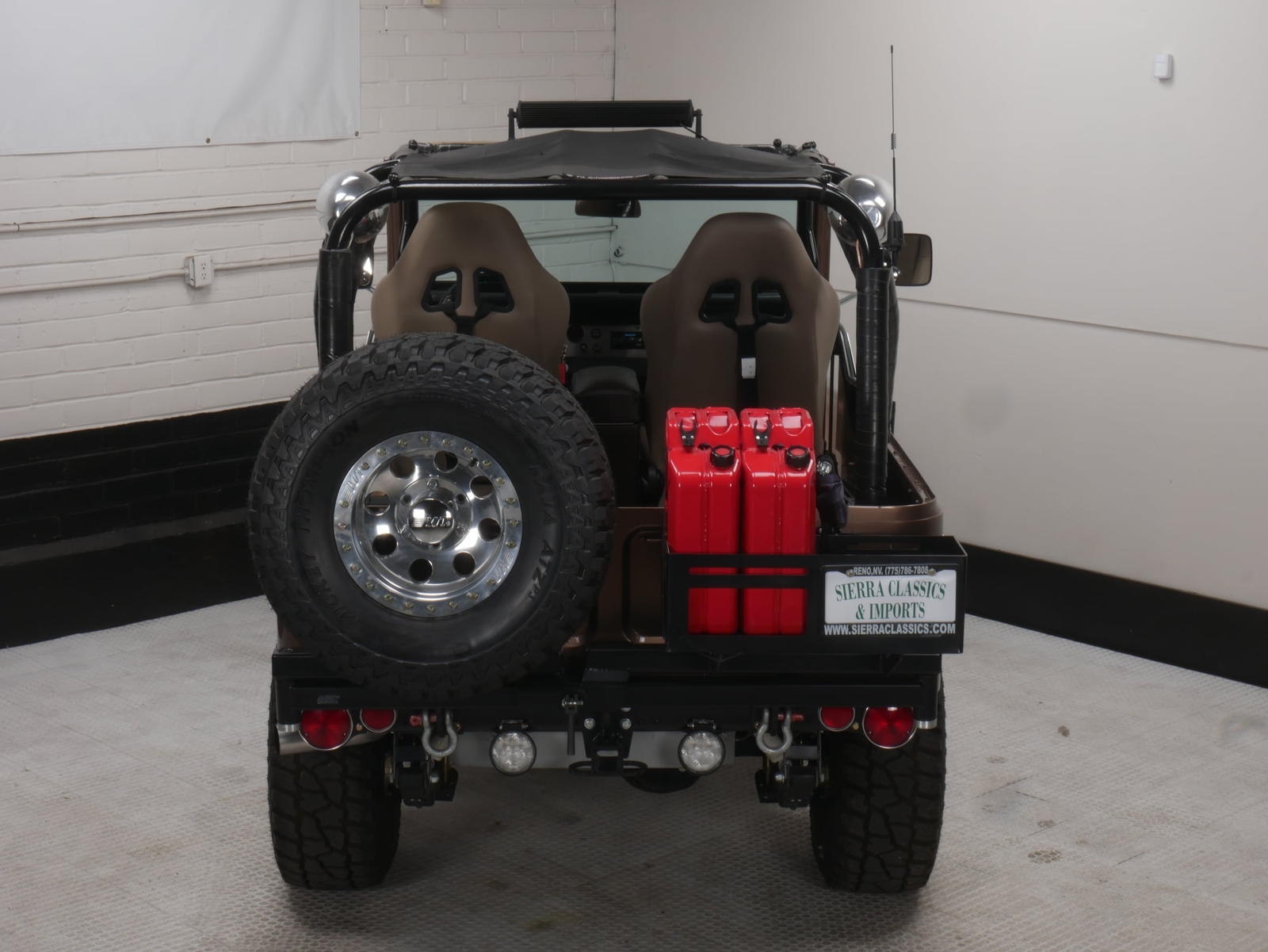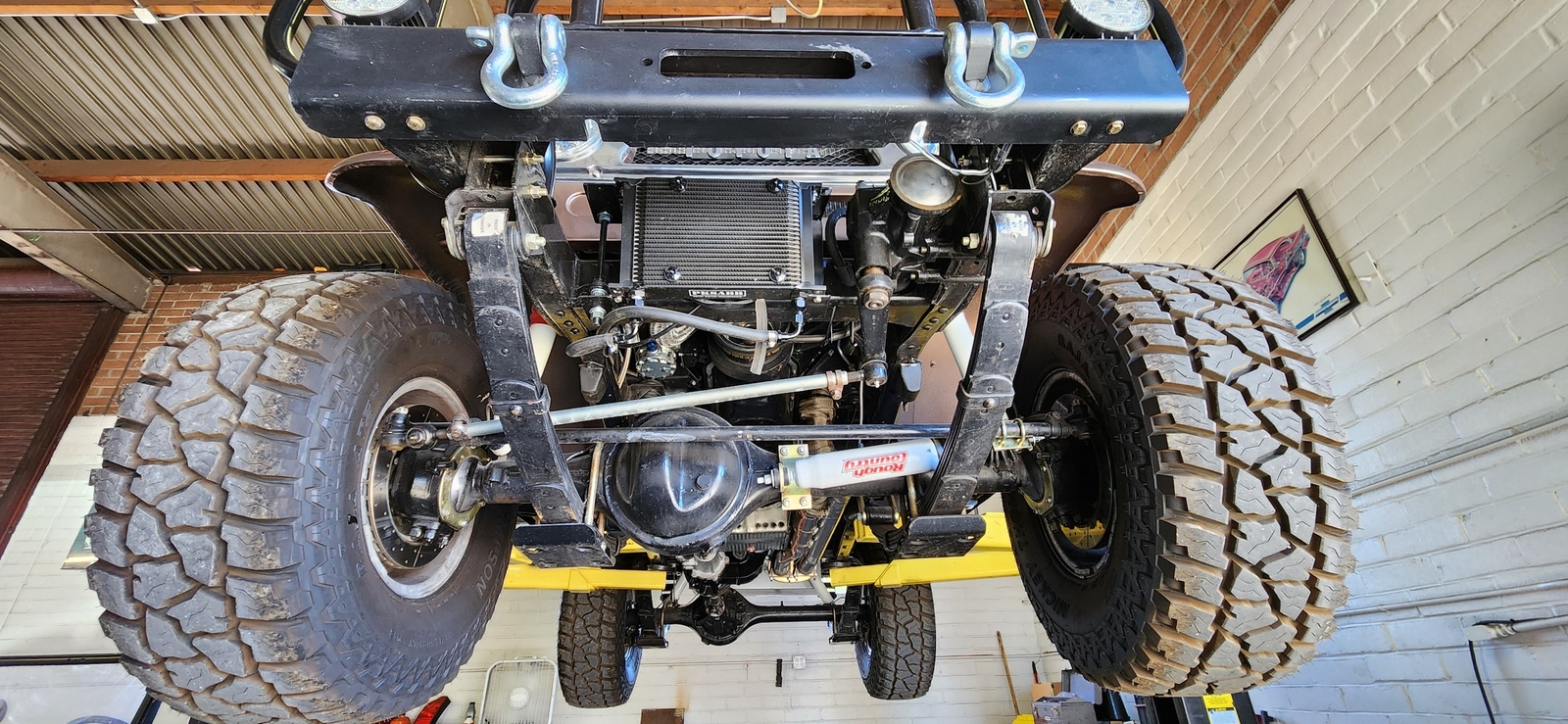 1970 Toyota FJ40 SBC 350 from a 1987 GMC 1 ton Edelbrock Performer Intake Edelbrock Quadra Jet 795cfm carb (#1904) Aluminum 4 core radiator Flex-a-lite 16 3000cfm puller electric fan Nickel Plate dHeaders 700R4 Transmission with cooler and fan New Orion 3 speed transfer case w Granny low (installed 40 miles ago, 2023) Saginaw Power Steering Shackle Reversal 2.5 Lift Wilwood Disc Brakes front and rear Auburn Gear Limited Slip rear end (installed 40 miles ago, 2023) New rear axle bearings and seals (installed 40 miles ago, 2023) Mickey Thompson 15 Aluminum Wheels Mickey Thompson 33 Baja ATZ tires Rancho 9000 shocks I-did-it tilt steering column Cyberdyne digital dash instruments Sony Marine stereo and bullet speakers LED front and rear driving/fog/offroad lights Bucket Seats 4 way offroad seatbelts/harnesses Air Horn Metal Tech Custom family roll cage mounted to the frame Bikini Top Custom Tube/Aluminum Diamond Plate half doors Custom Center Console Man-a-fre rear tire carrier/cooler/jerrycans/bumper, hitch 445 miles on engine and transmission All receipts for restoration since 1996 totaling over $45k